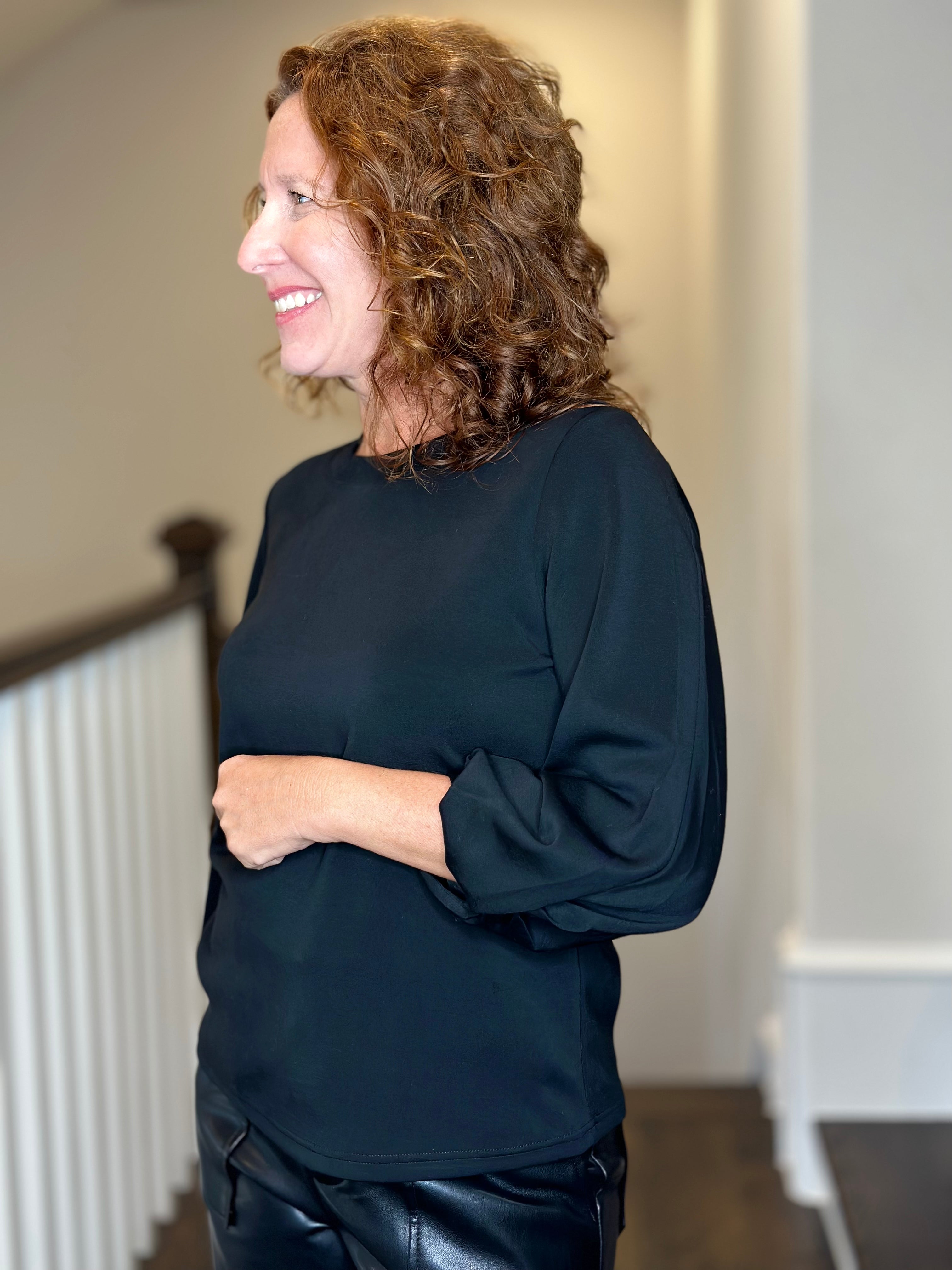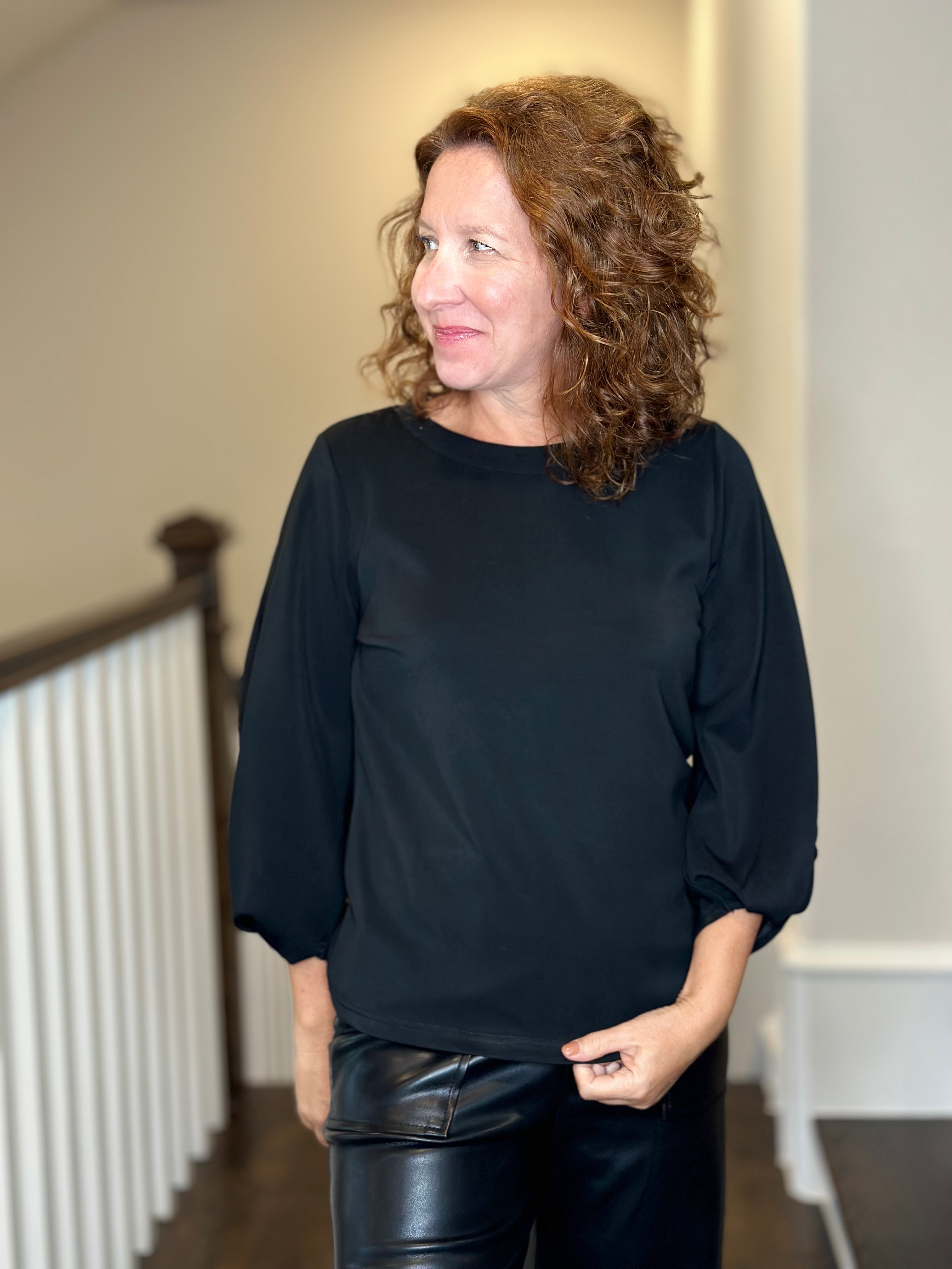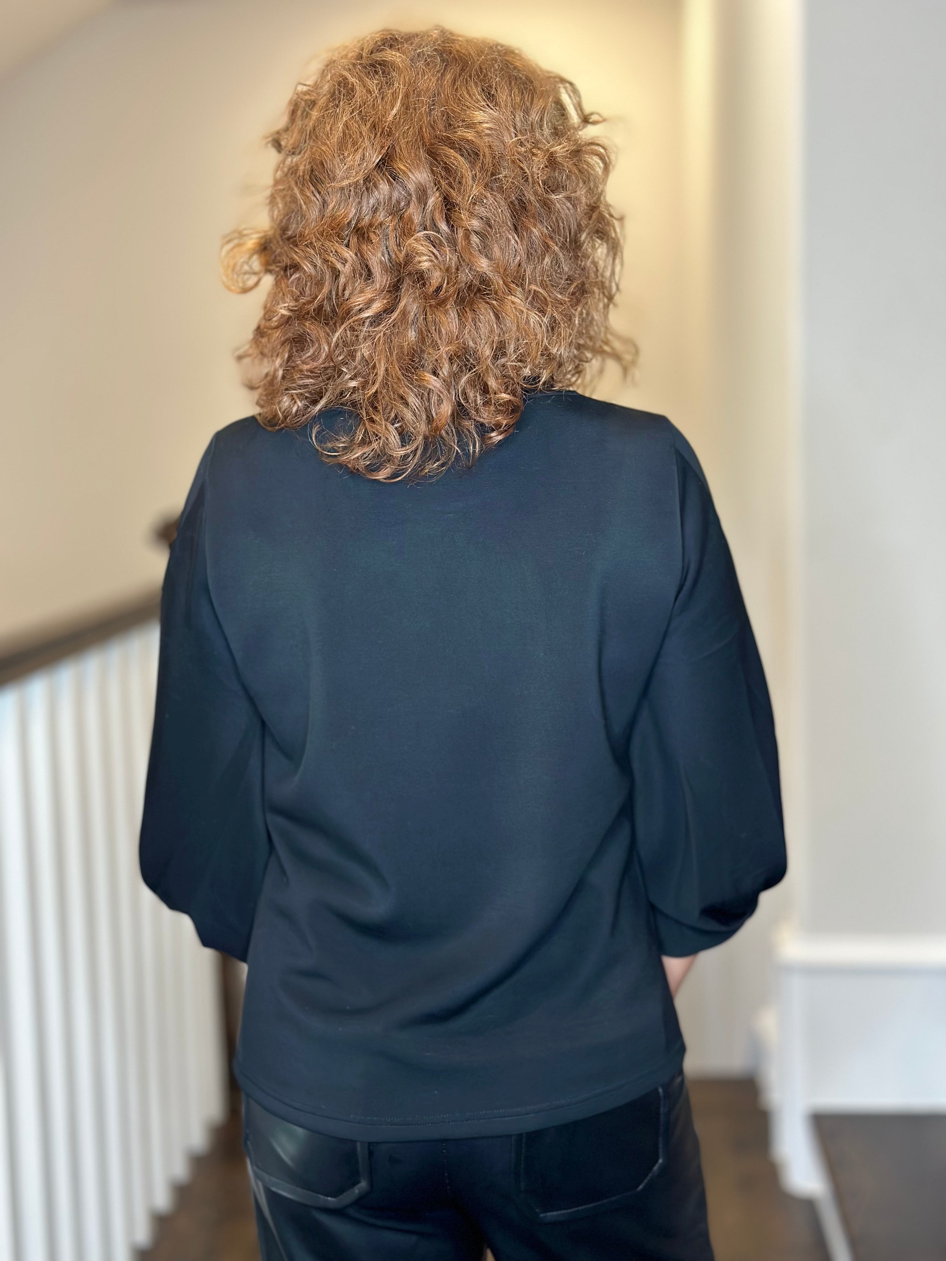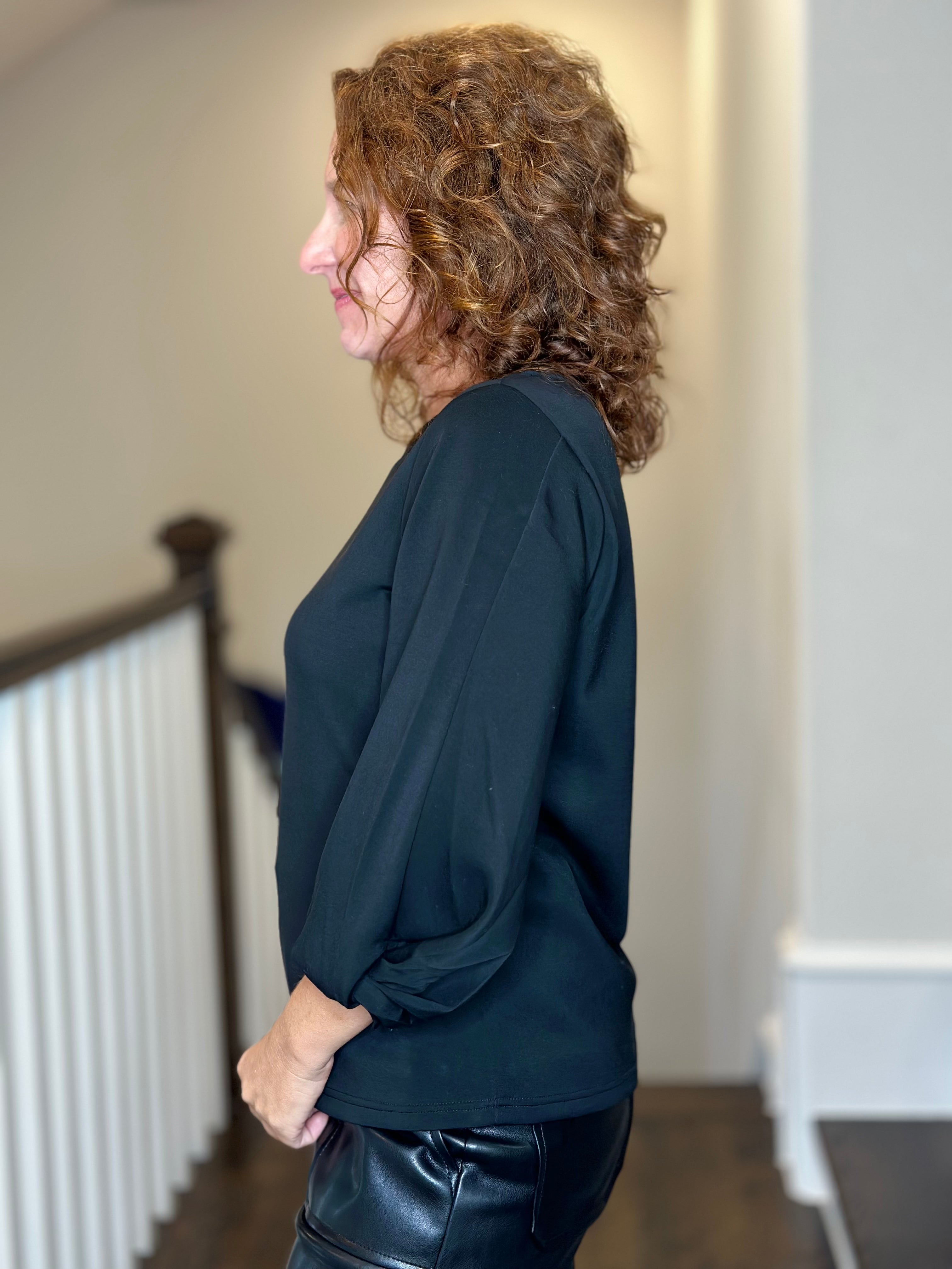 Esqualo Twist Sleeve Top in Black