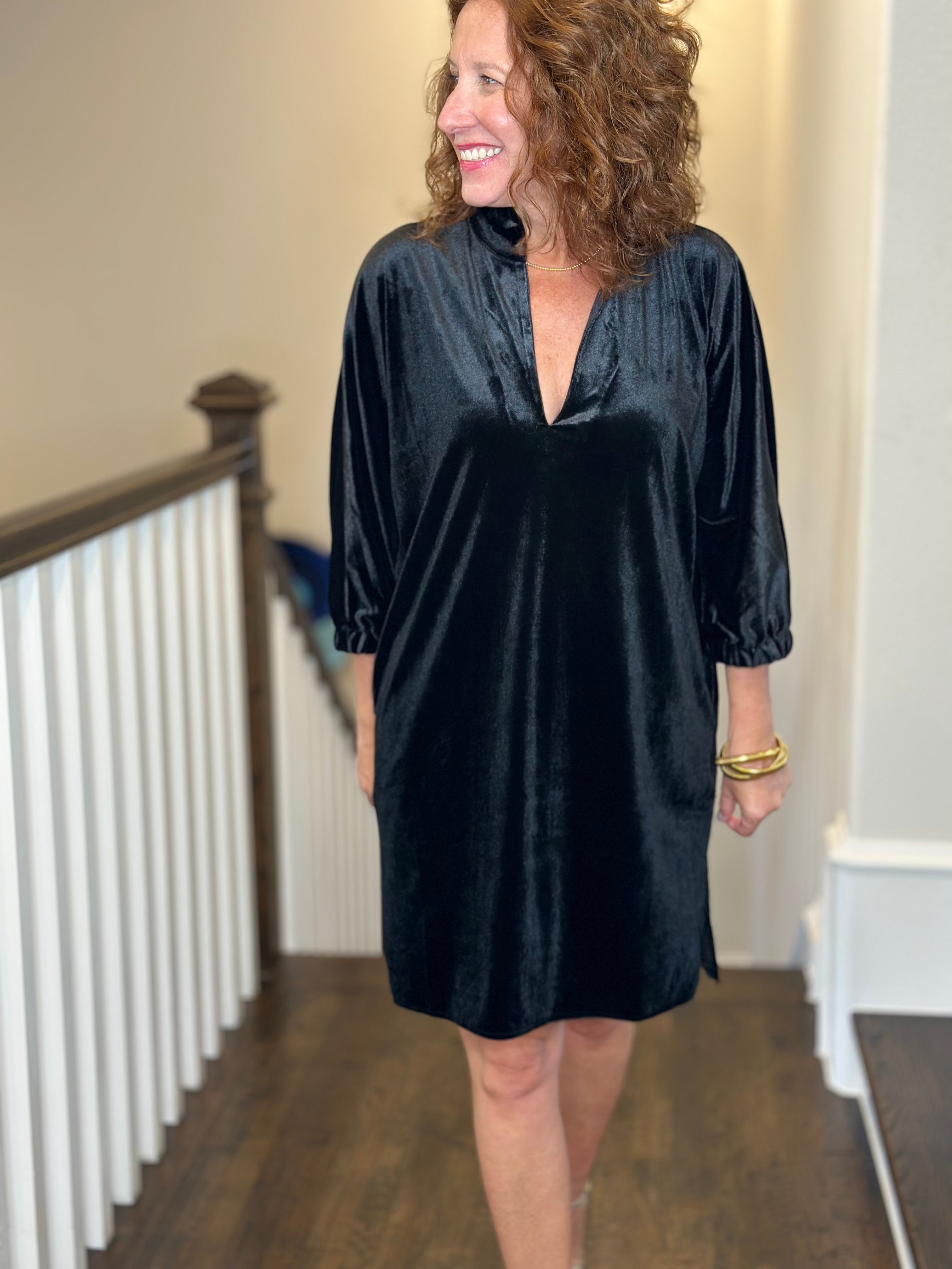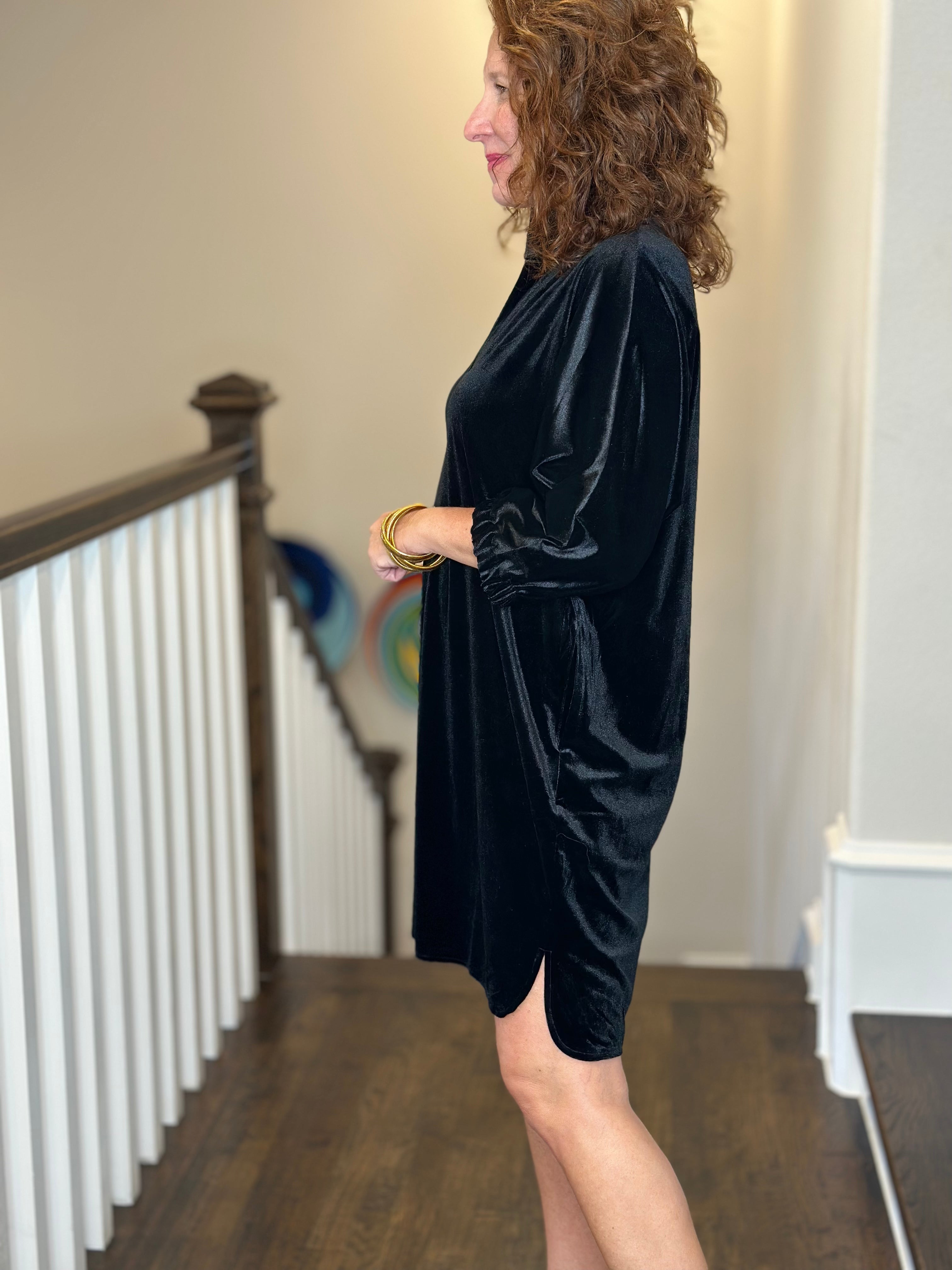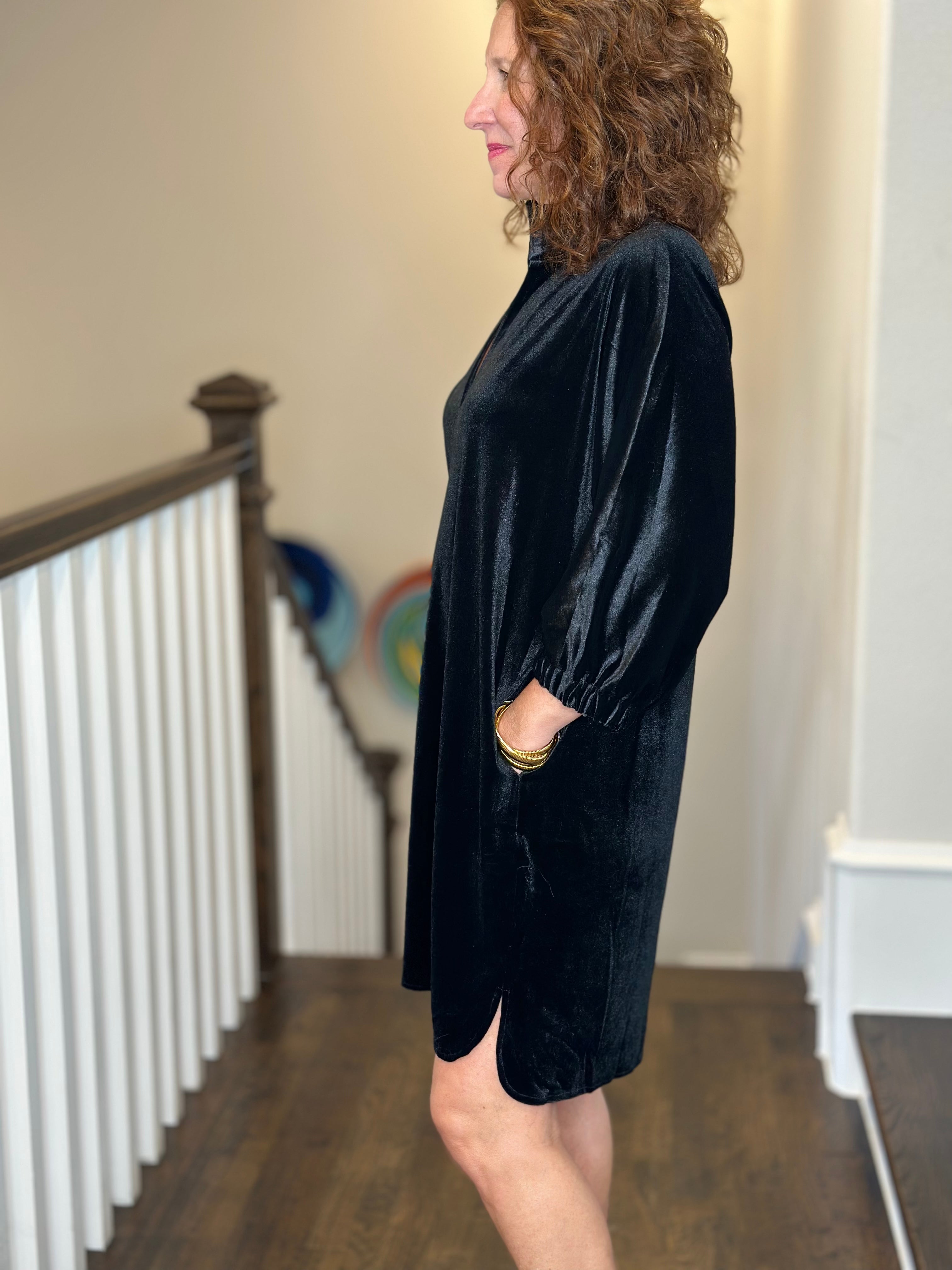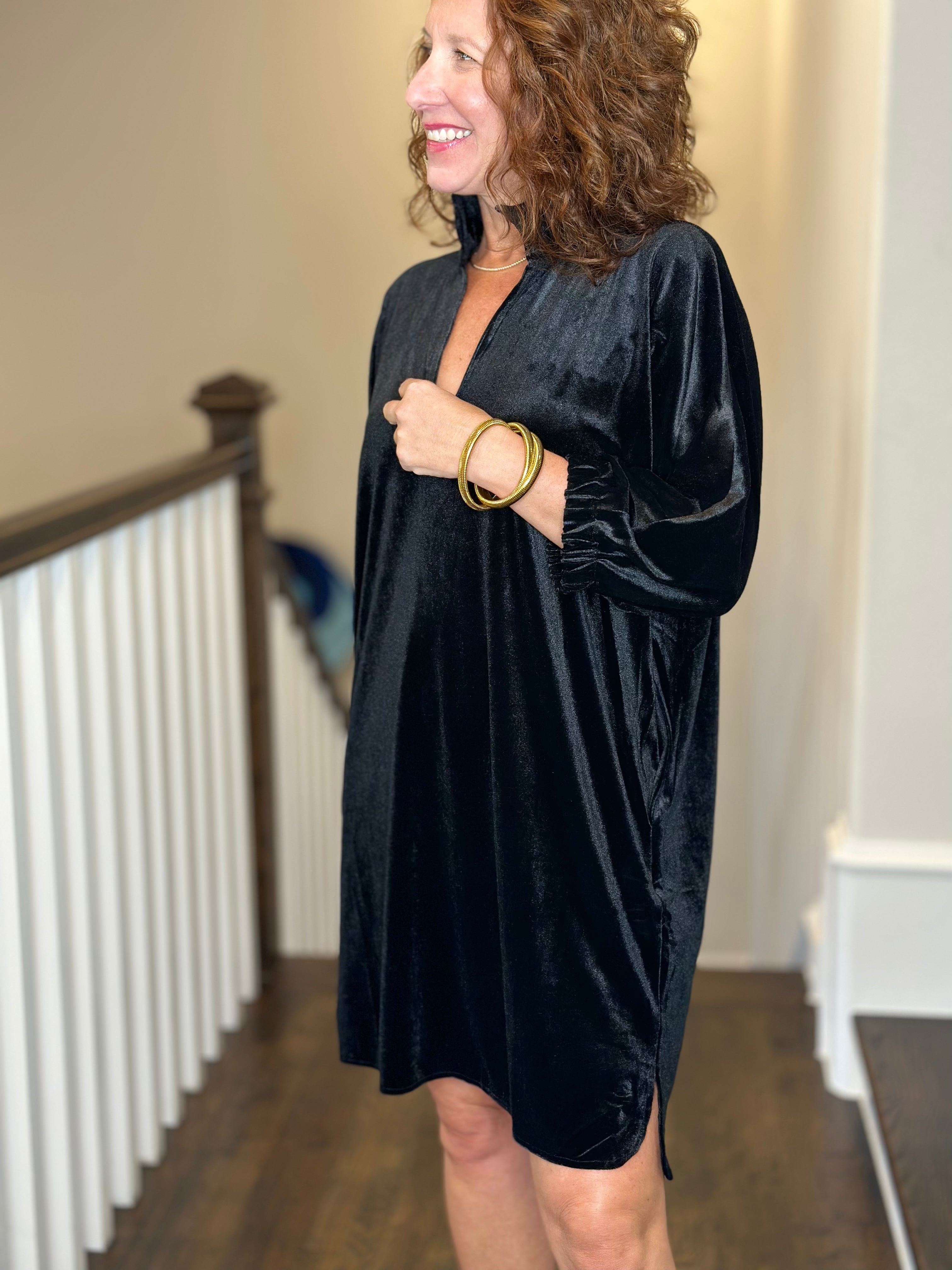 Caryn Lawn Betsy Collar Velvet Dress in Black