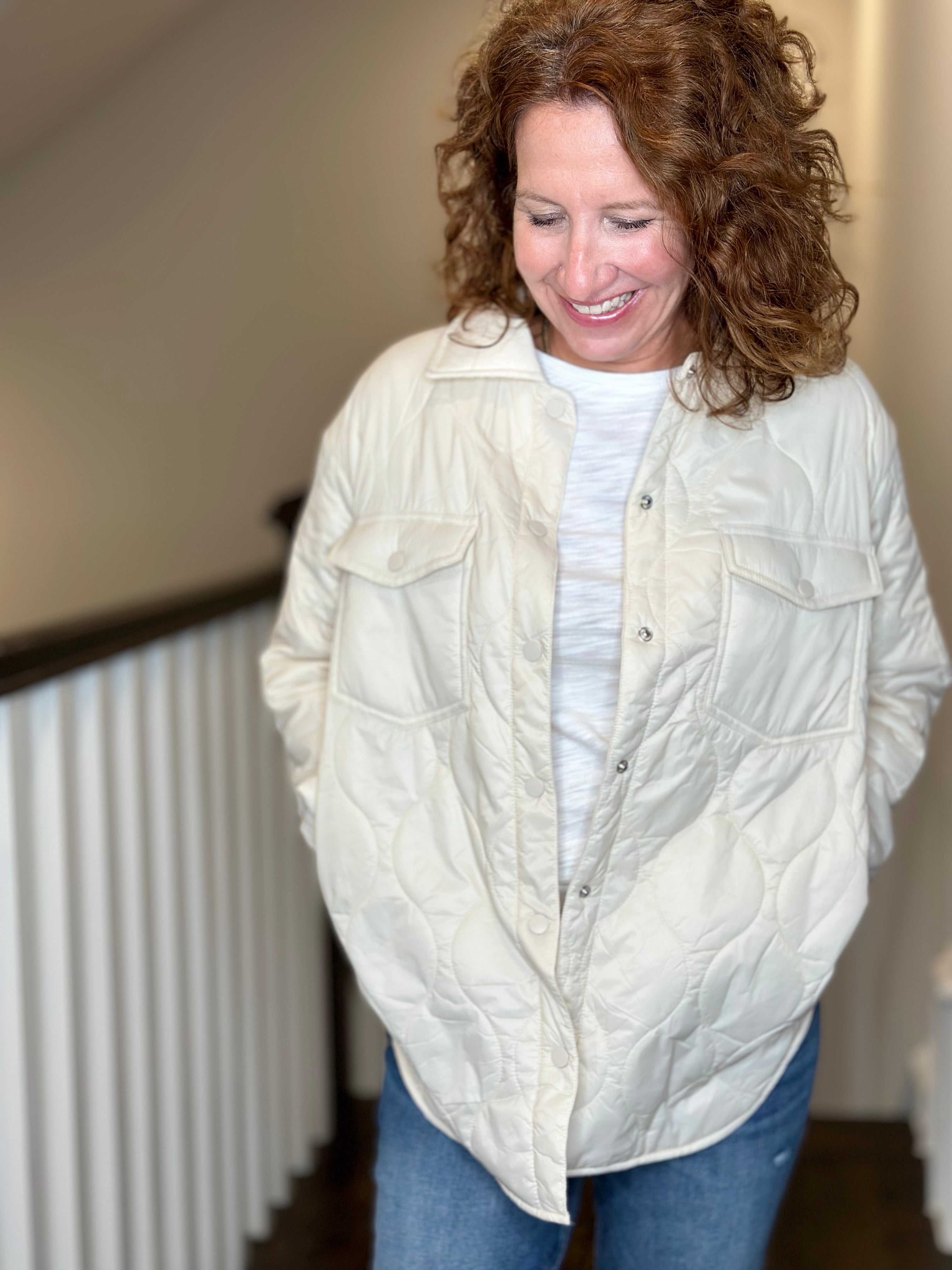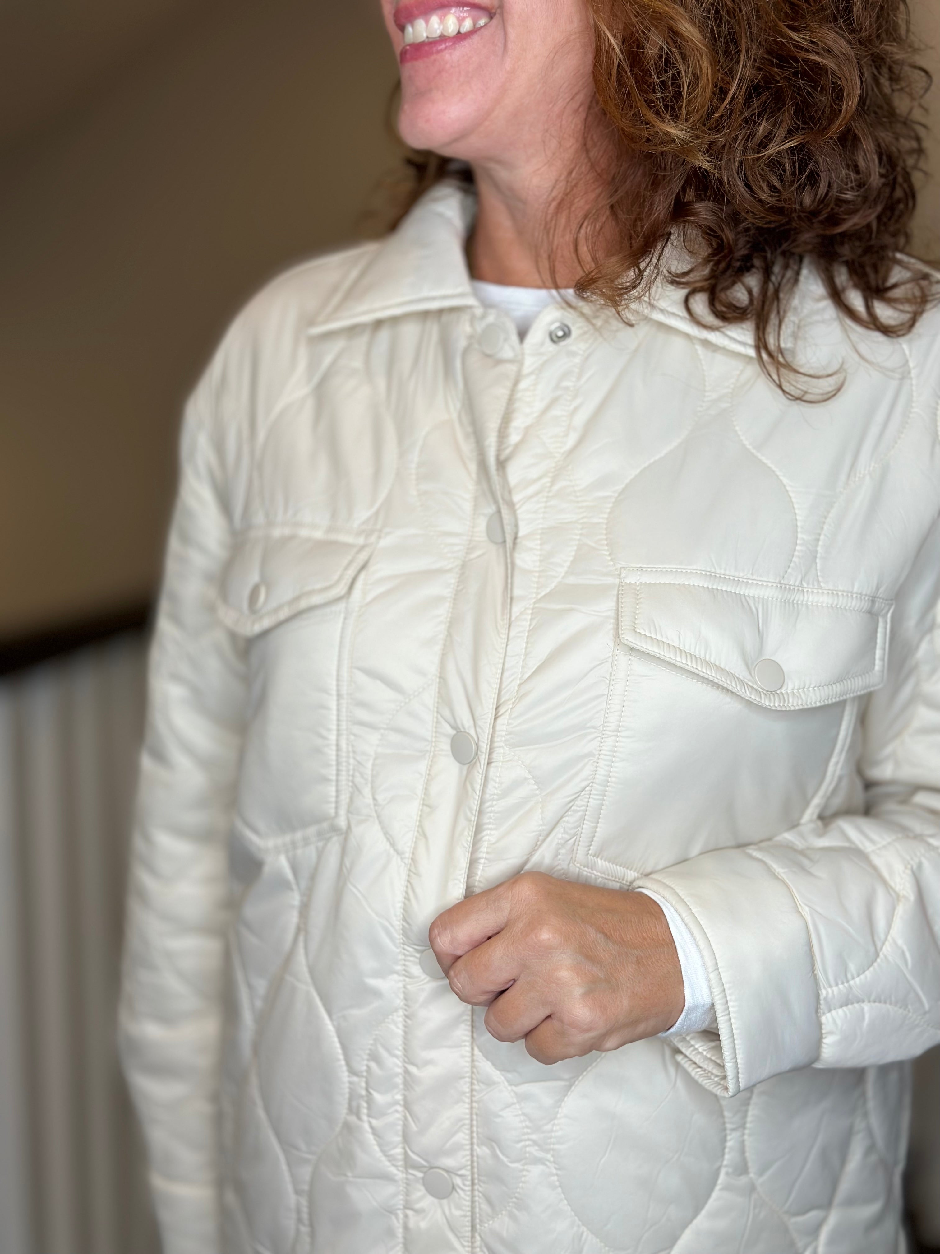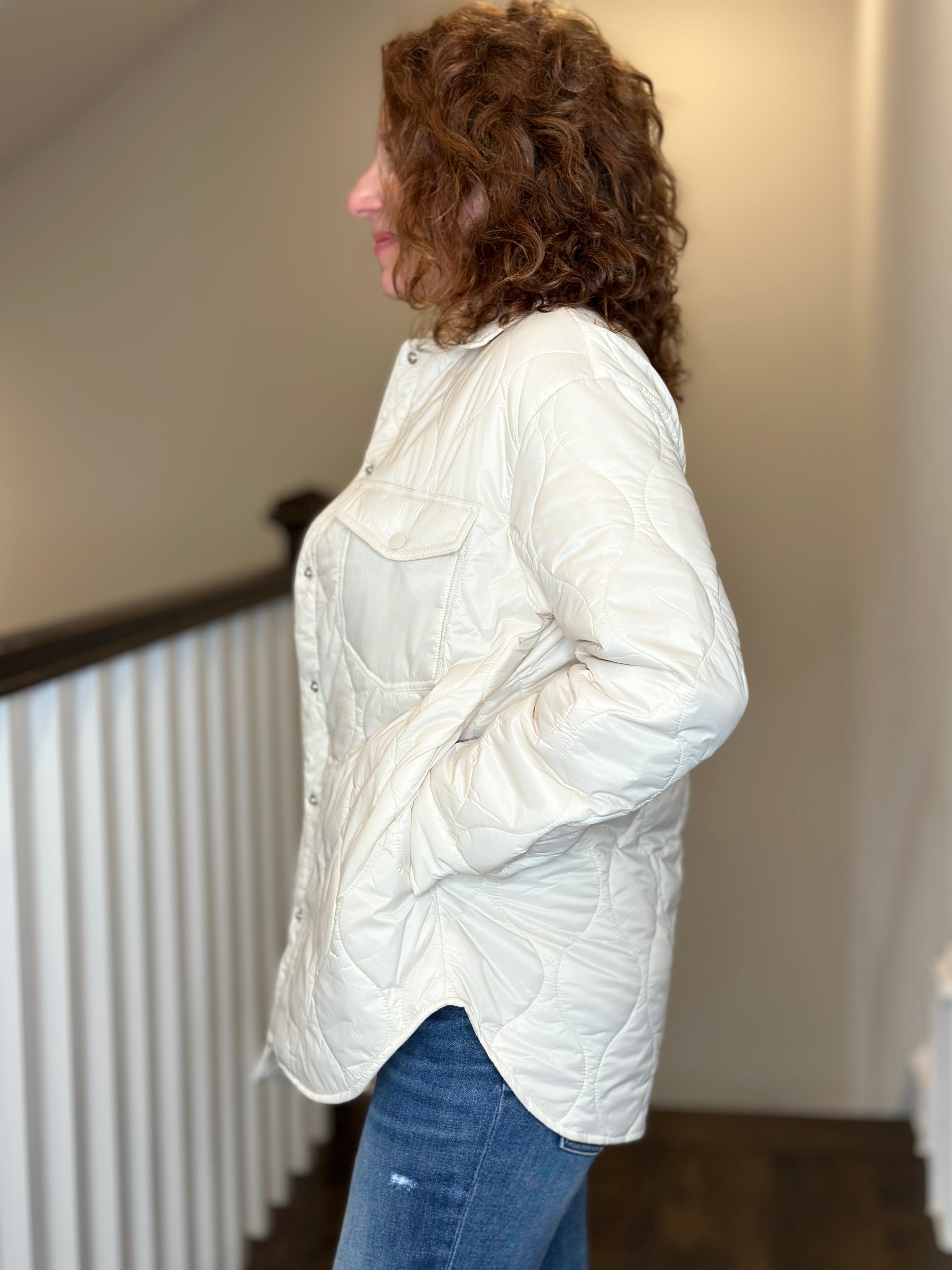 Esqualo Quilted Shirt Jacket in Off White