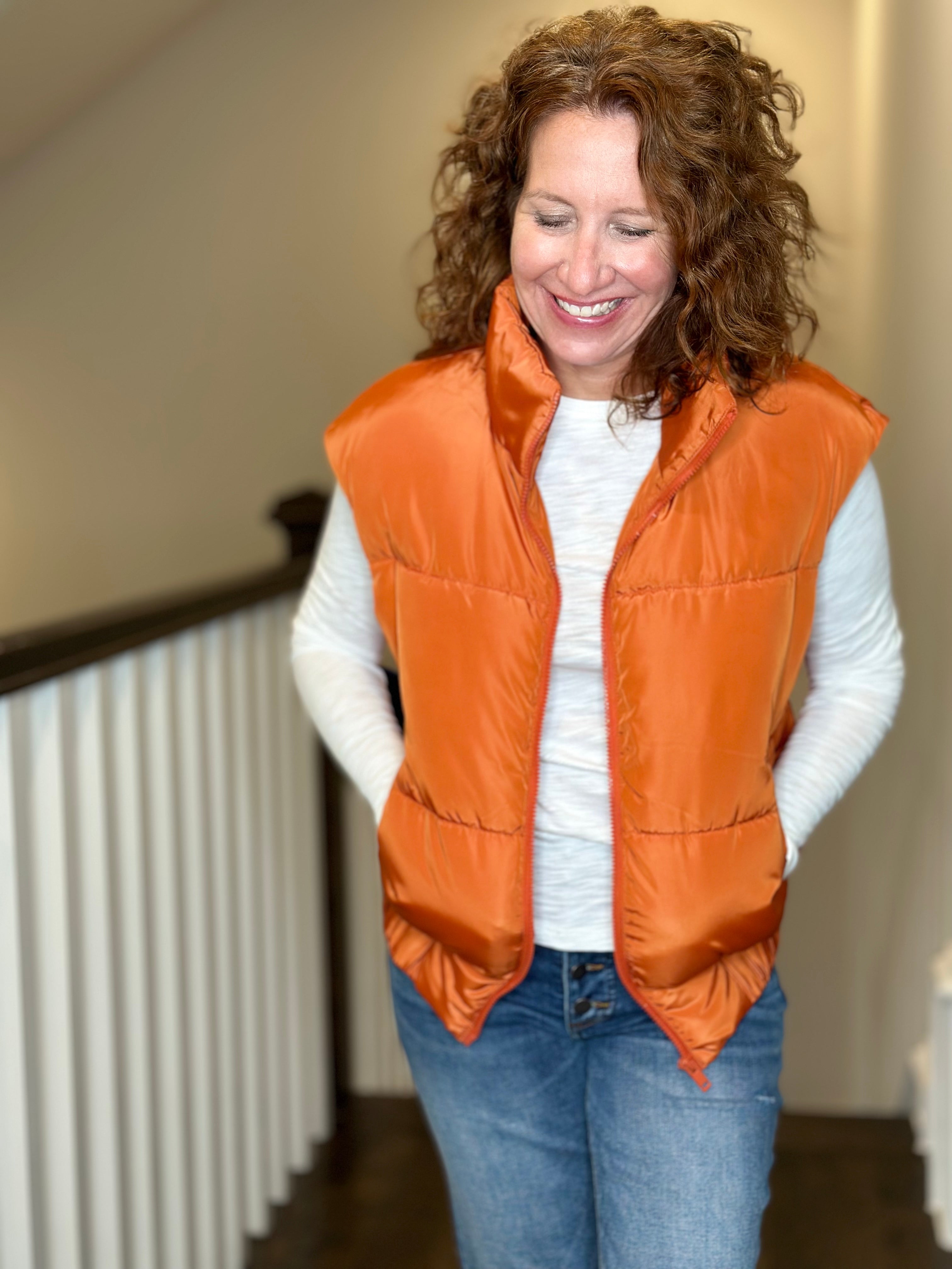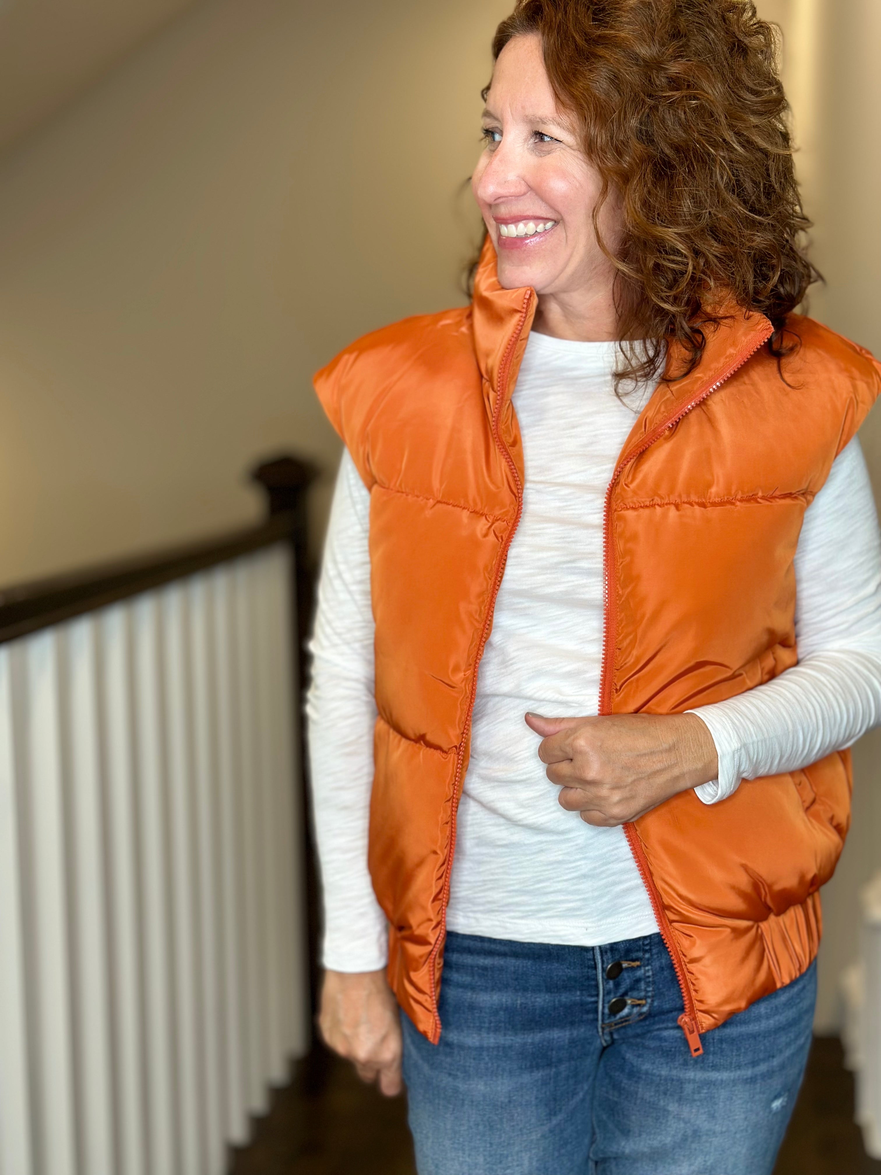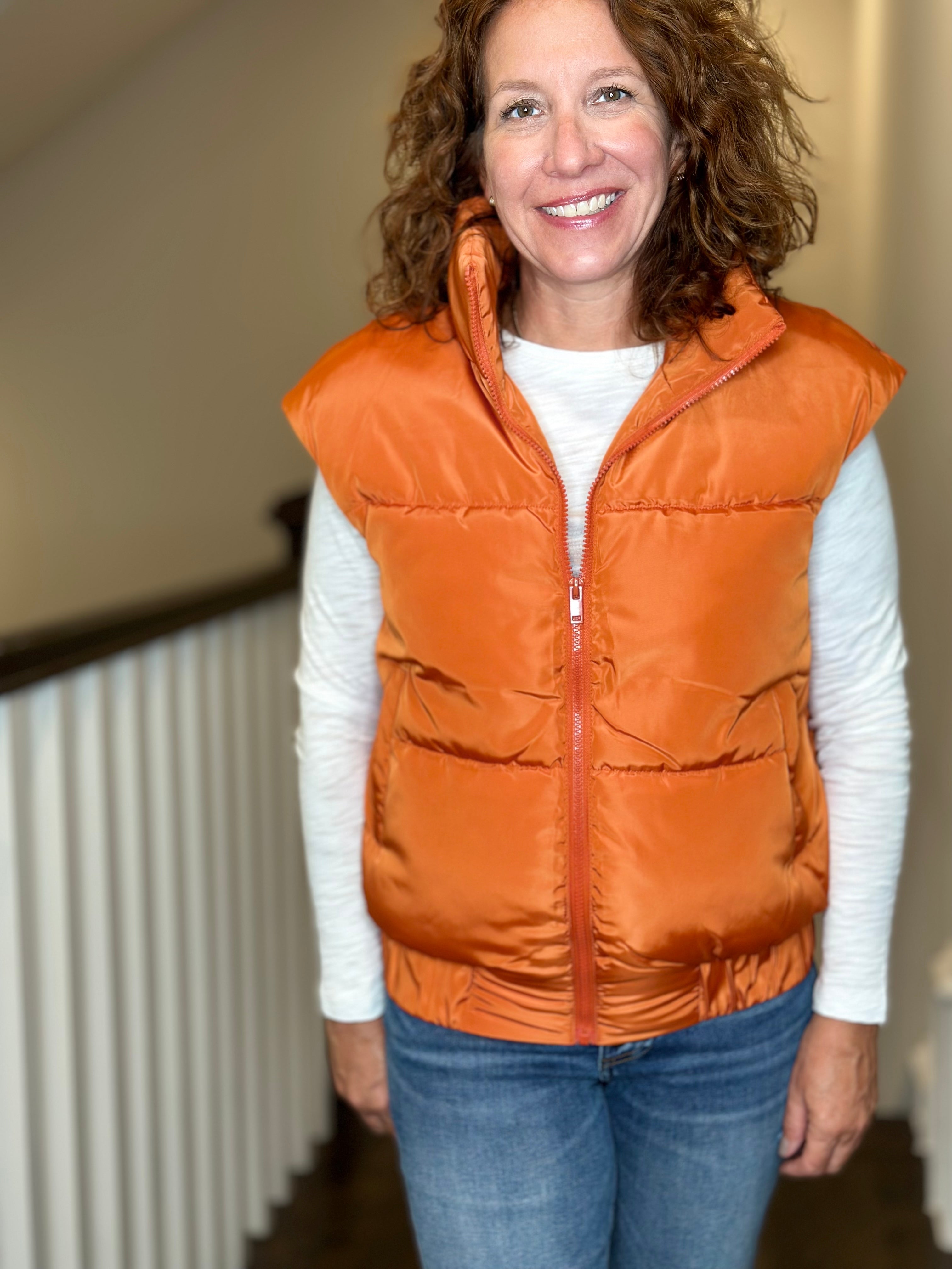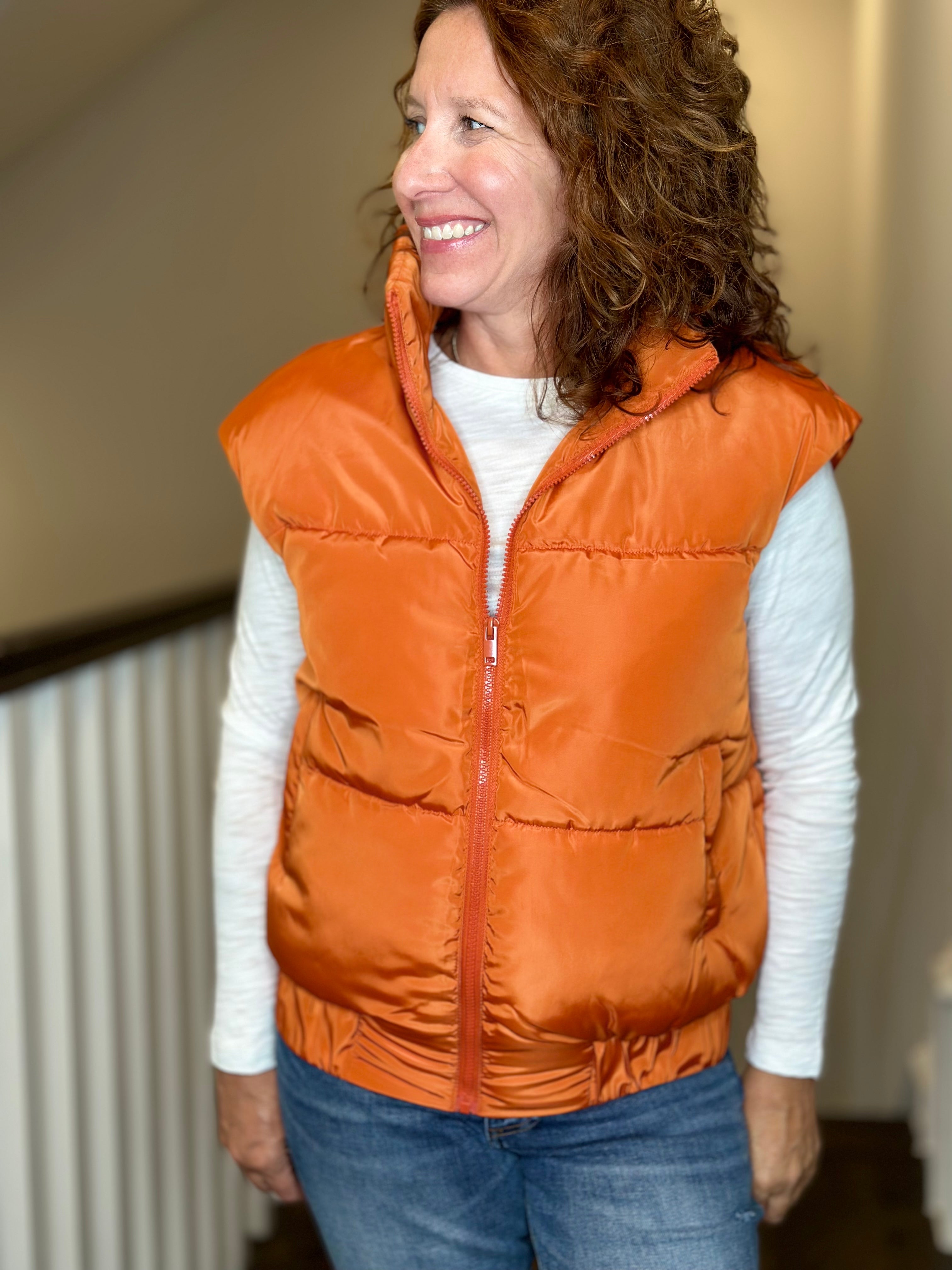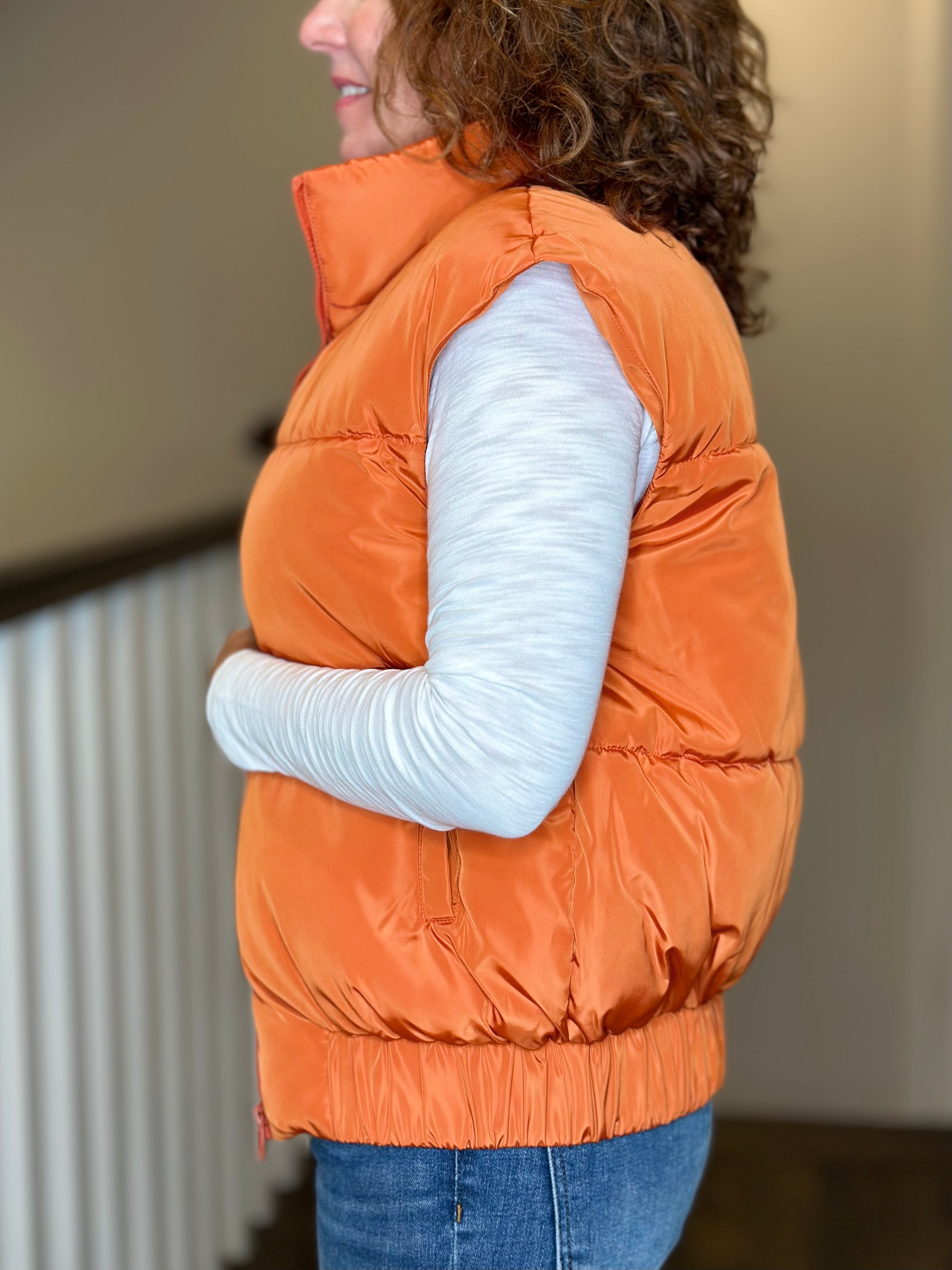 Love Token Vika Puffer Vest in Brick
