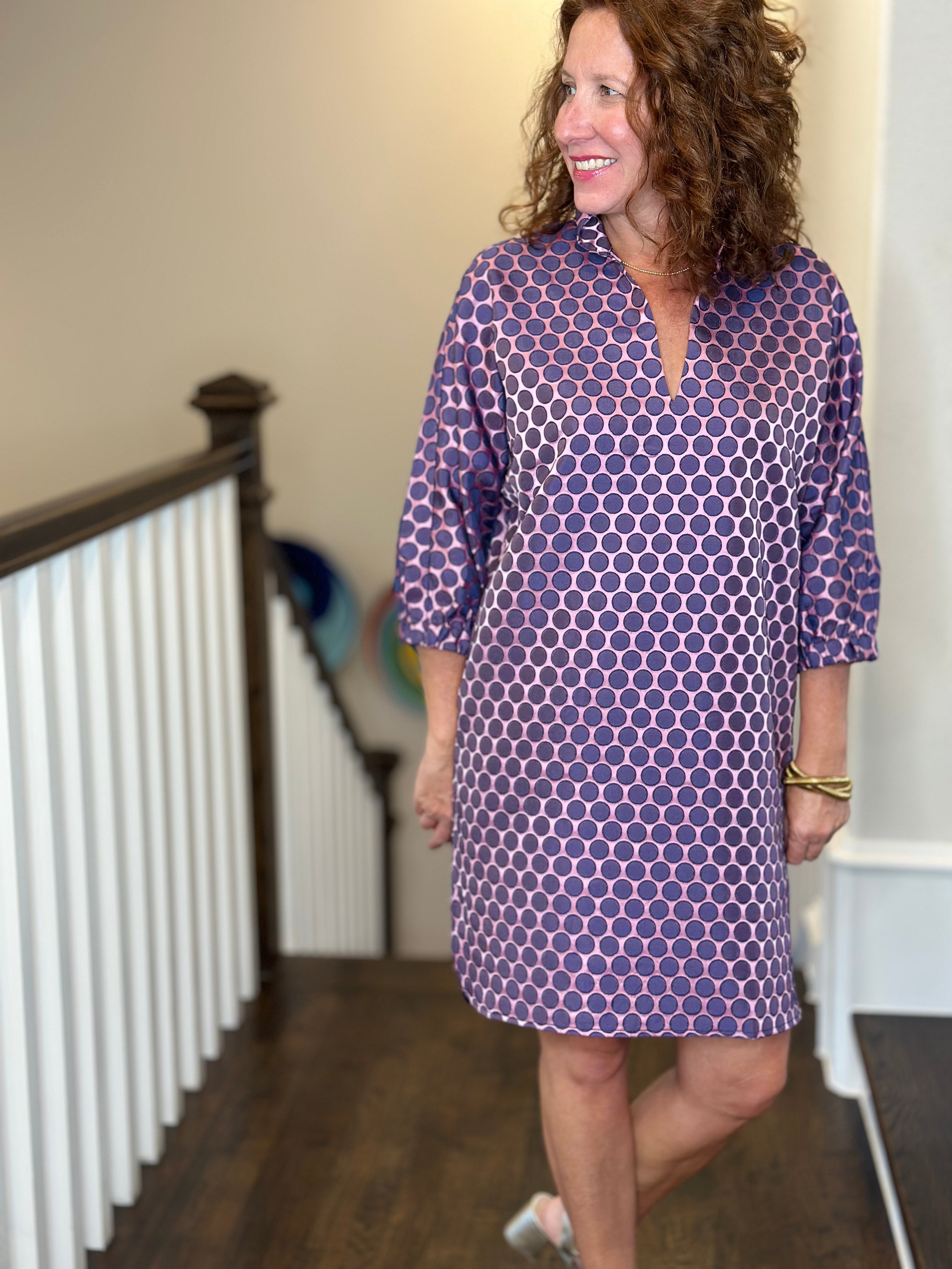 Caryn Lawn Betsy Collar Polkadot Dress in Navy