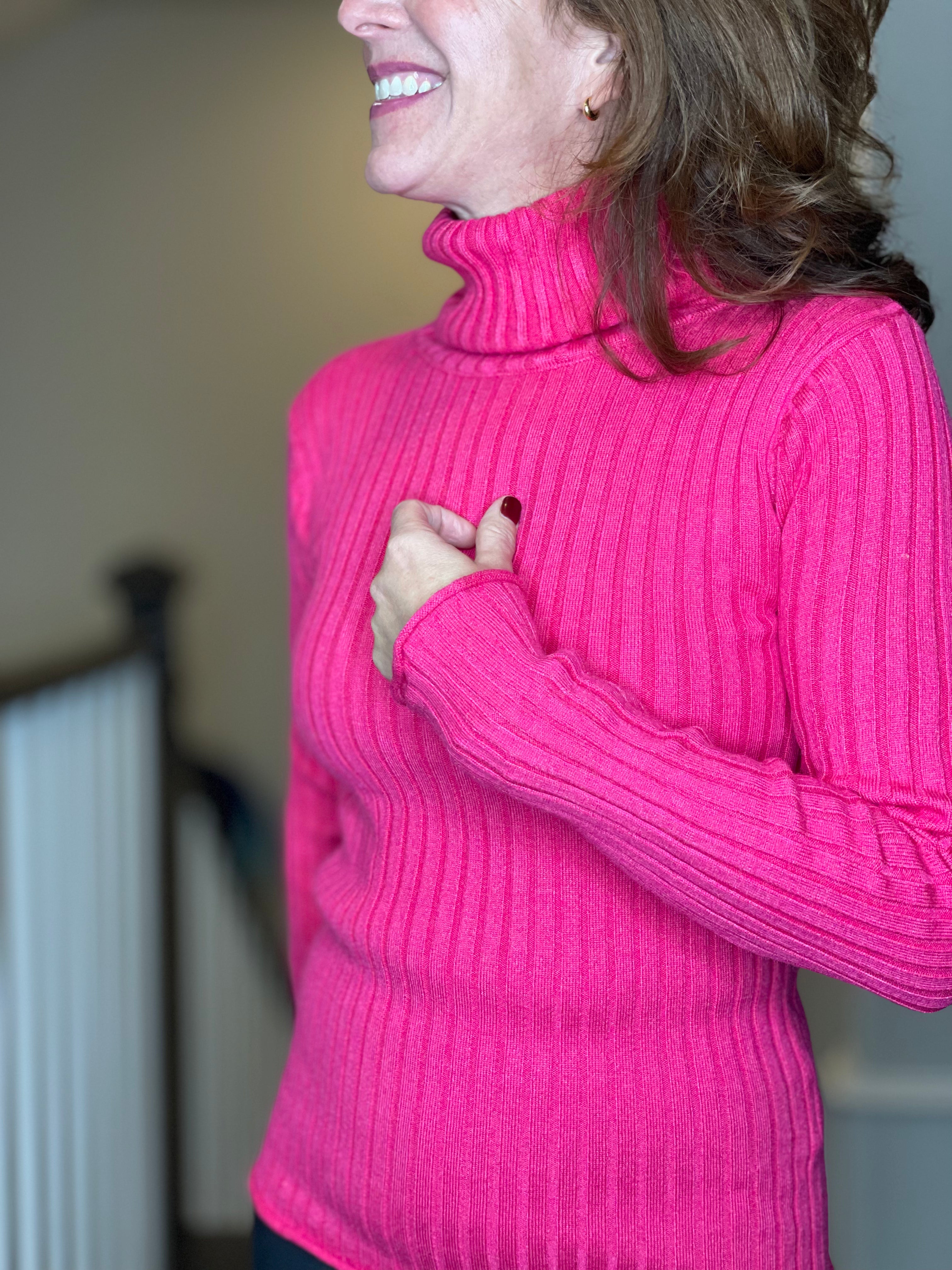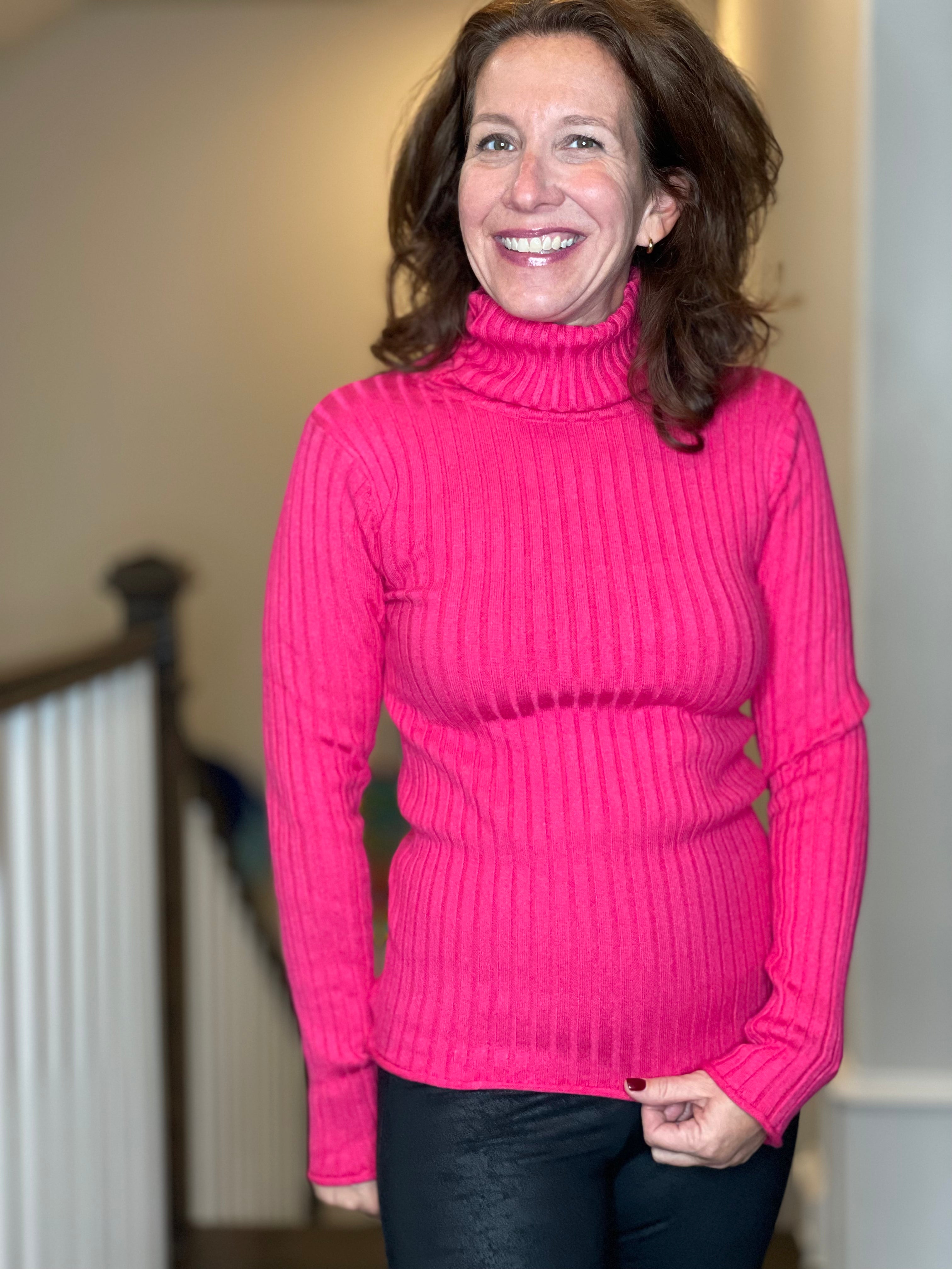 Molly Bracken Turtleneck Sweater in Hot Pink