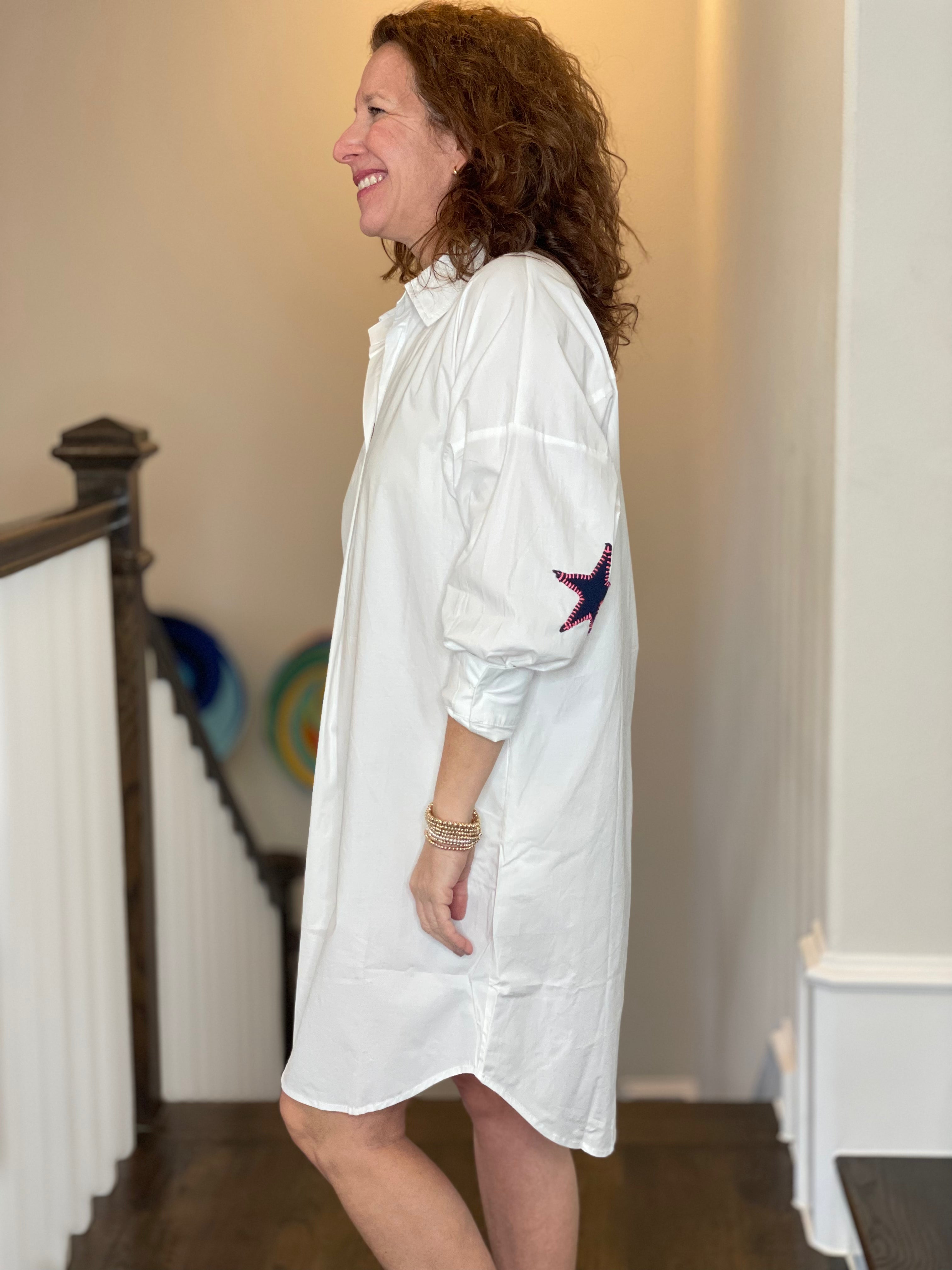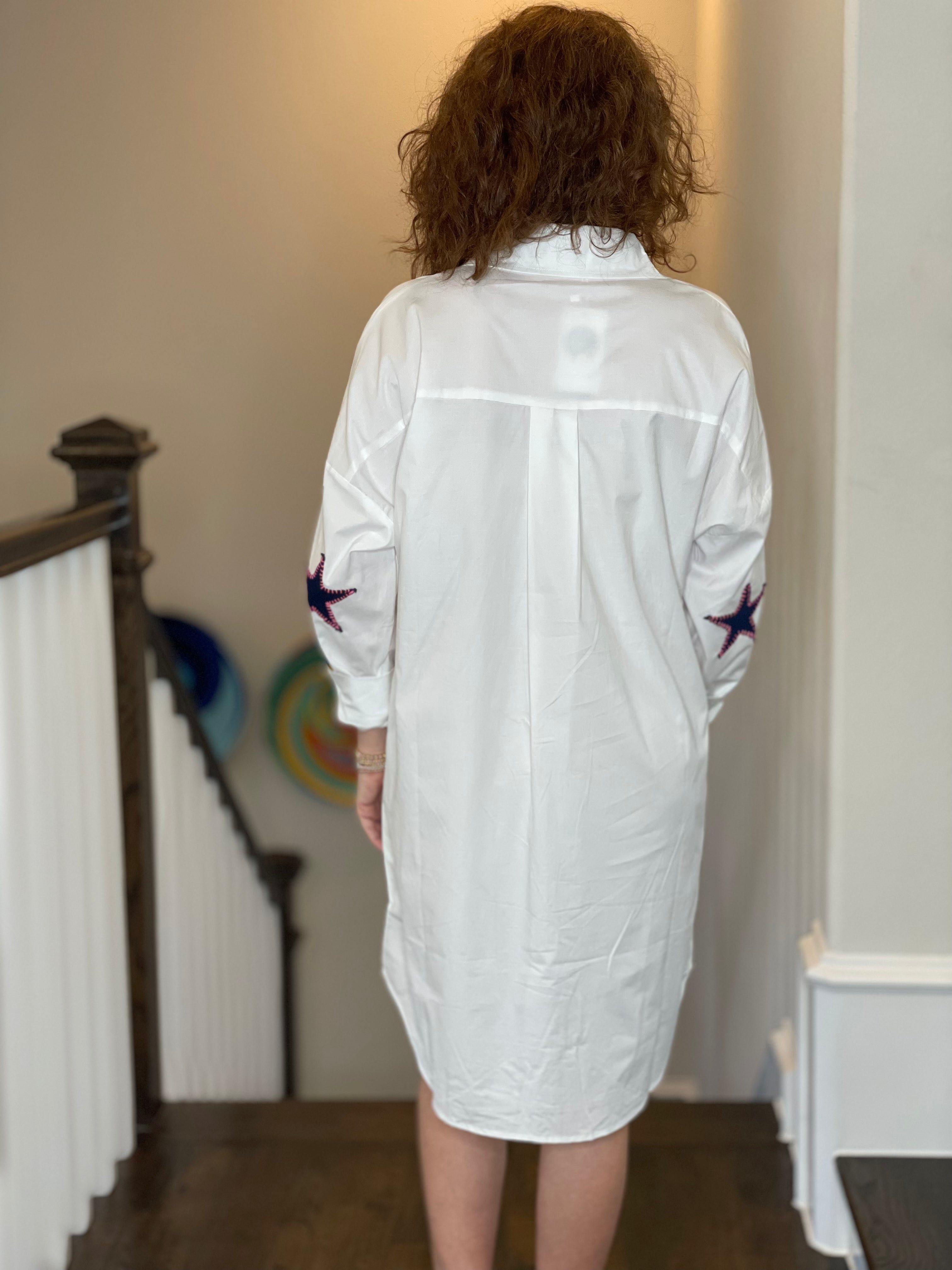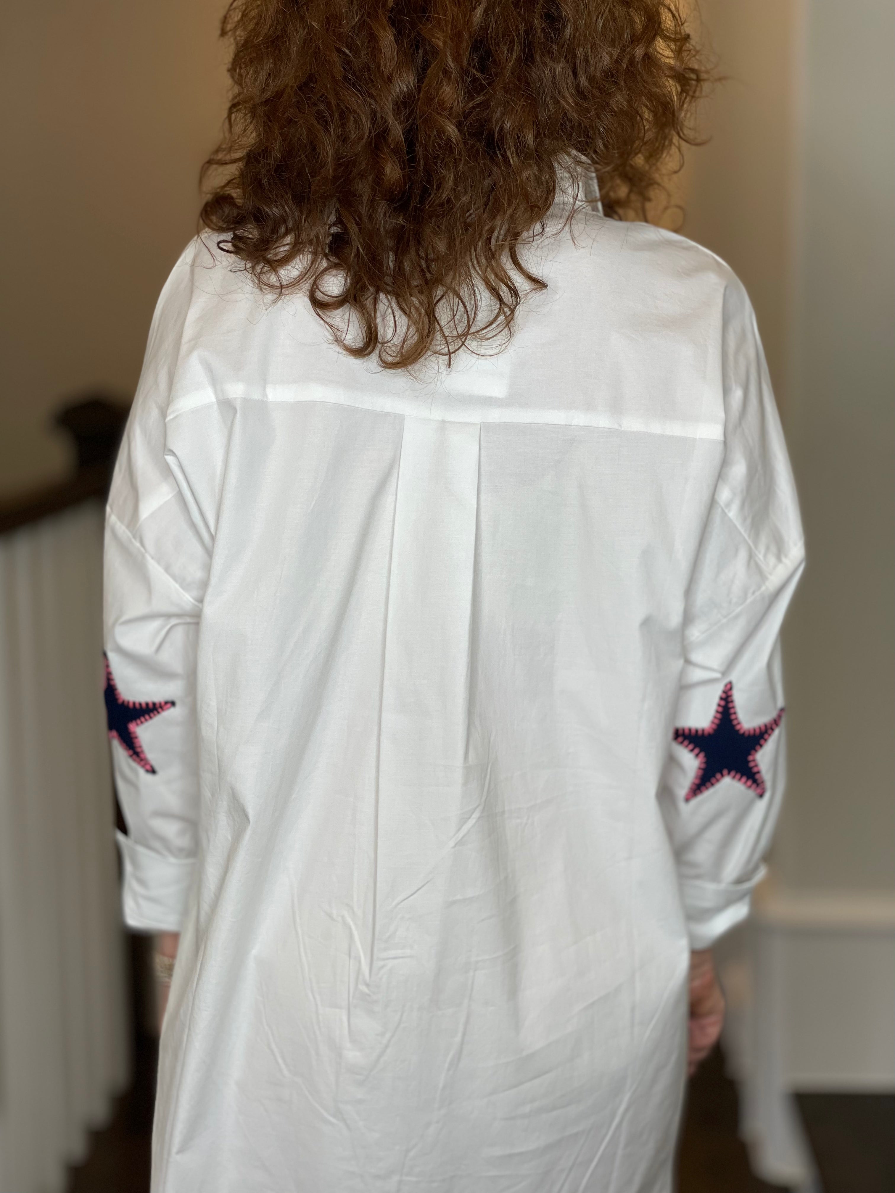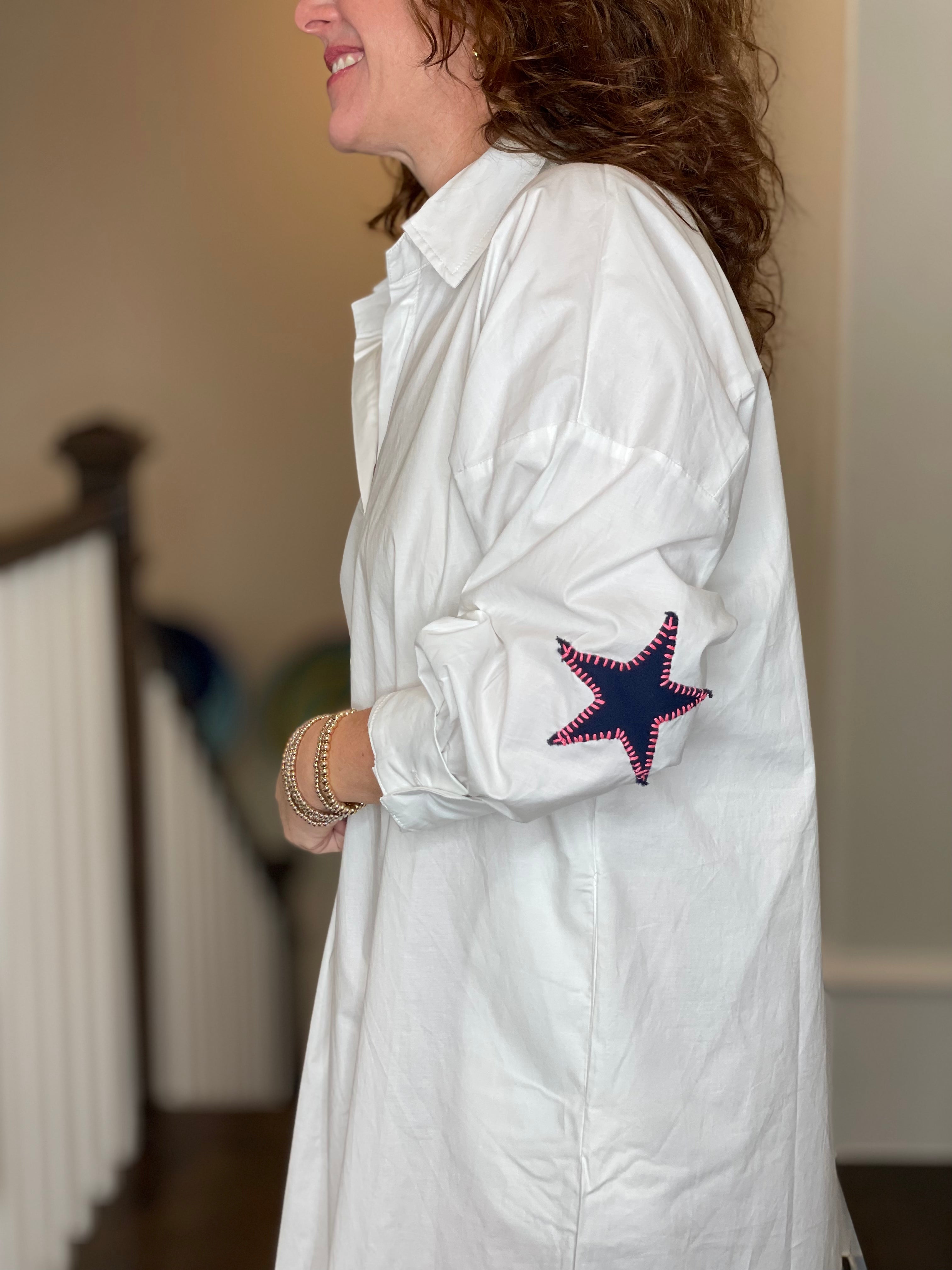 Distressed Denim Shacket with Evil Eye Heart Embellishment