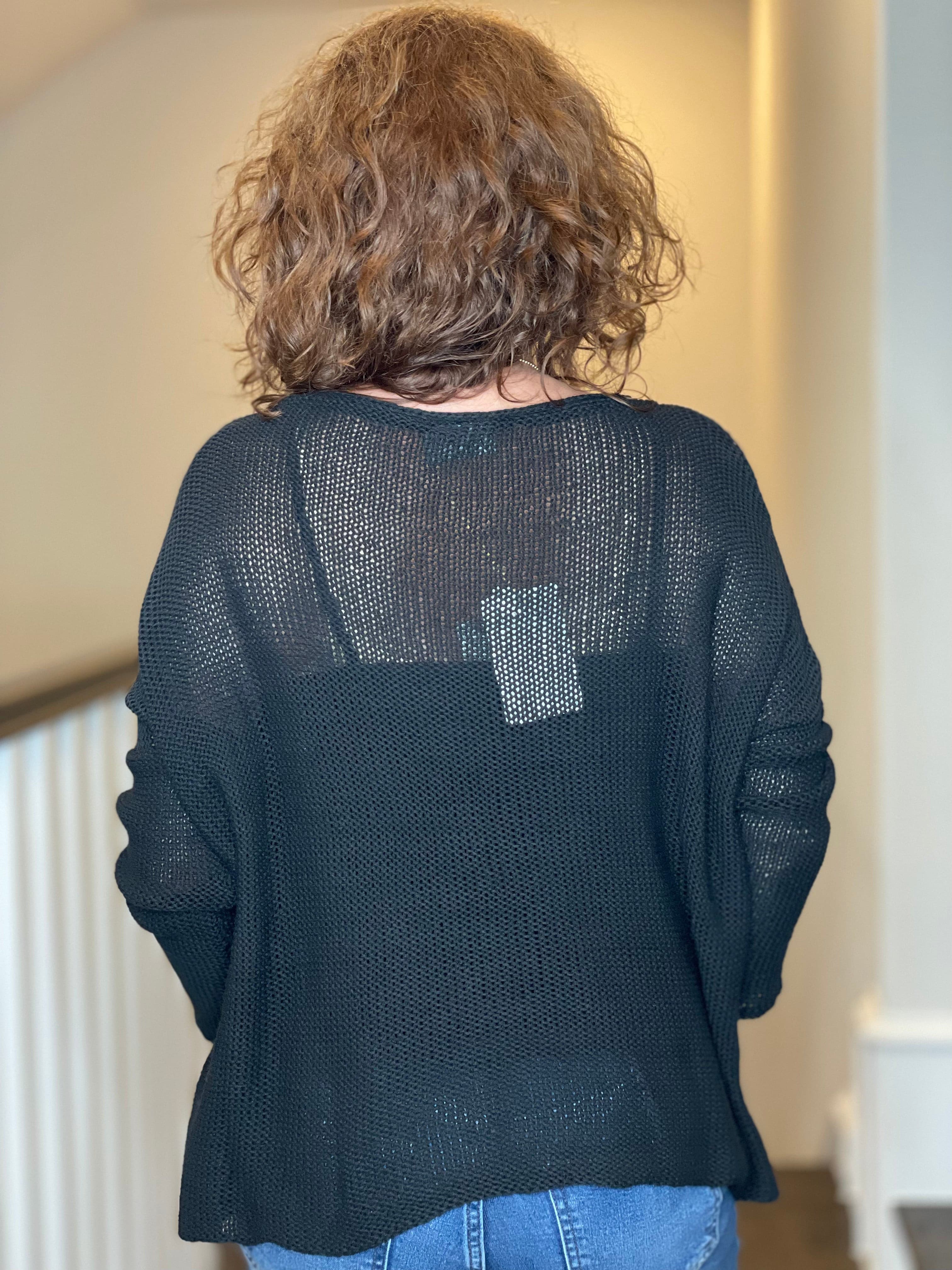 Molly Bracken Pointelle Crew Neck Vest in Black