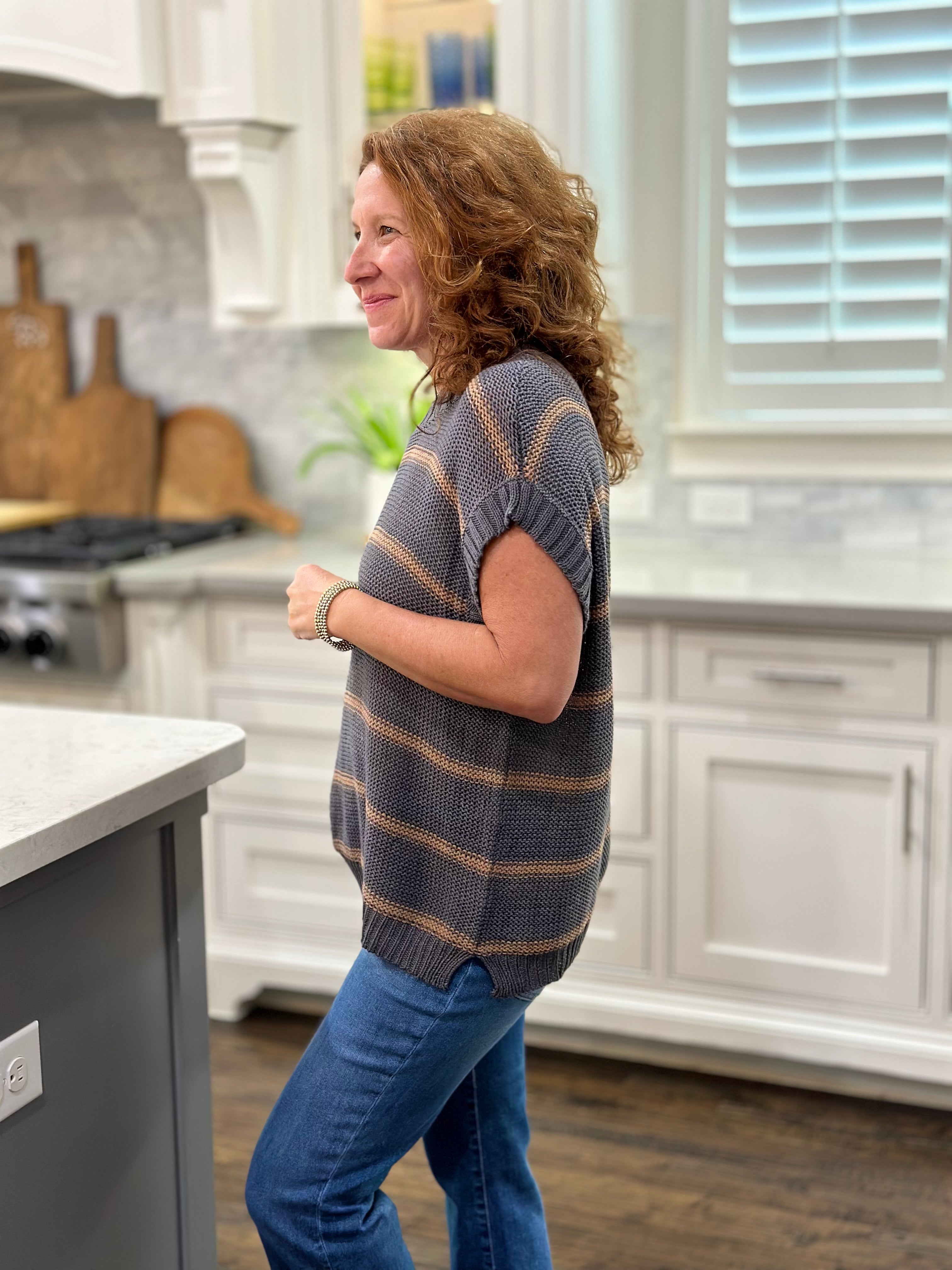 Oh-so-soft and super comfy, this sweater vest features a flattering, relaxed fit. Details include crew neck, sleeveless body and slit bottom hem. Super versatile, this top pairs beautifully over all bottoms. Wear alone in warmer weather and layer with a long sleeve for cooler temps.