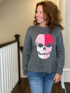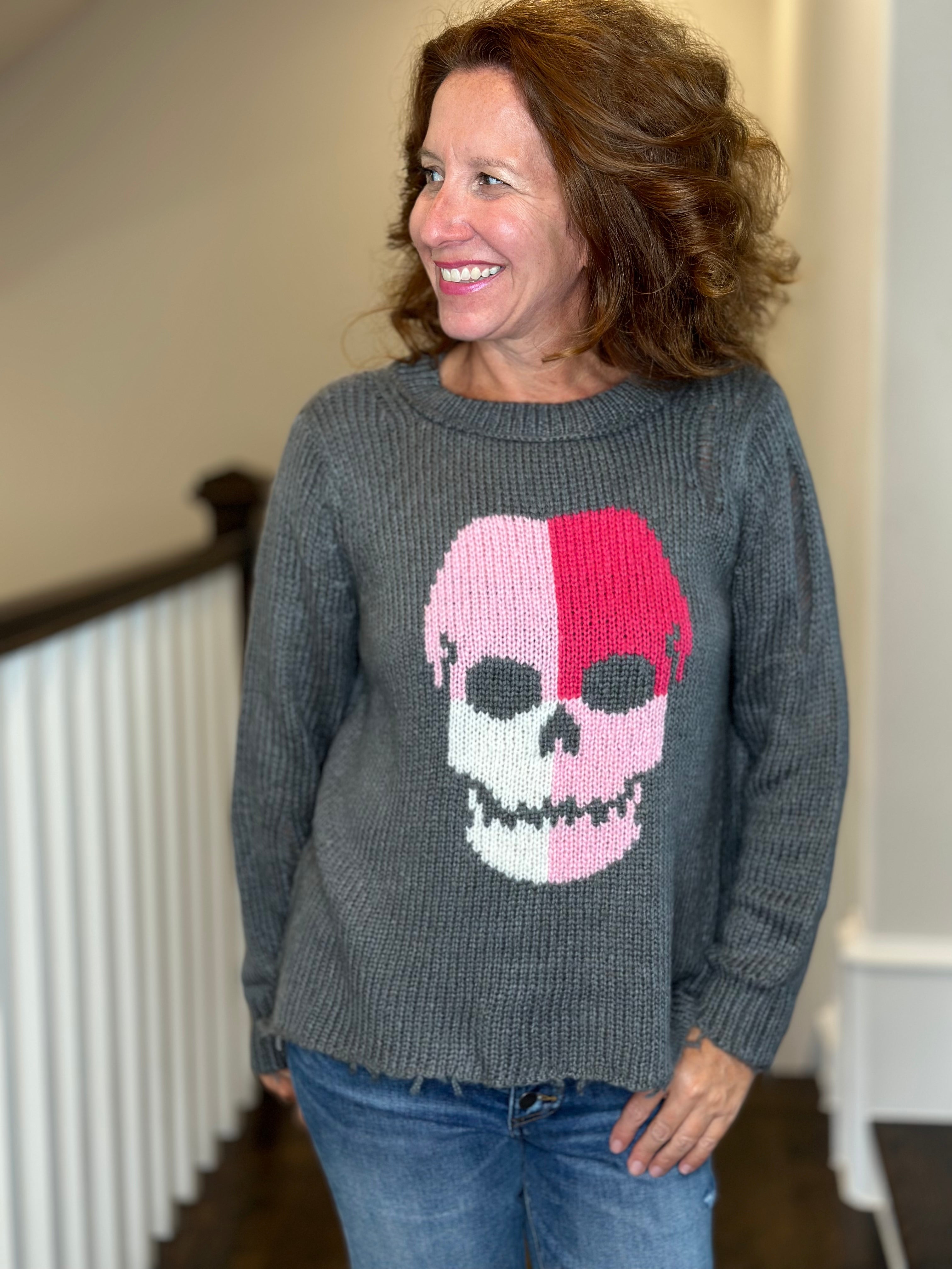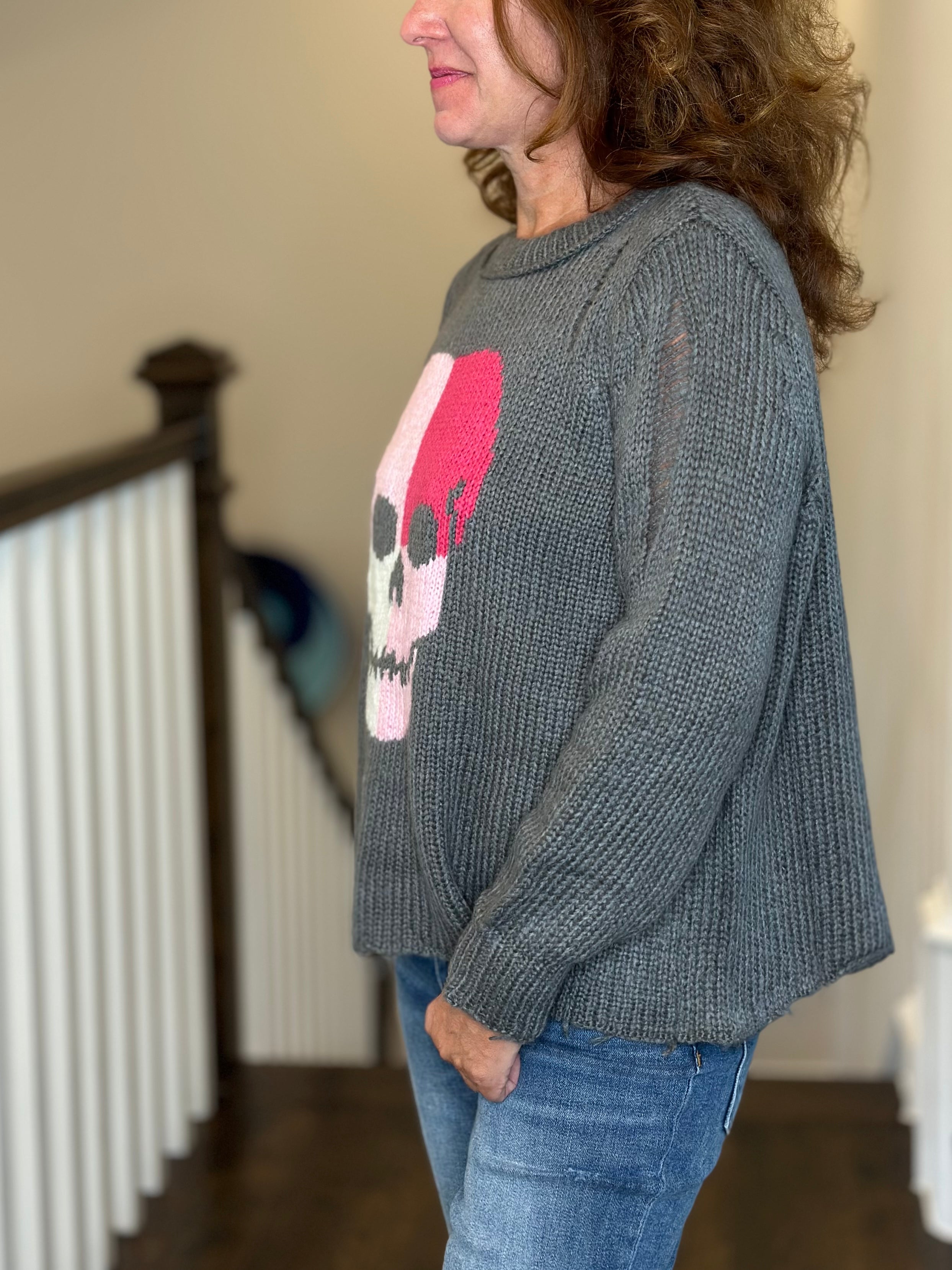 Wooden Ships Colorblock Skull Crew Sweater in Gunmetal