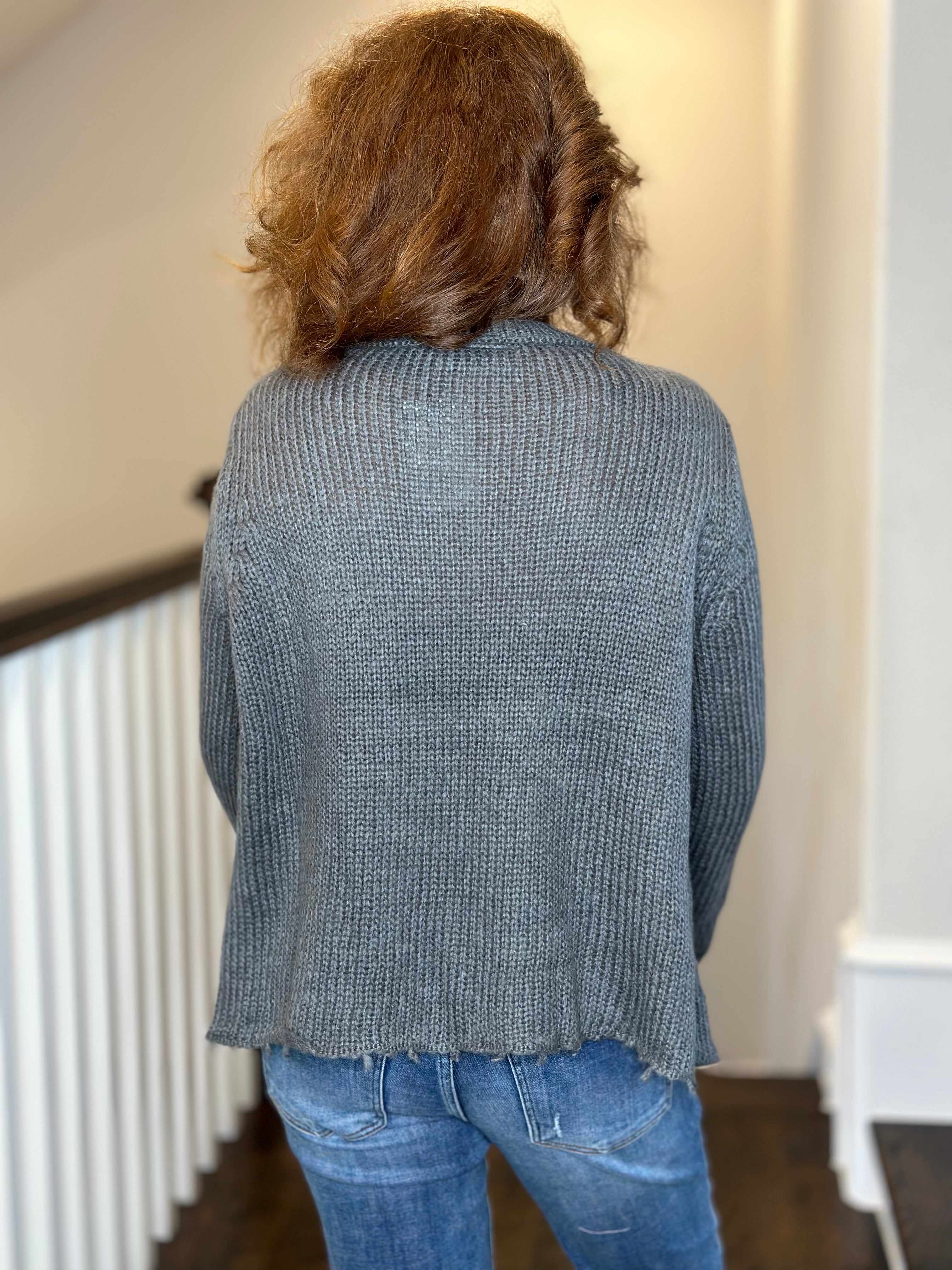 Oh-so-soft and super cozy, this distressed sweater features a flattering, relaxed fit and crew neckline. Cozy details include ribbing on the hem, neckline and cuffs. Super versatile, this top pairs beautifully over all bottoms.