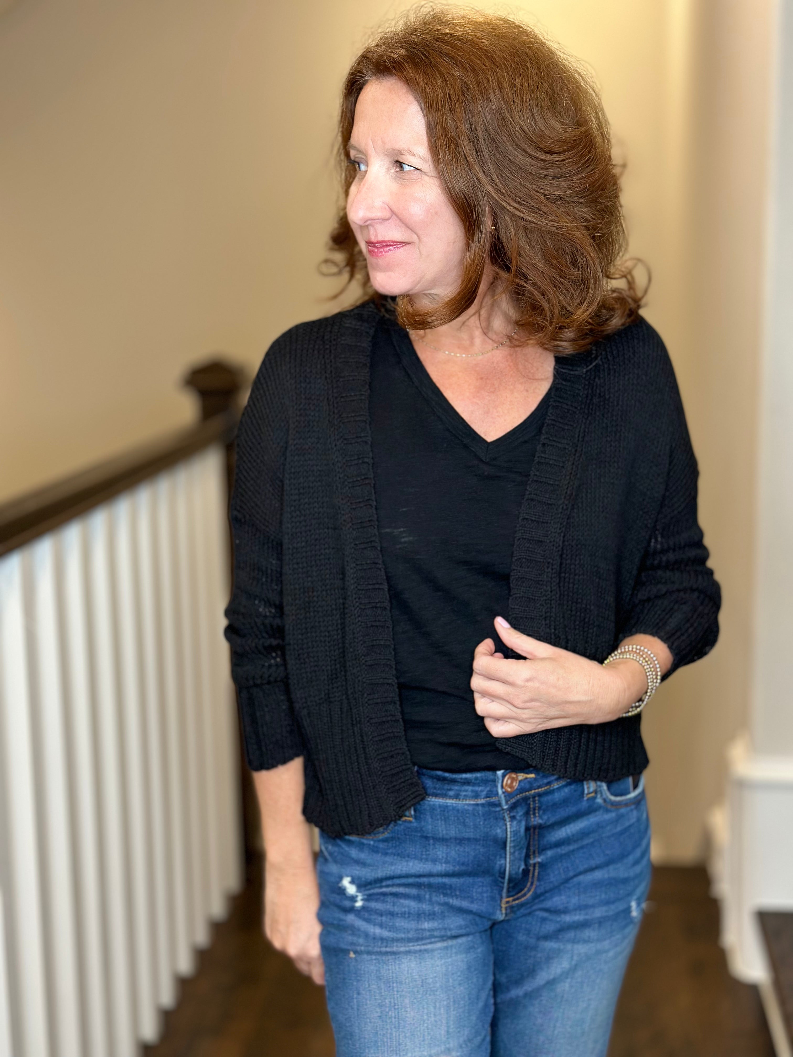 Oh-so-soft and super comfy, this sweater features a flattering, relaxed fit and open front. Details include ribbing around the neck, front opening, rib sleeve and bottom hem. Super versatile, a closet staple.