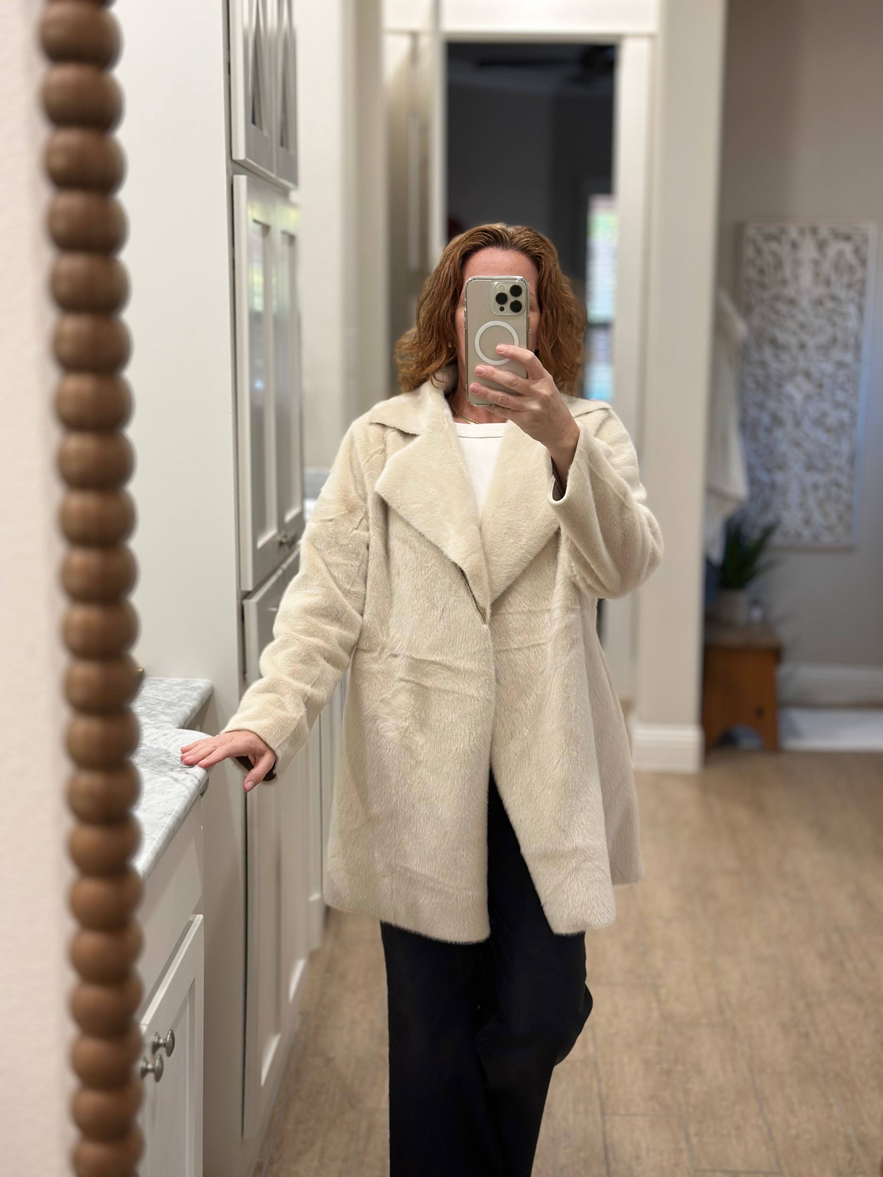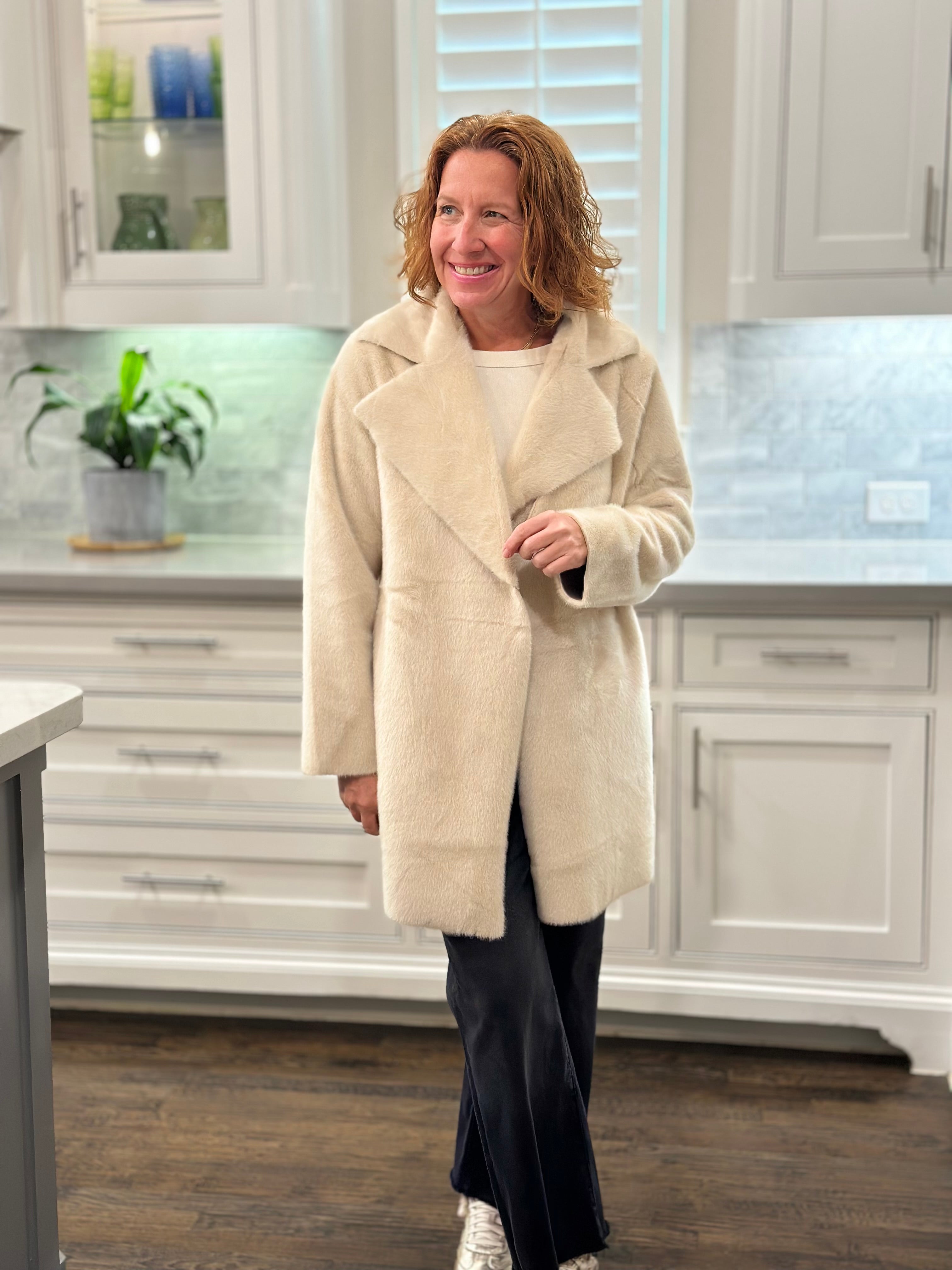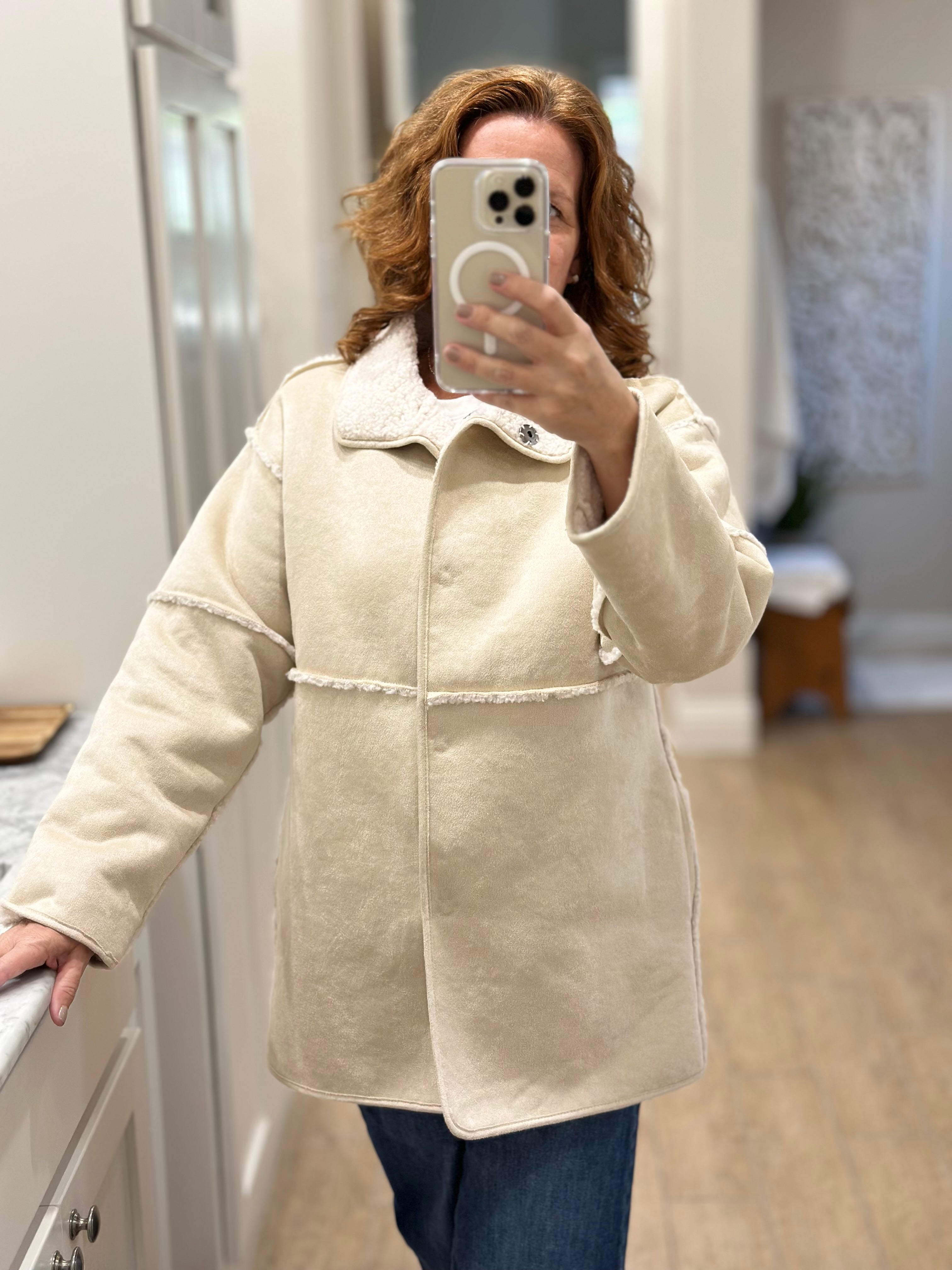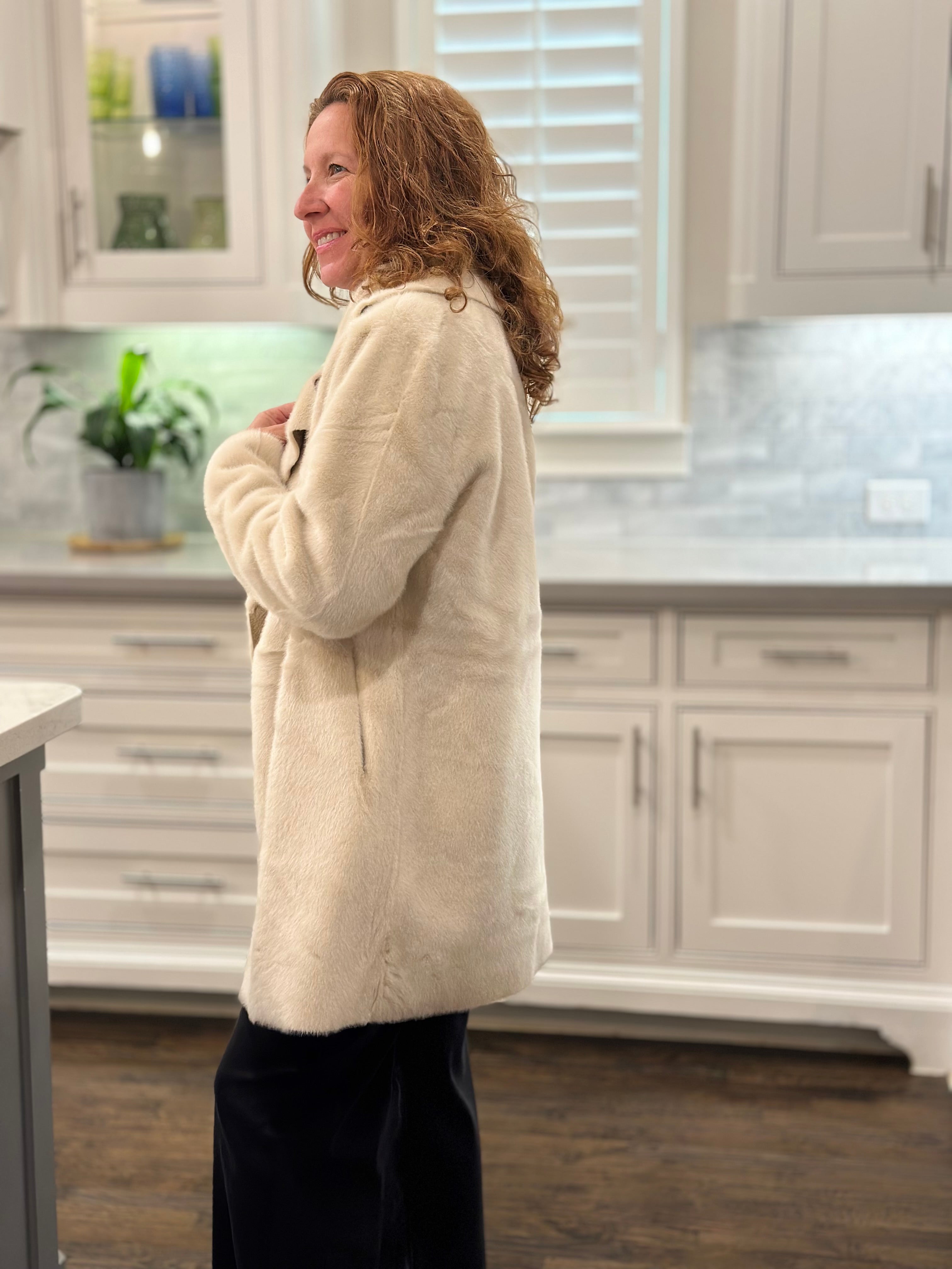 Ivy Jane - Faux Fur & Suede Coat in Cream