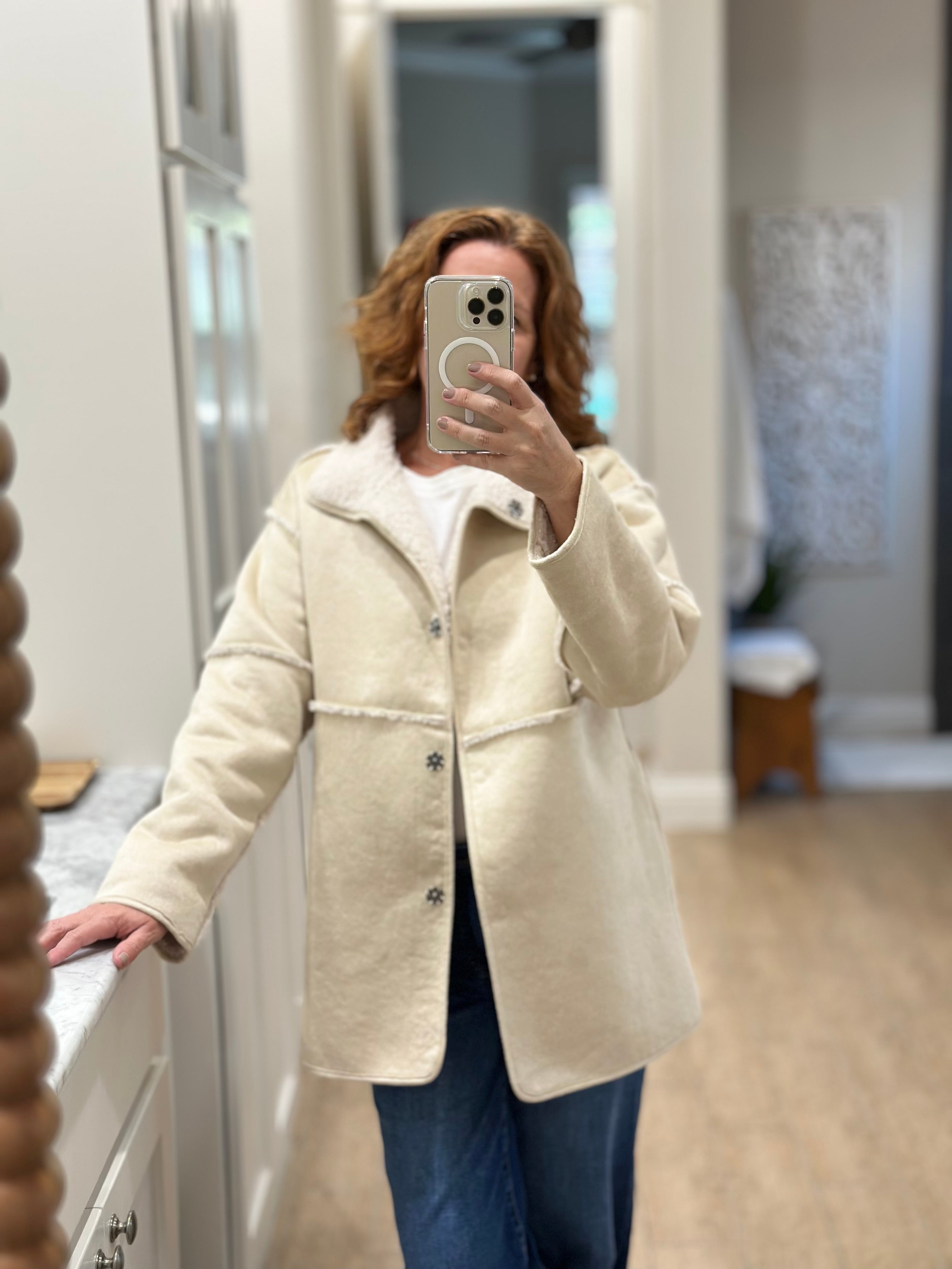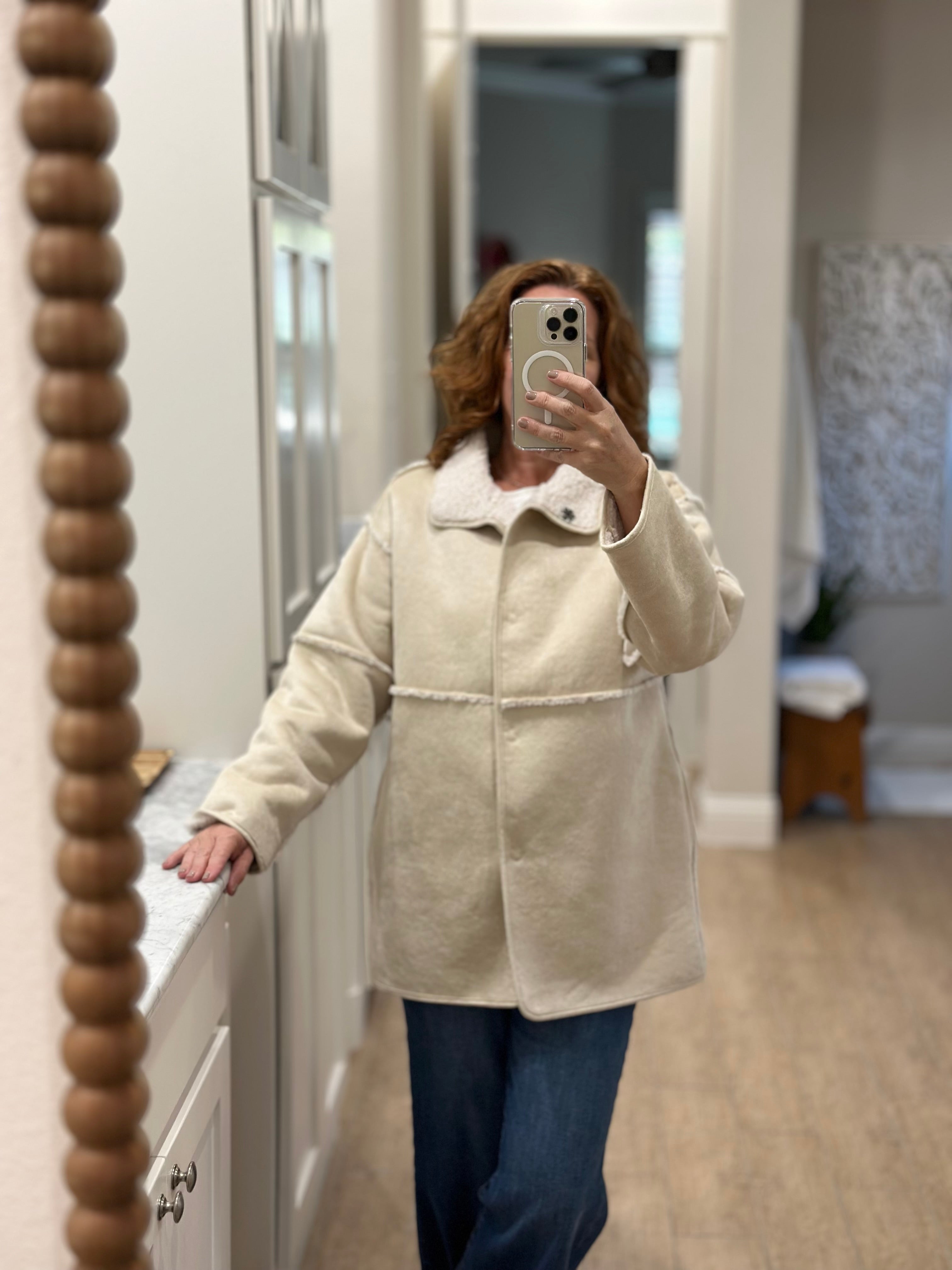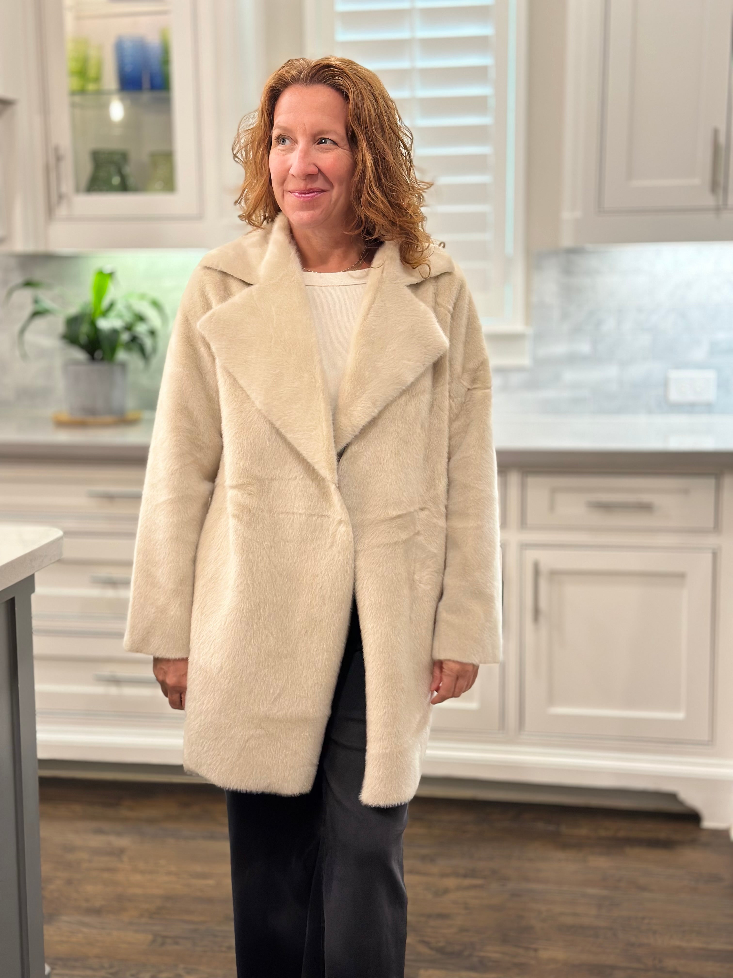 Ivy Jane - Faux Fur & Suede Coat in Cream