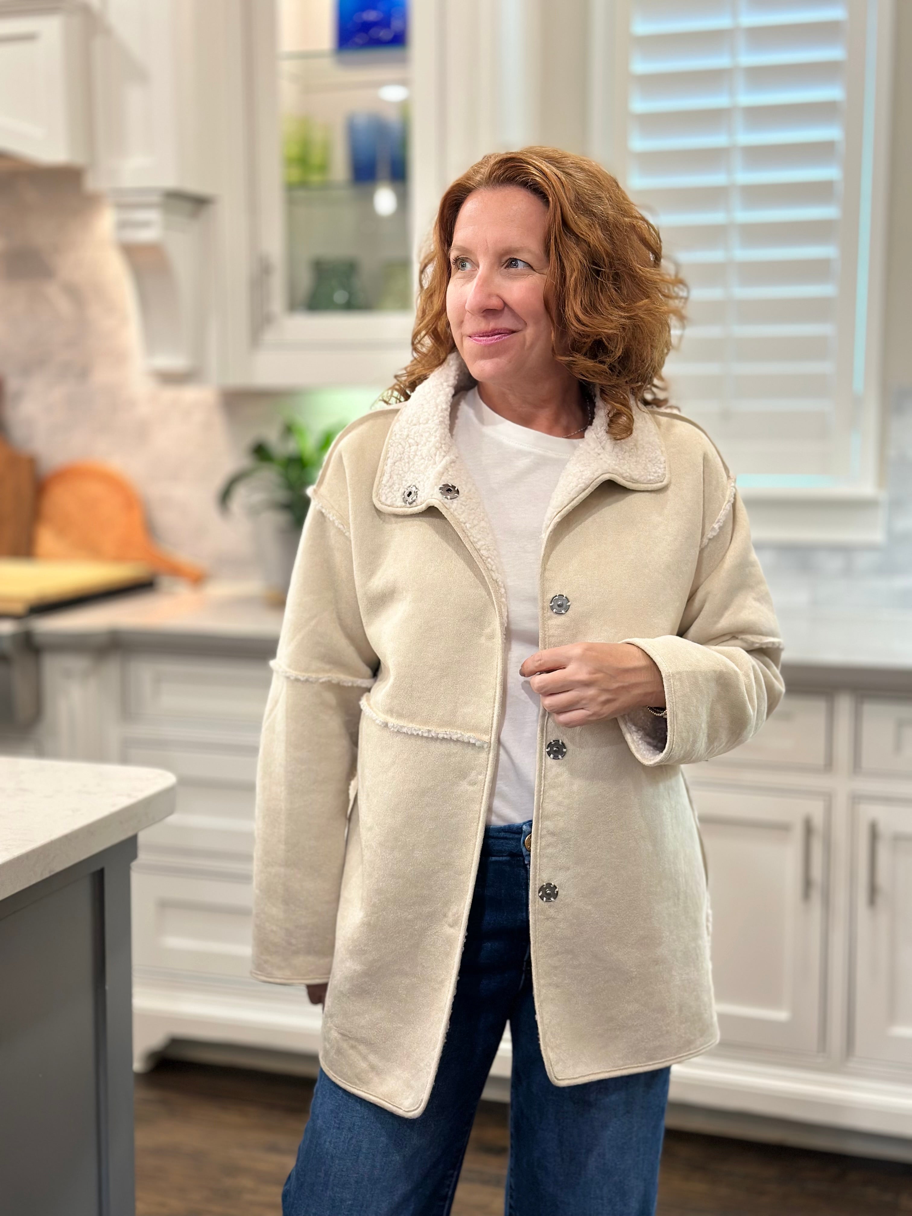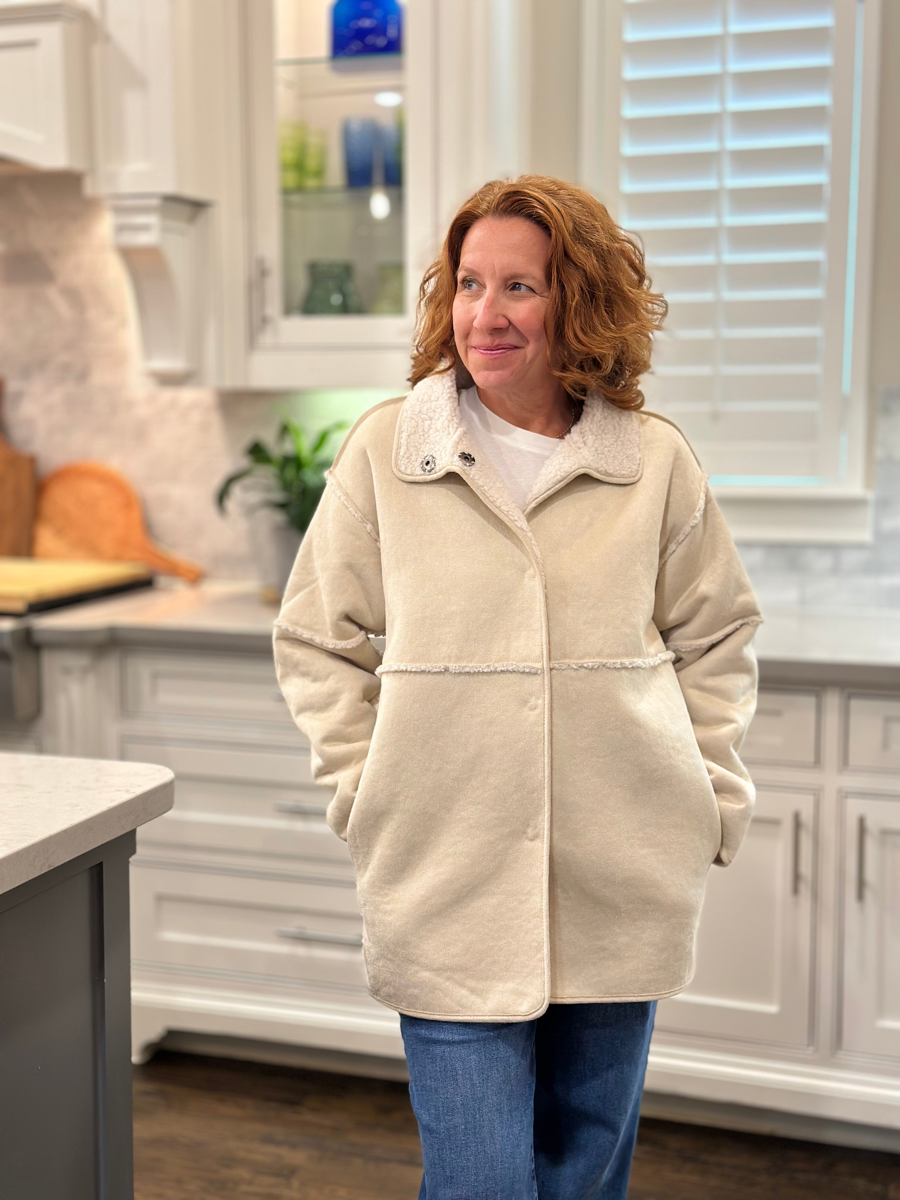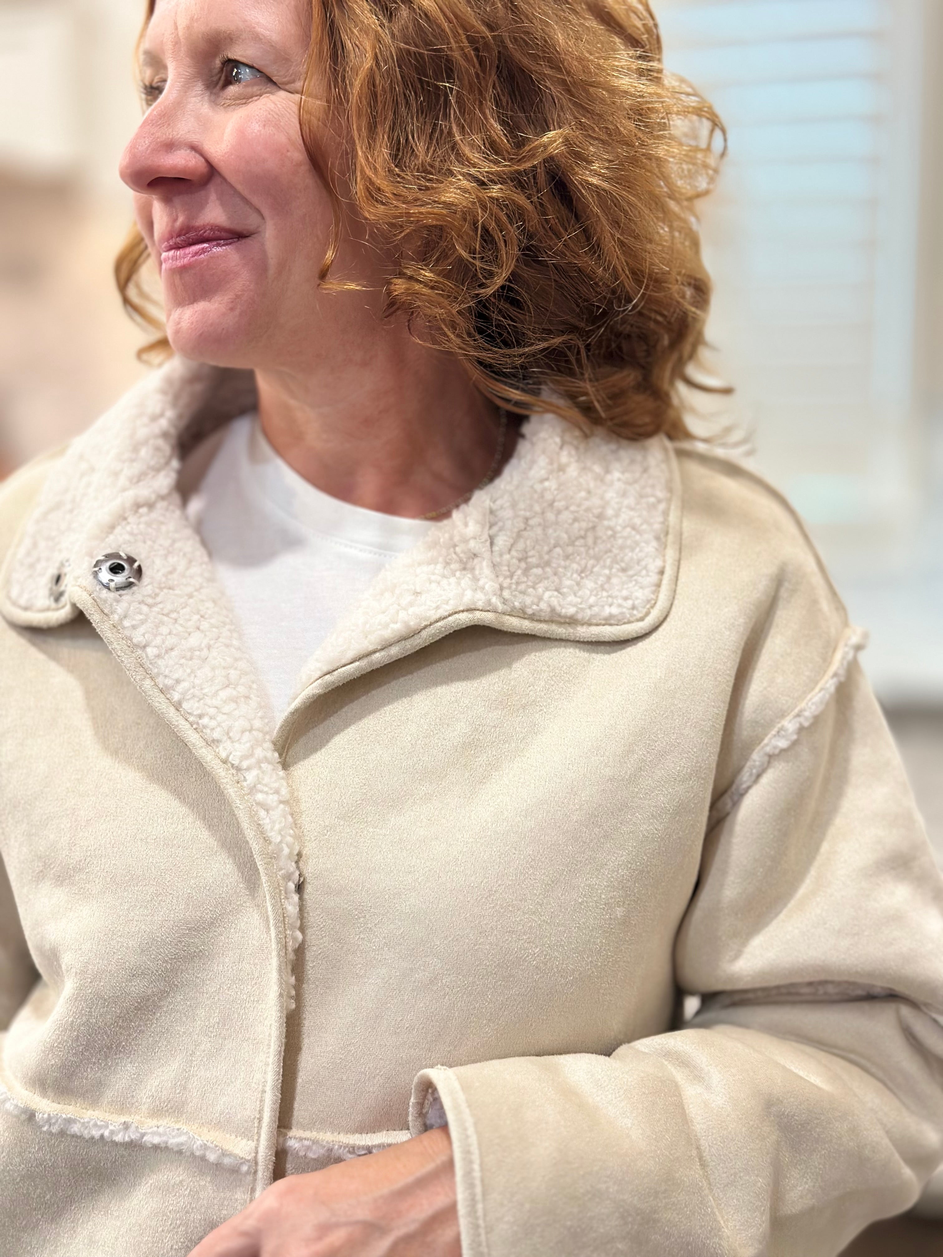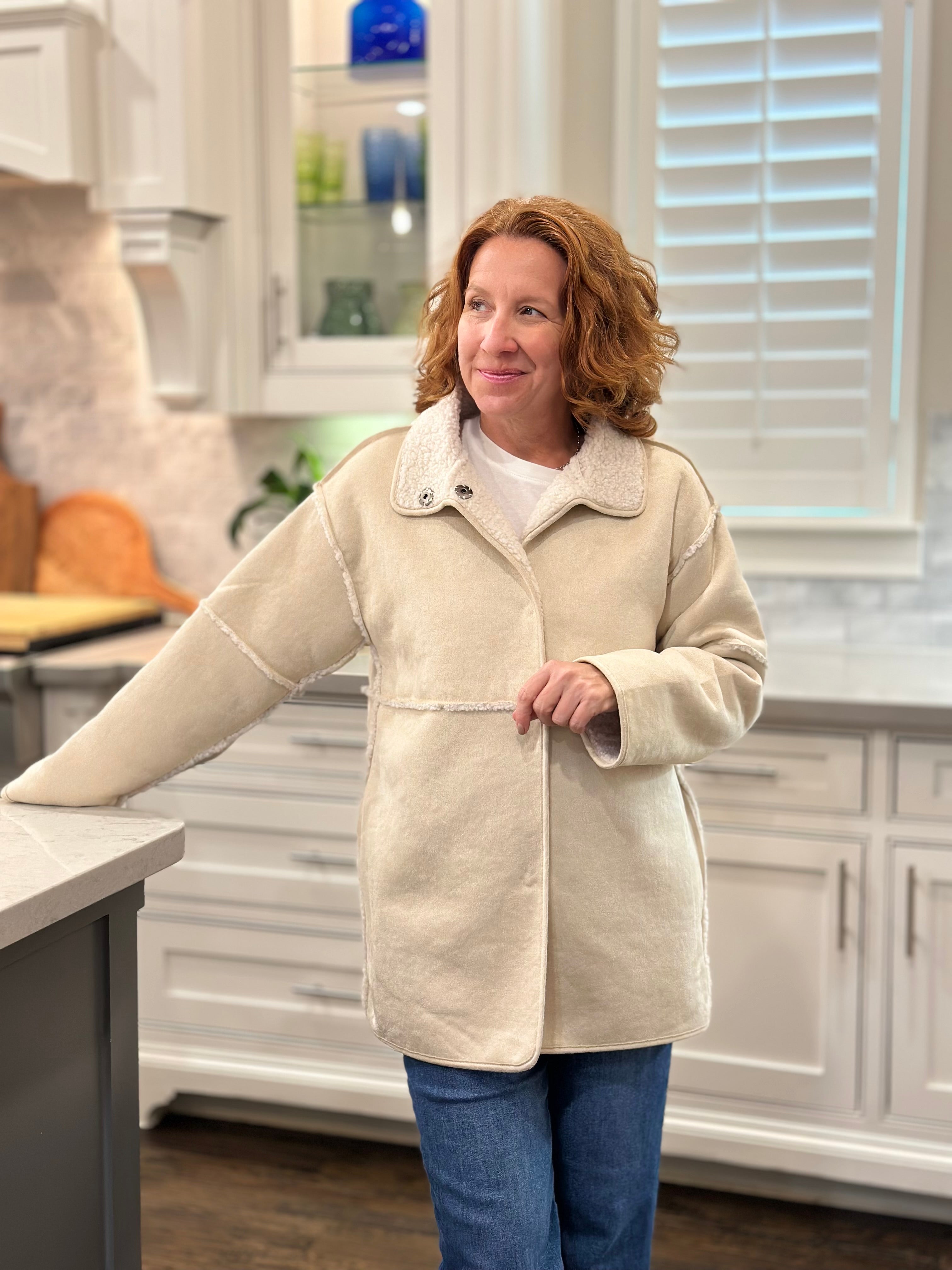 Ivy Jane - Faux Fur & Suede Coat in Cream