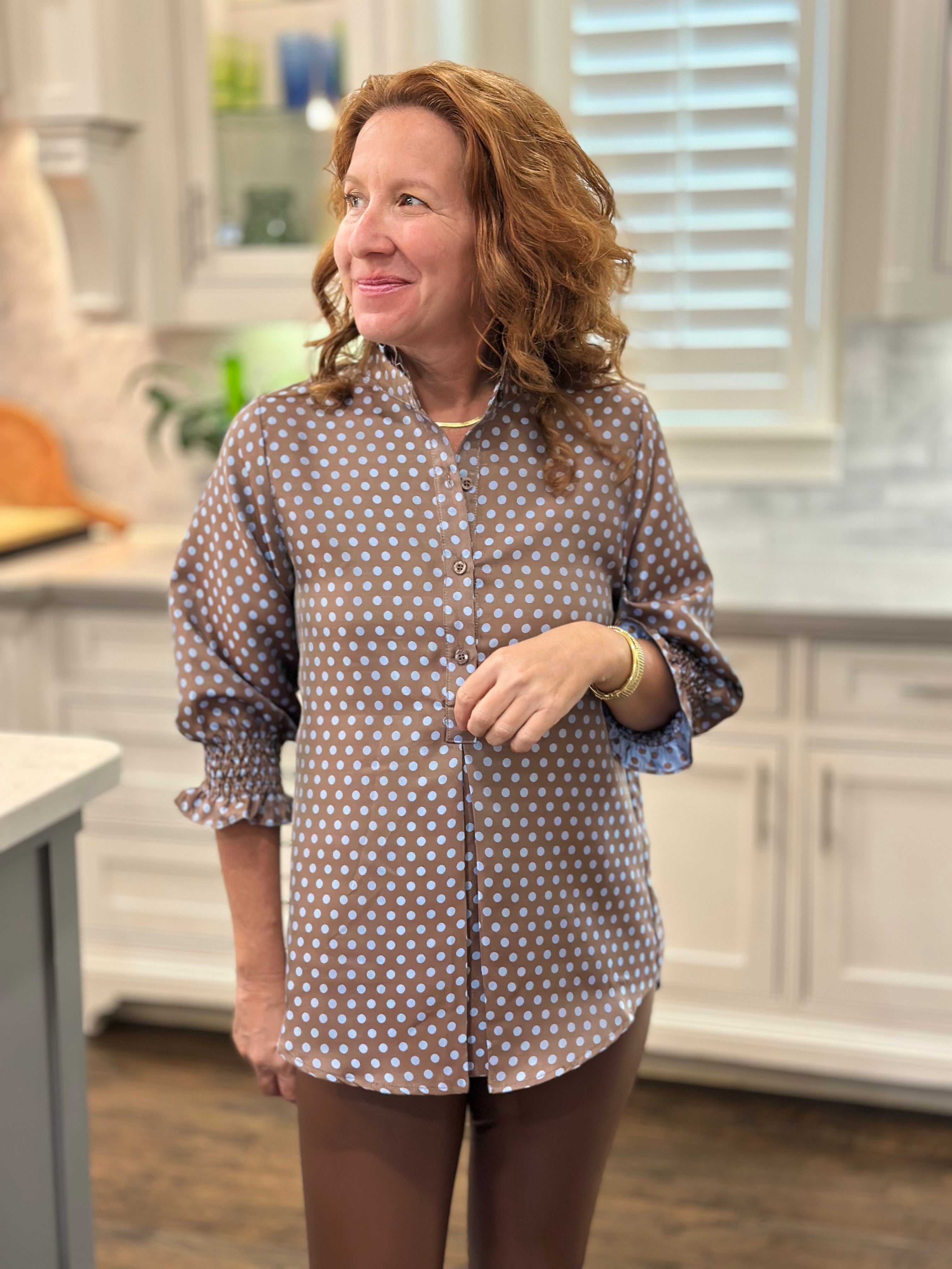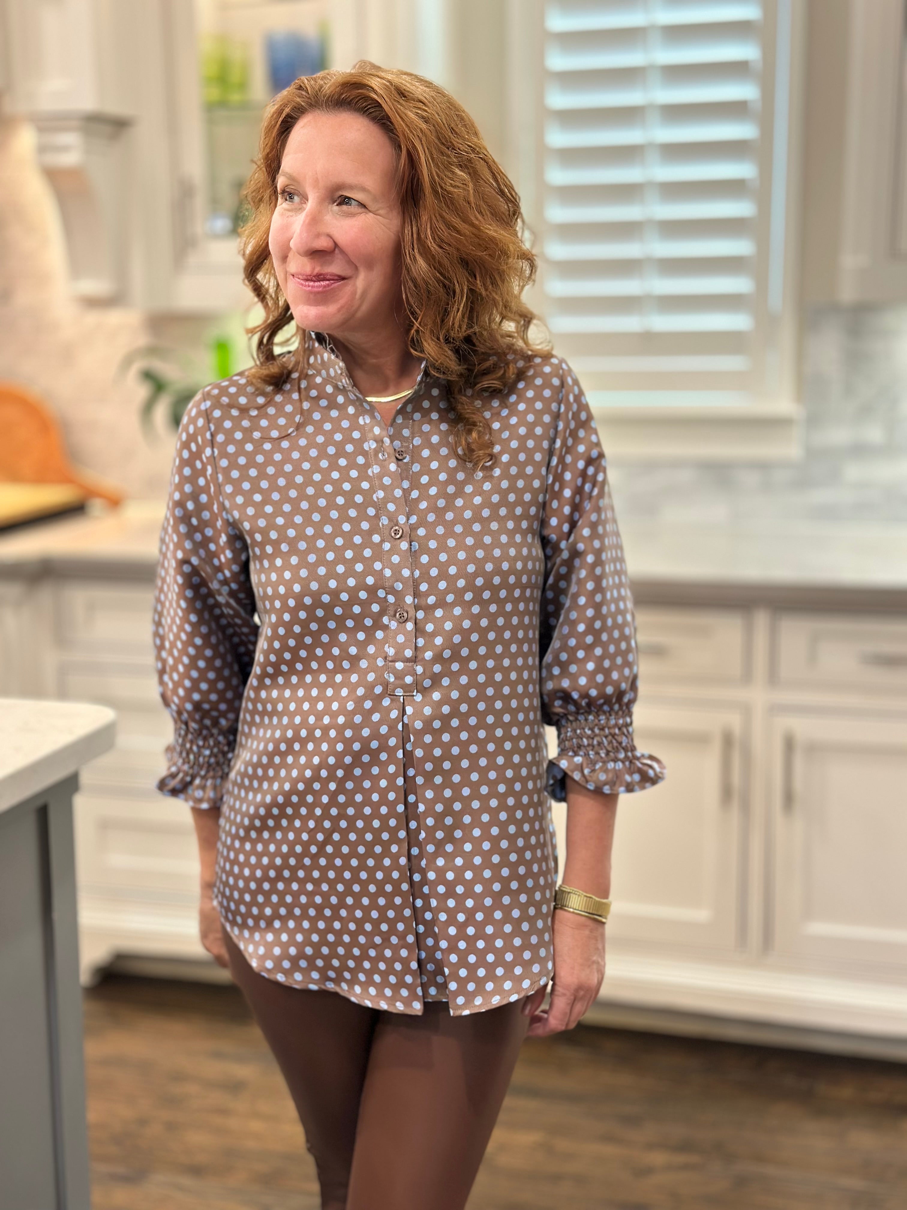 Caryn Lawn - Kimberly Polkadot Top in Coco