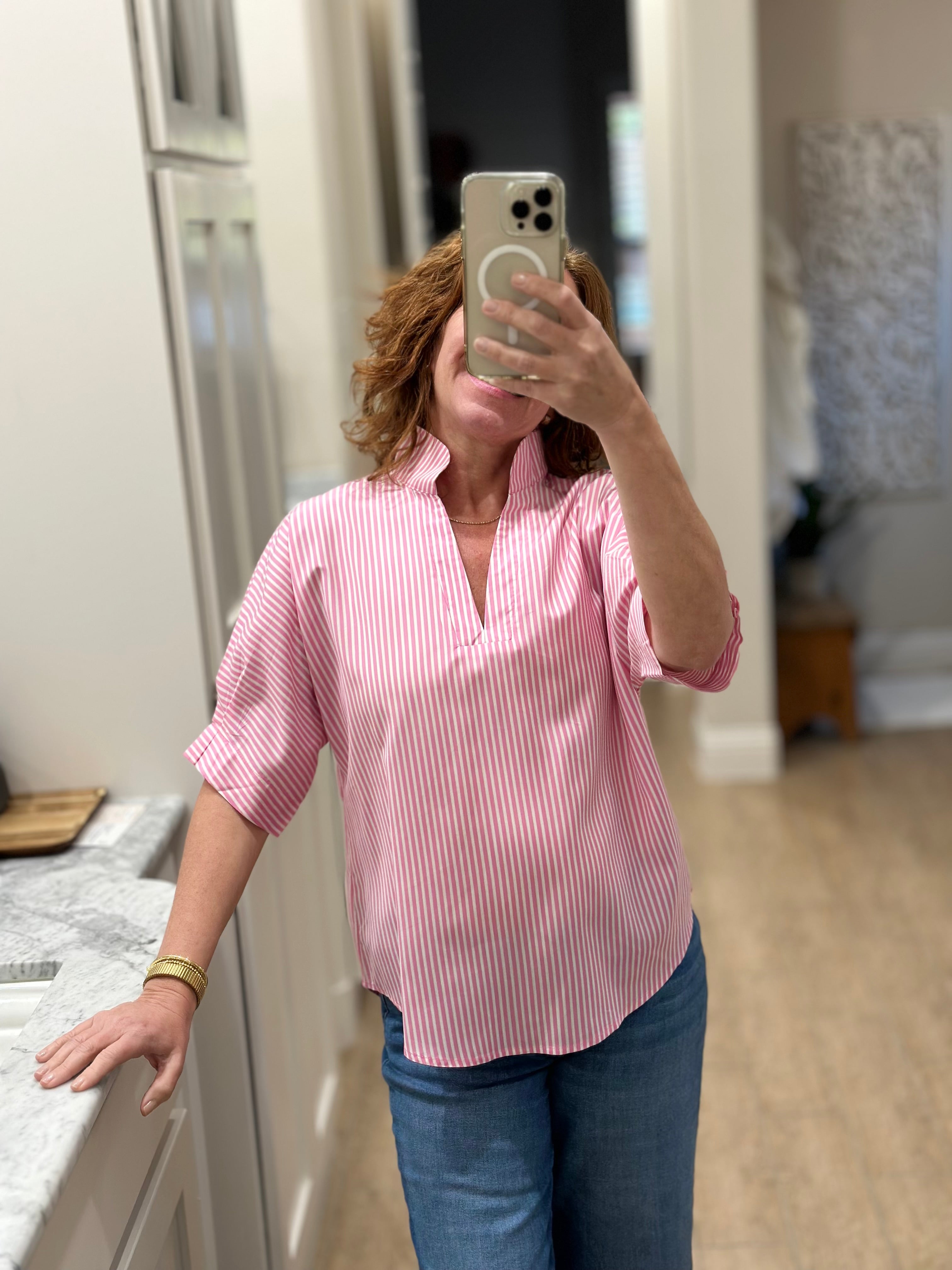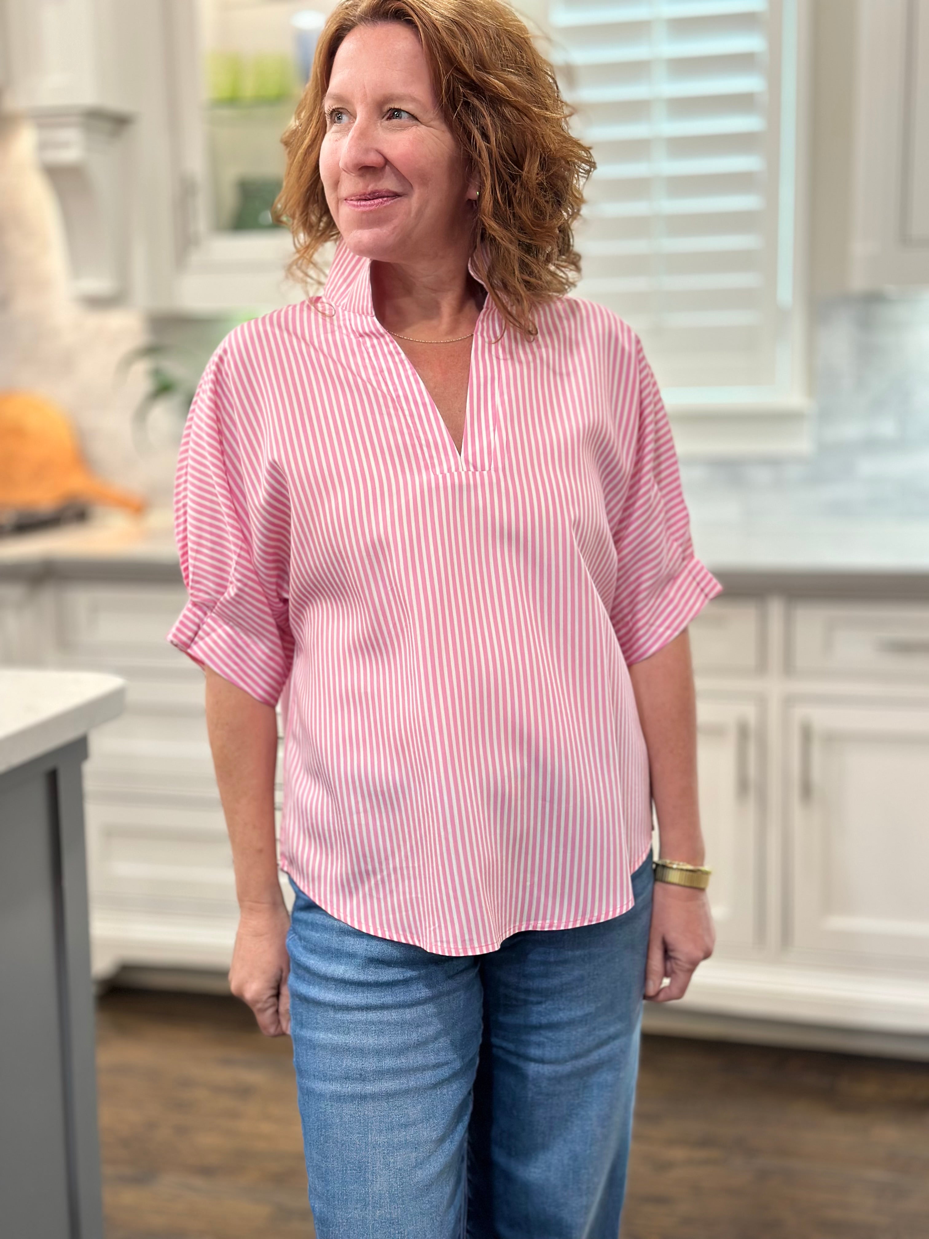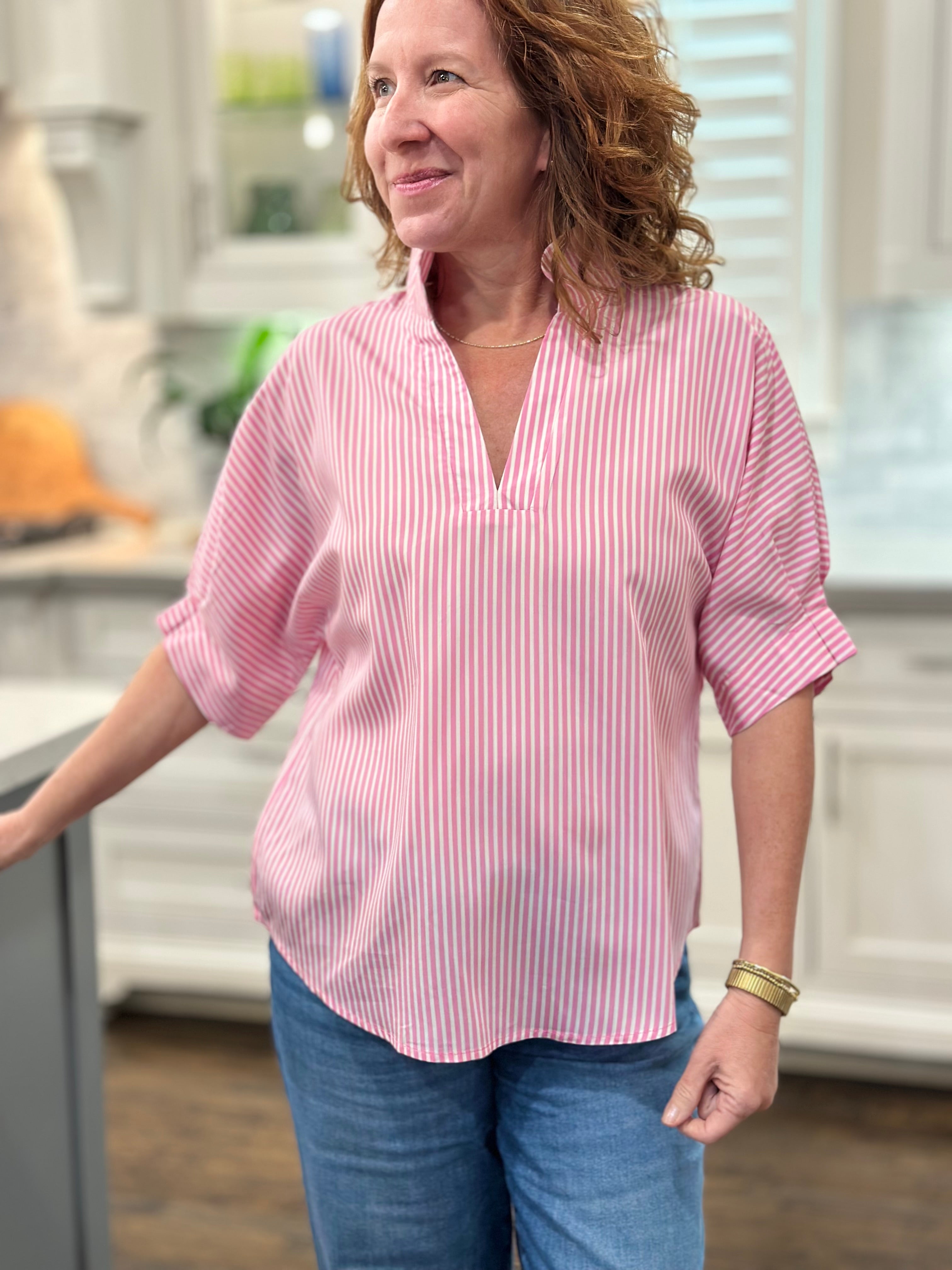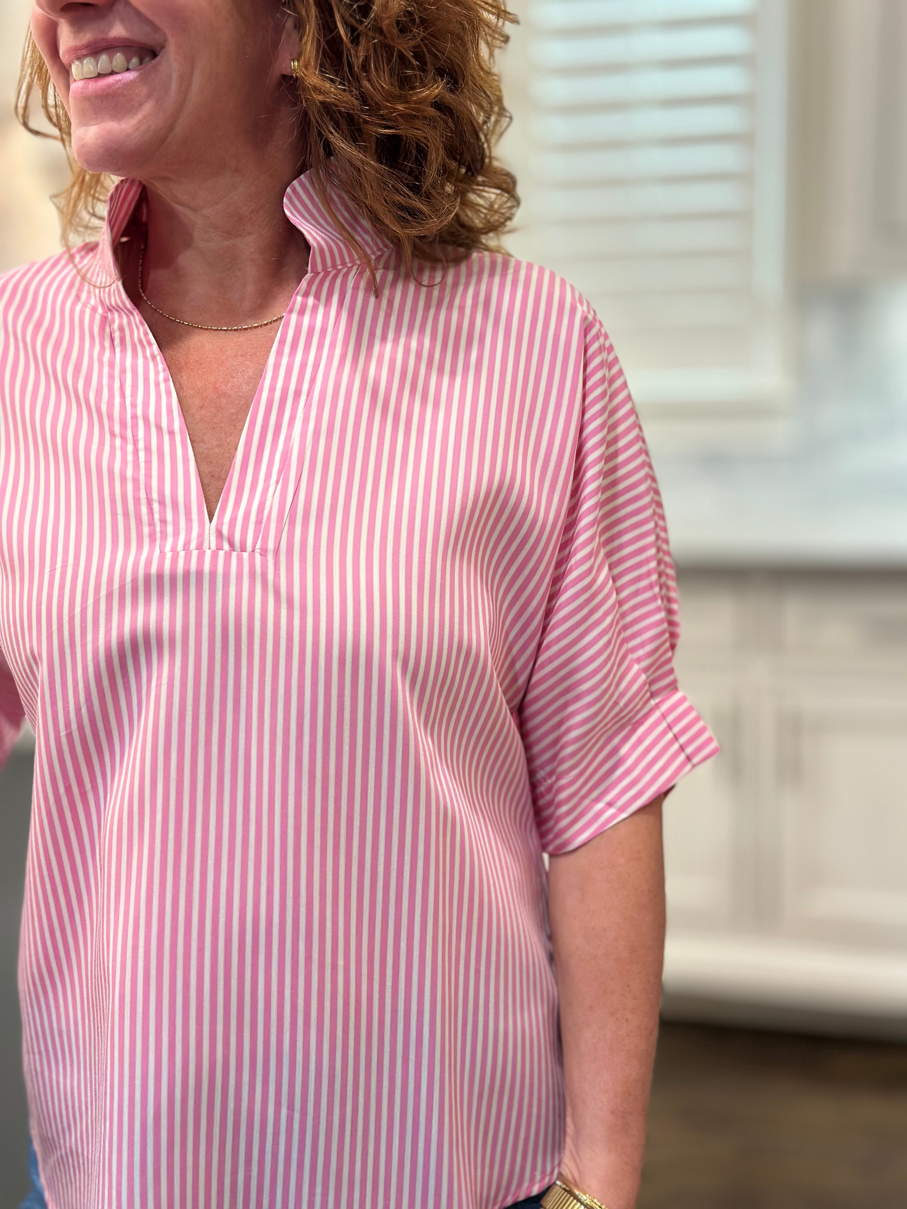 Caryn Lawn - Annie Top in Pink Stripe
