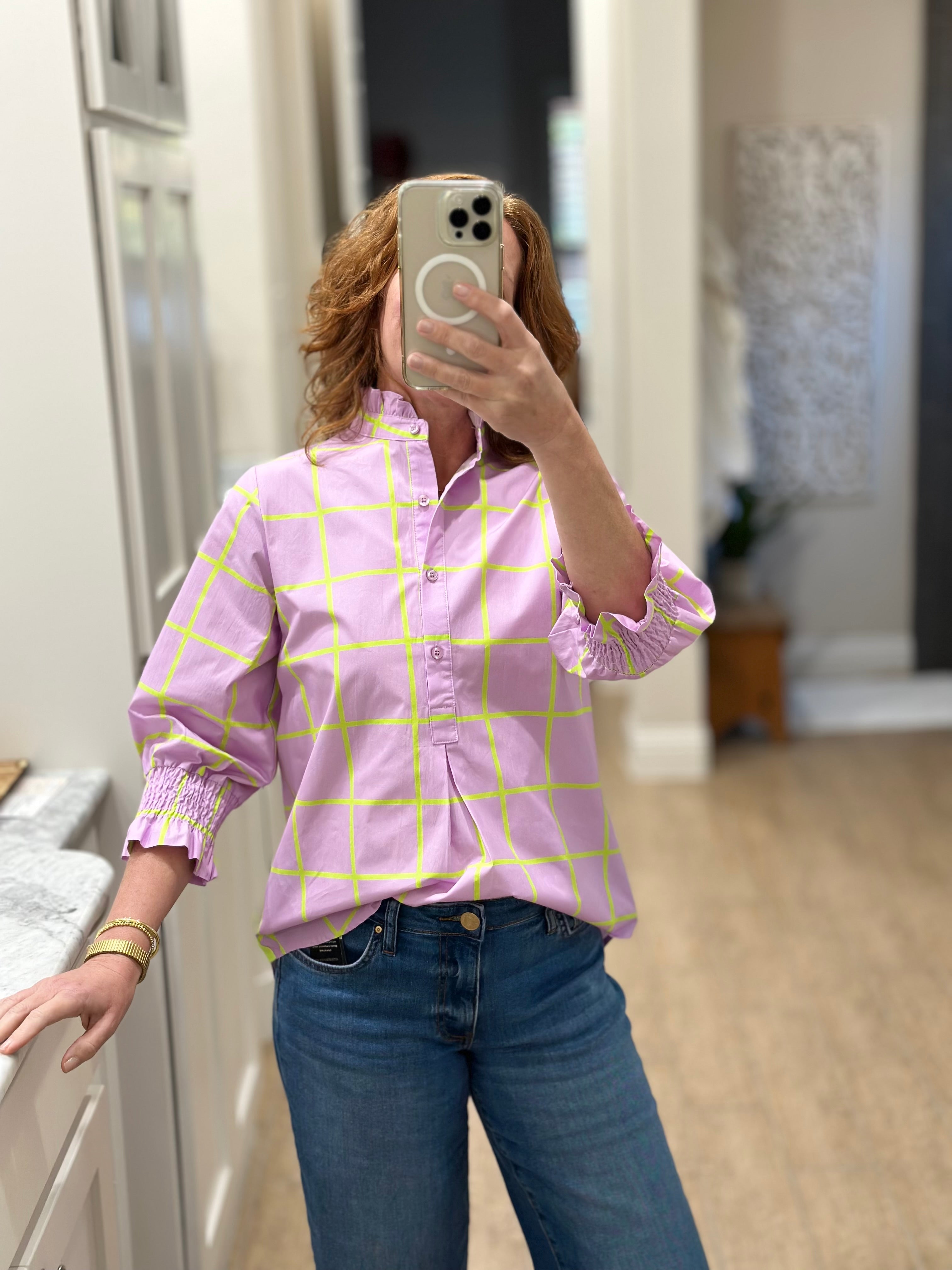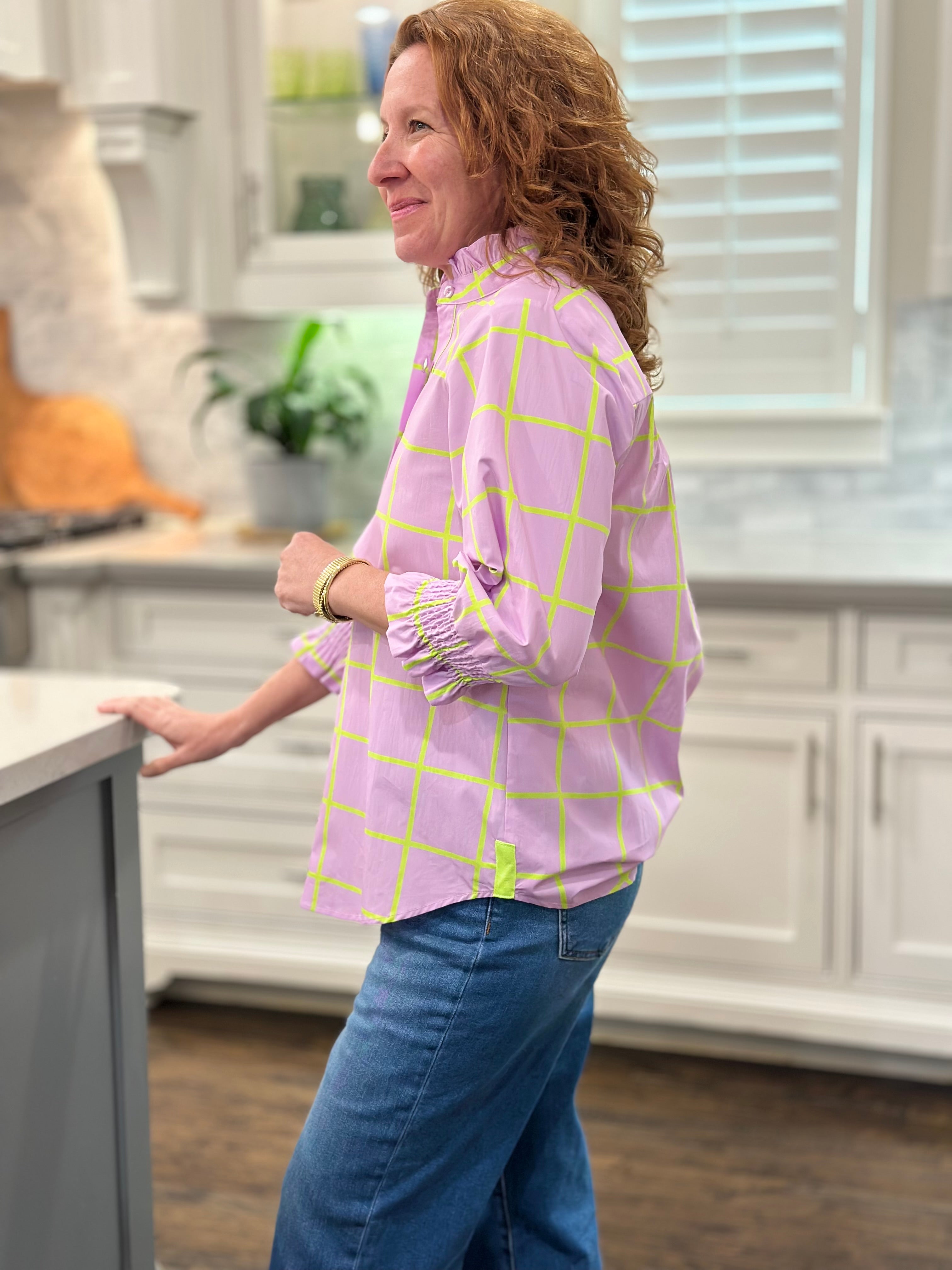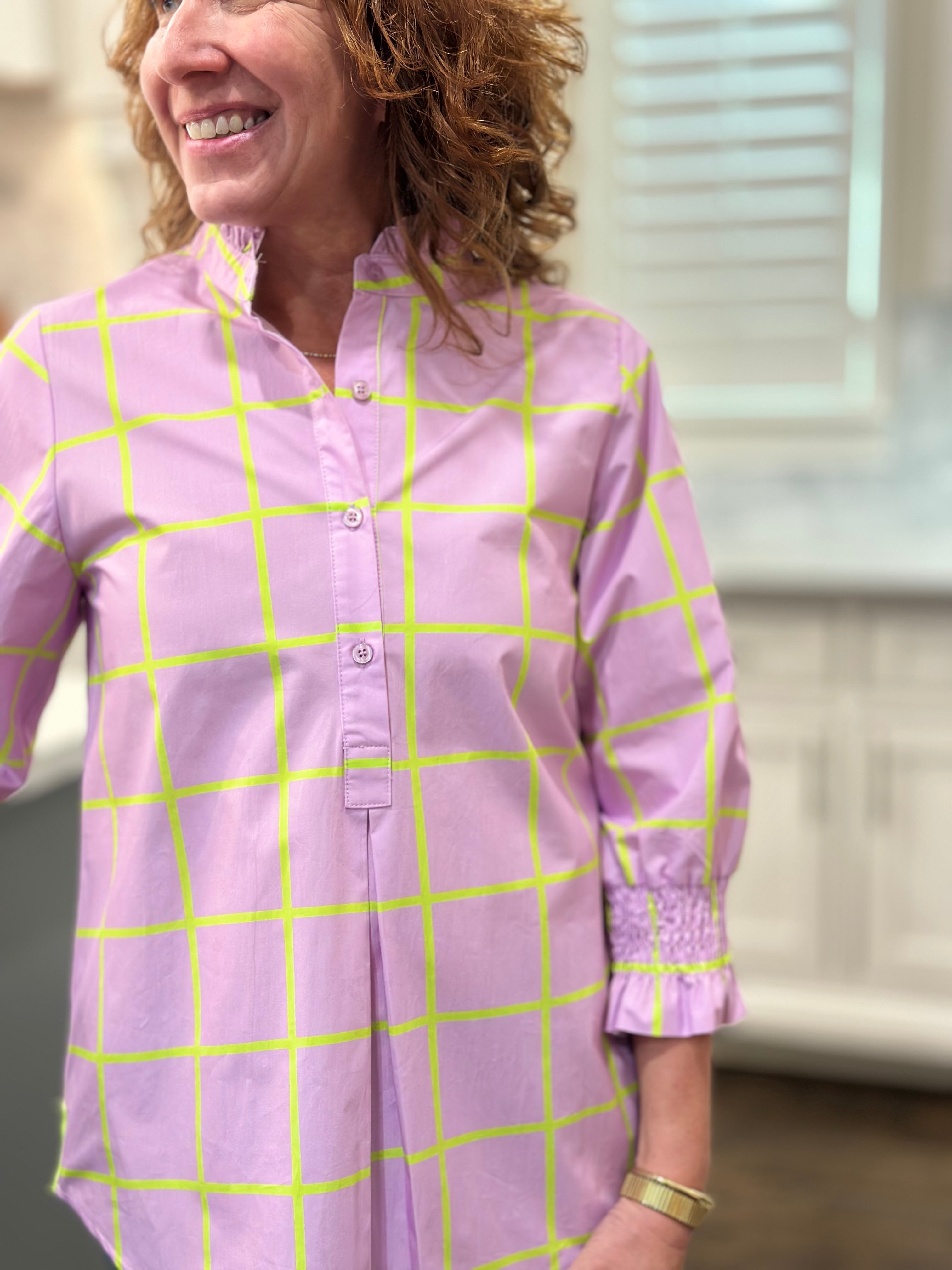 Caryn Lawn - Kimberly Park Top in Lavender & Green
