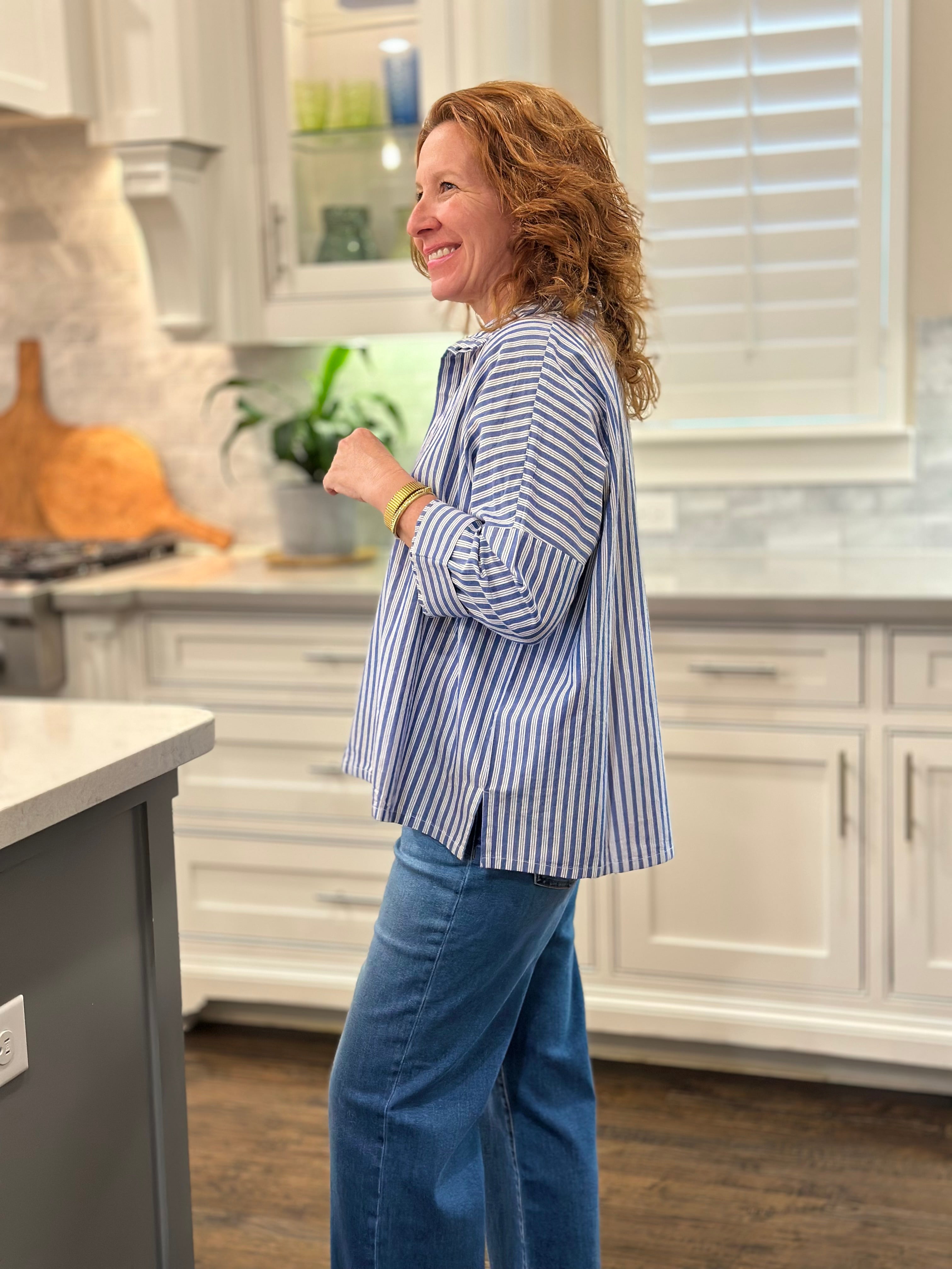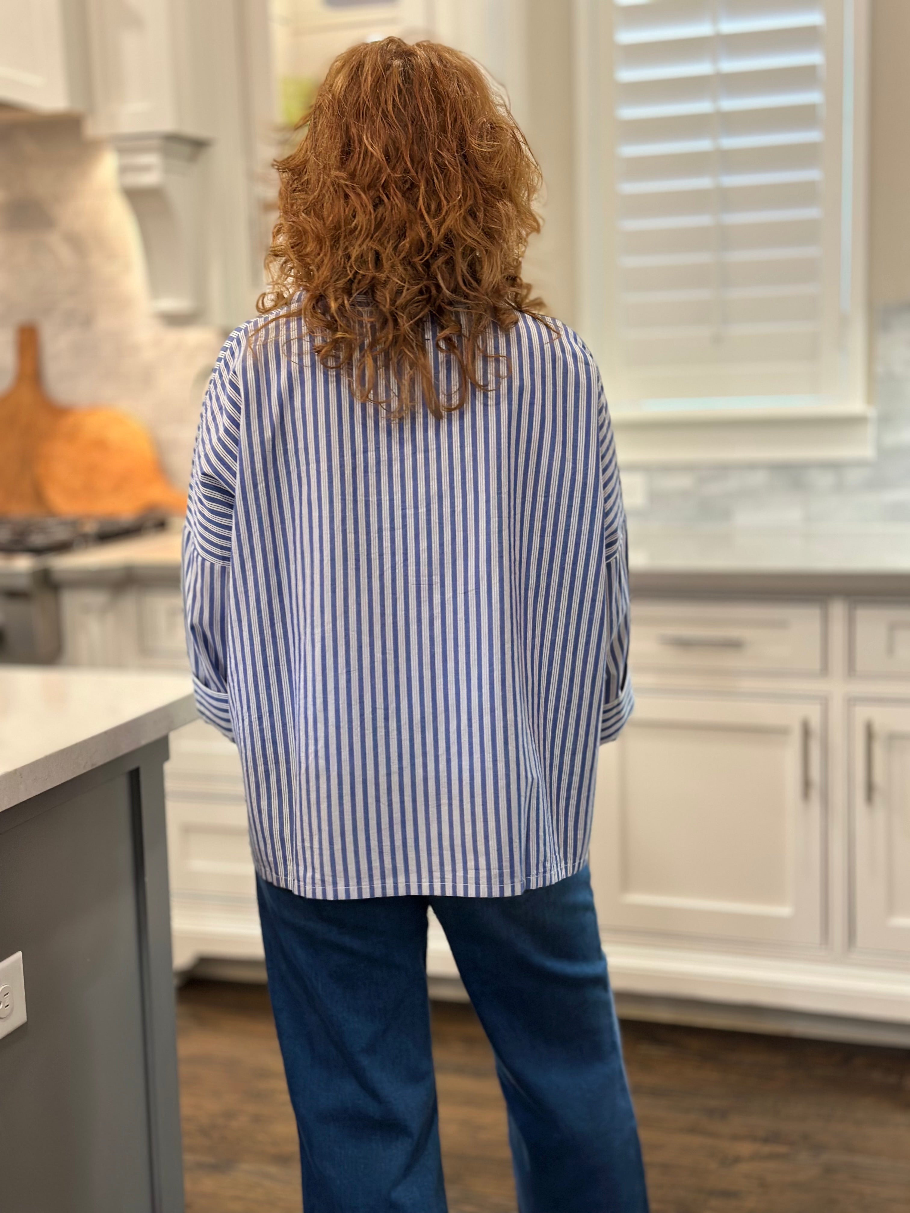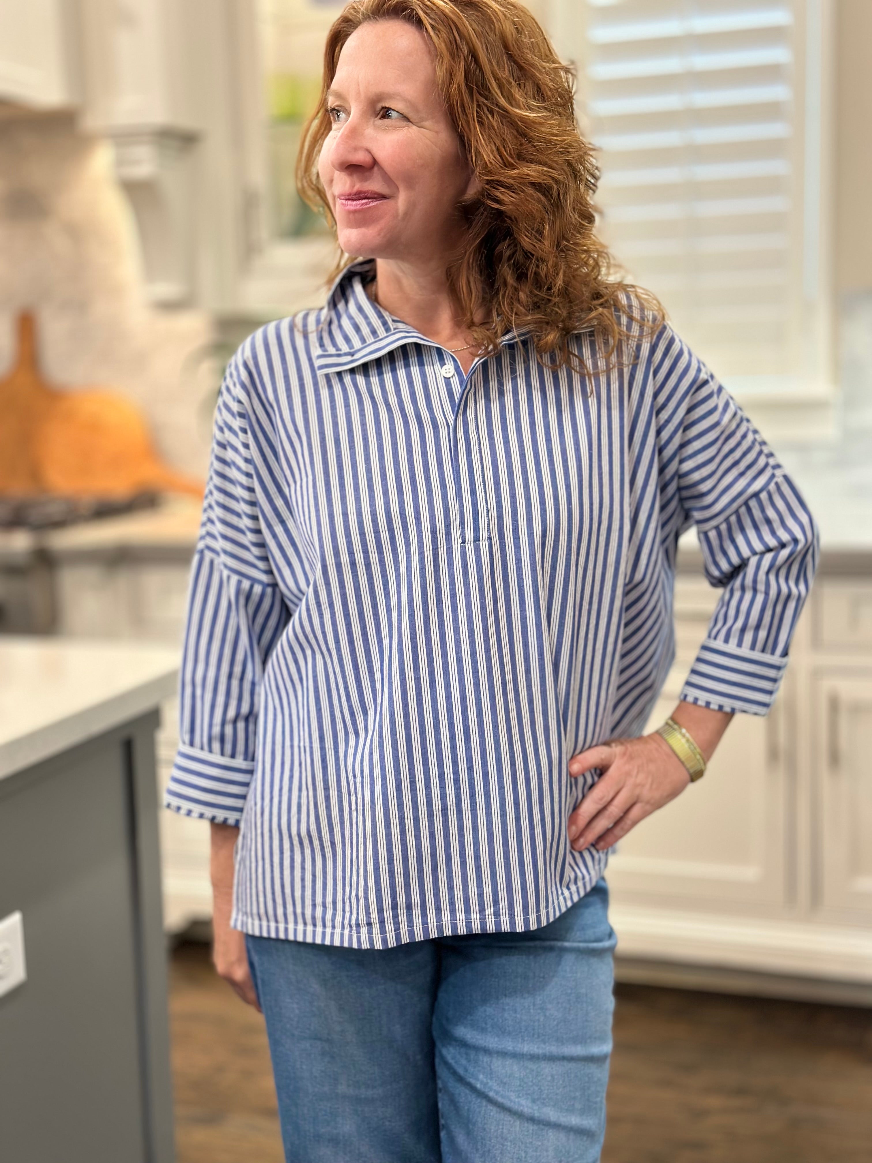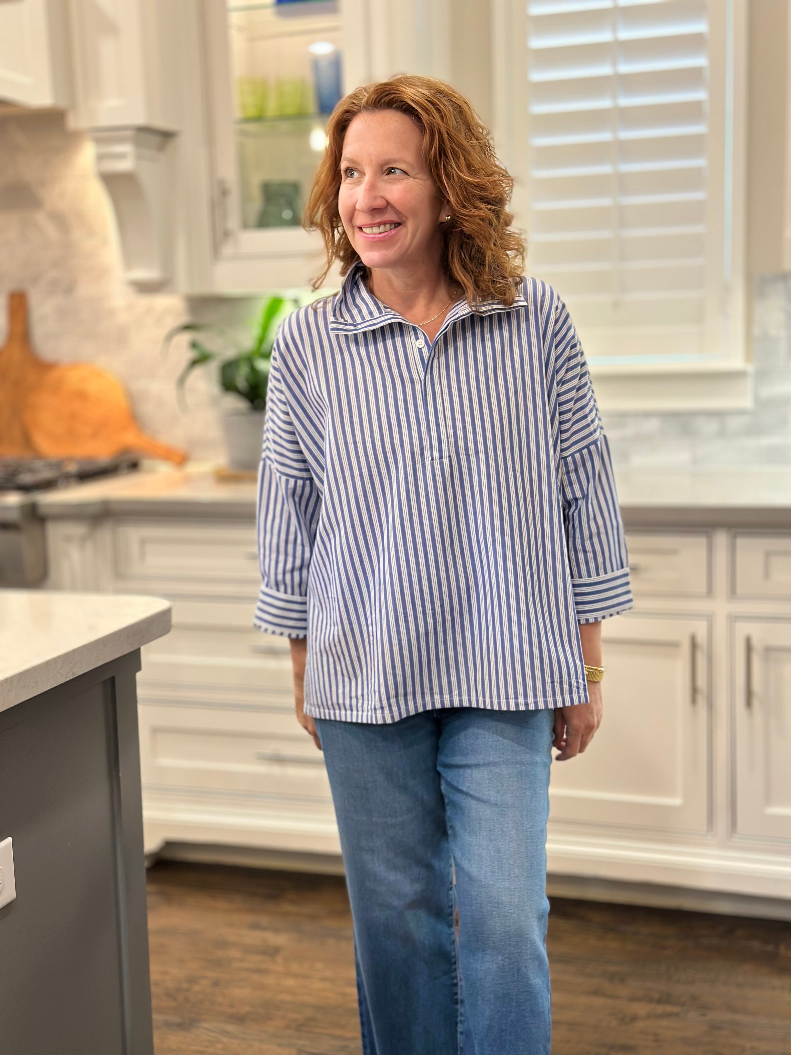 Voyageur - Emerson Top in Blue Double Stripe
