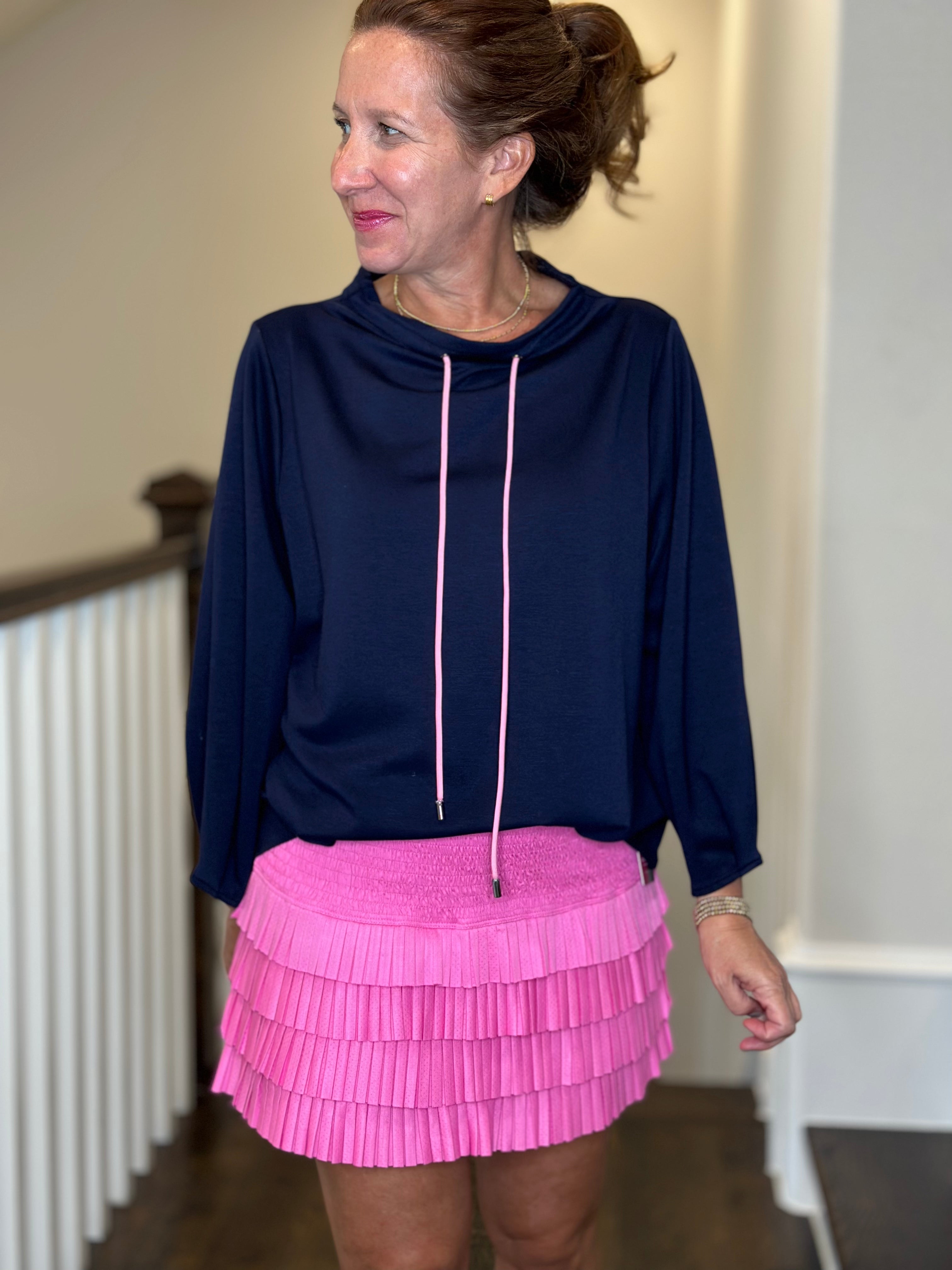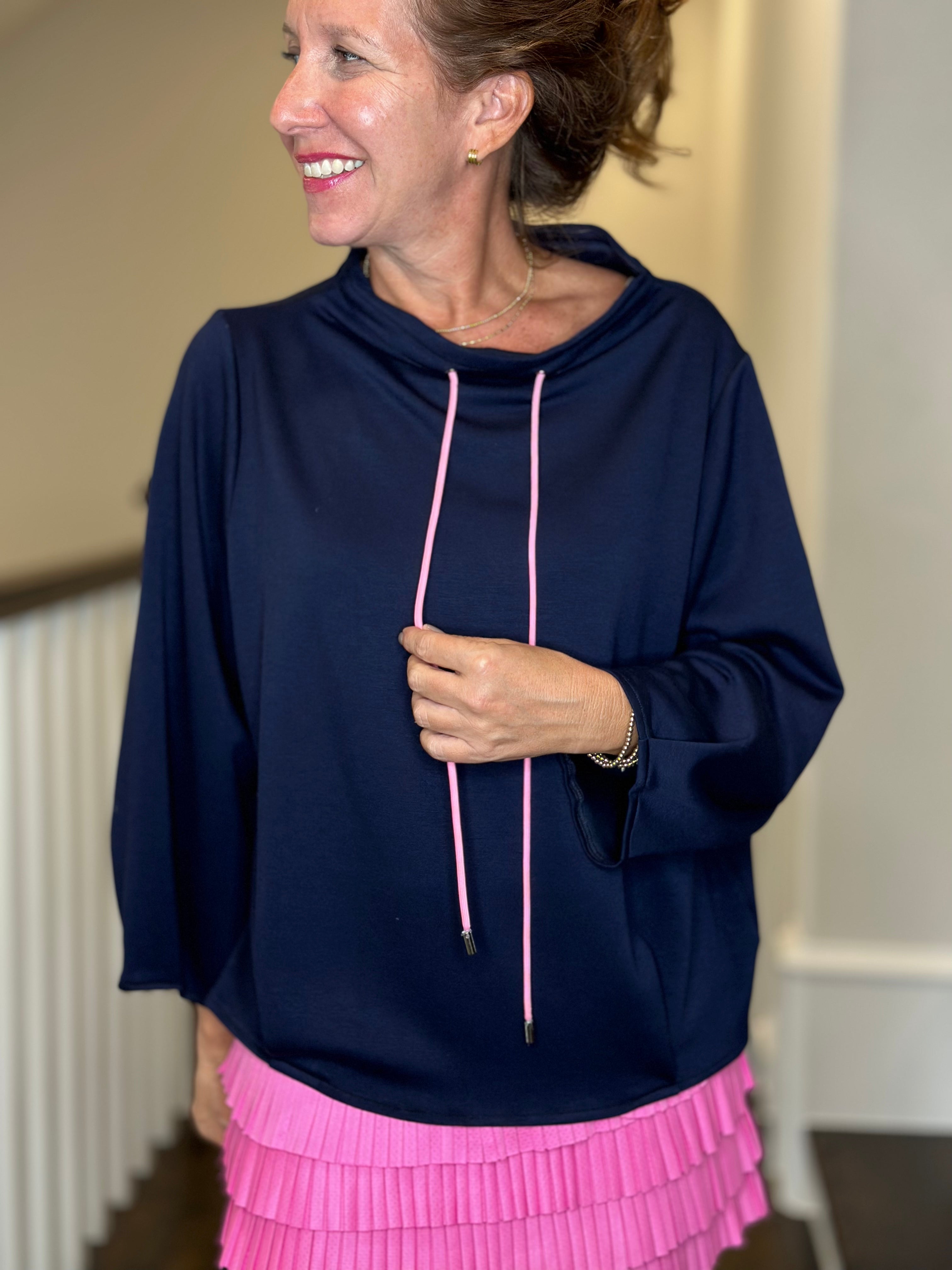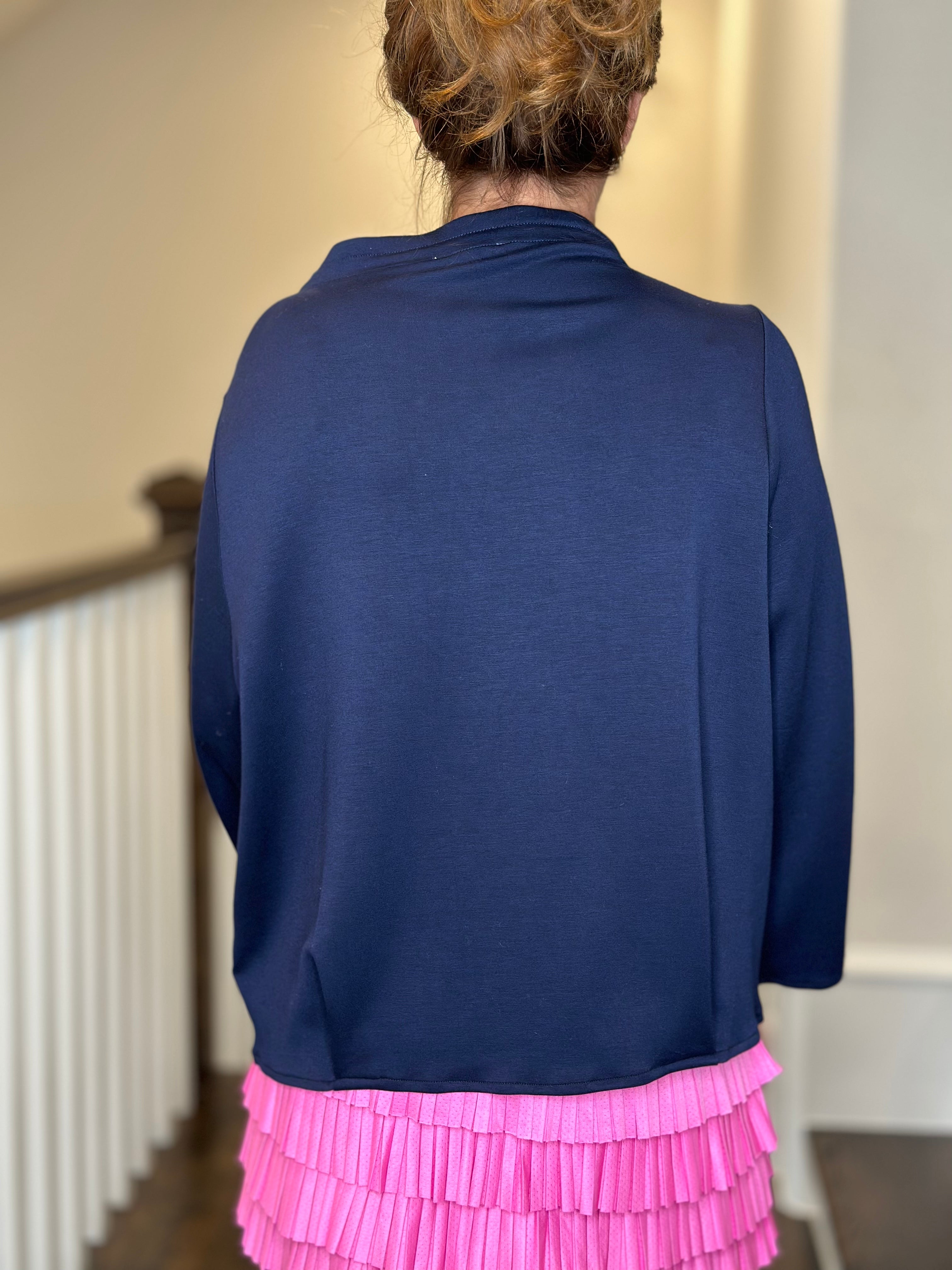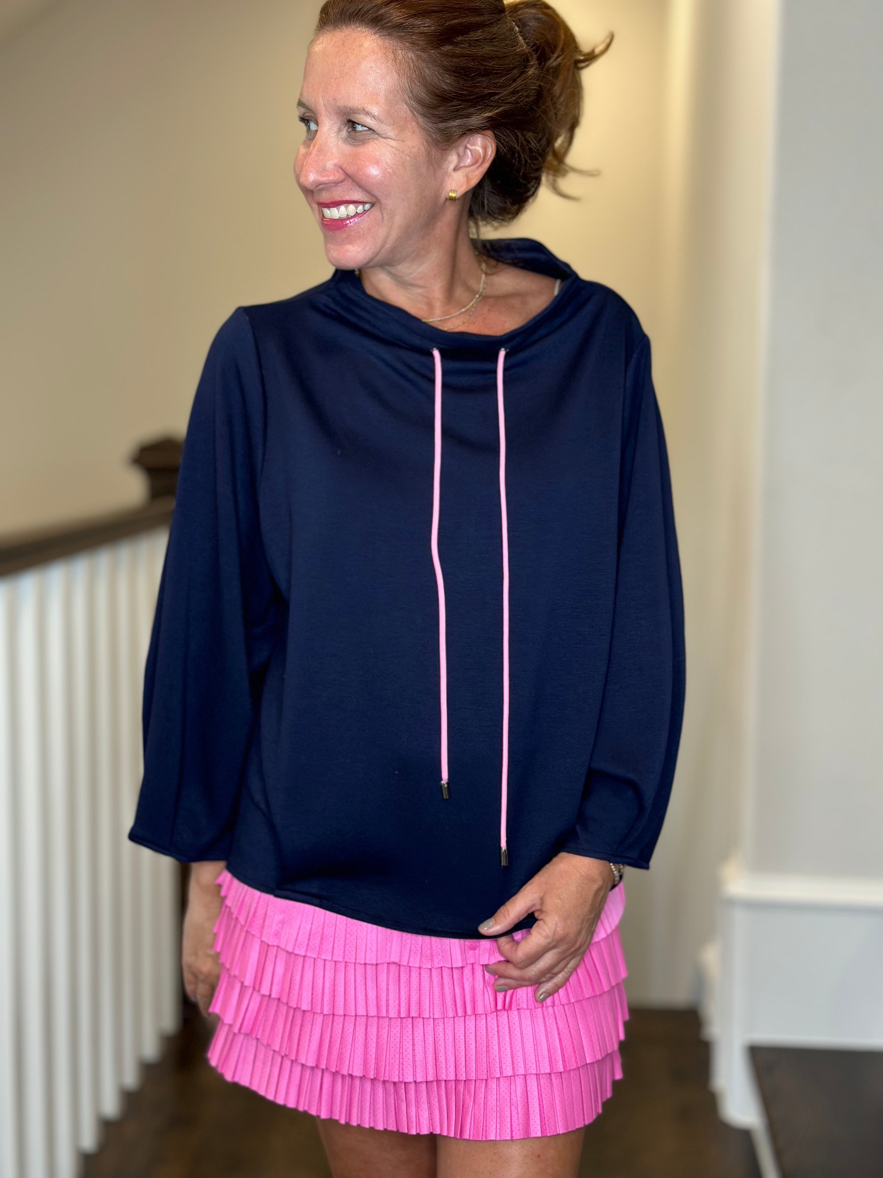 Caryn Lawn Avery Mockneck in Navy w/Pink Detail