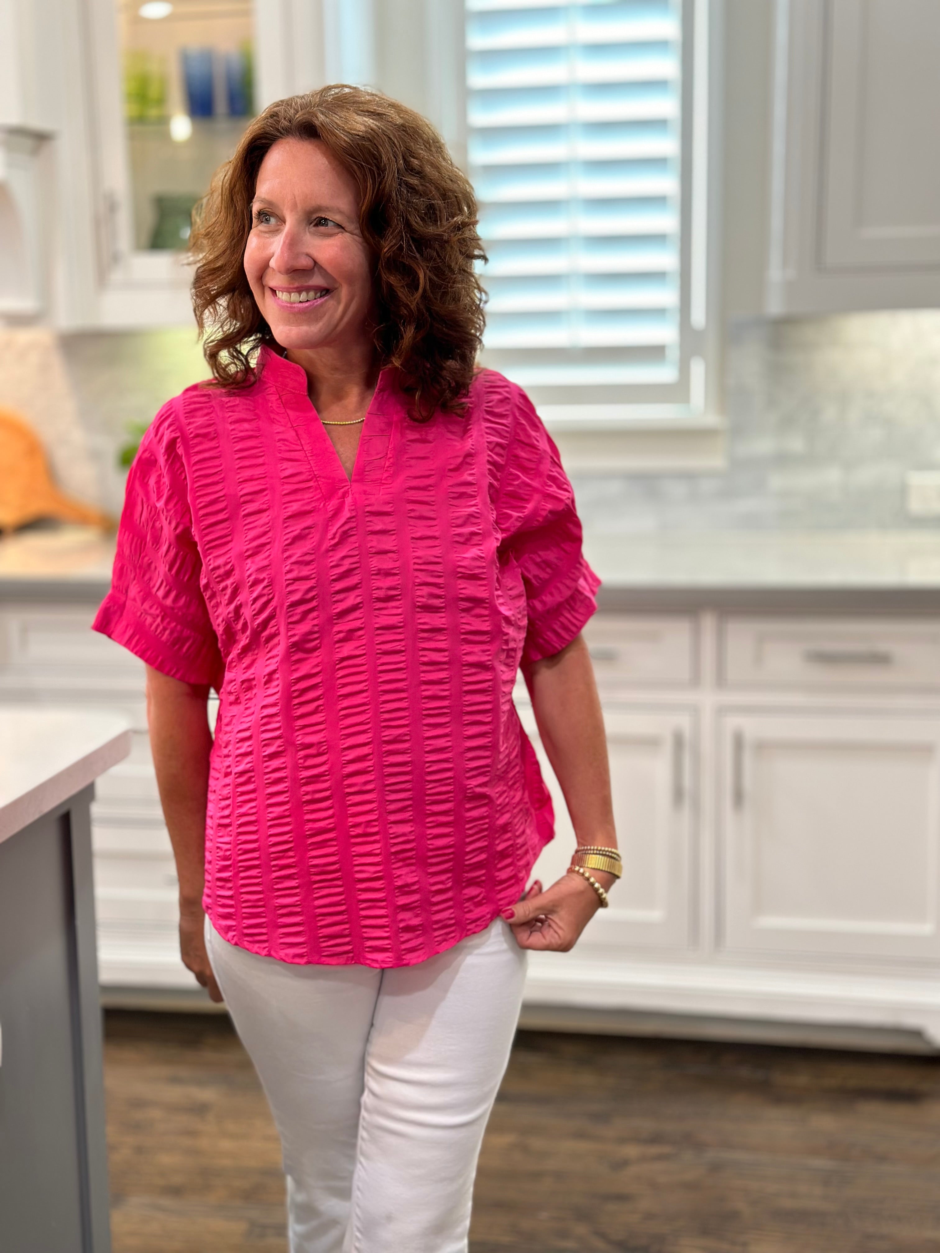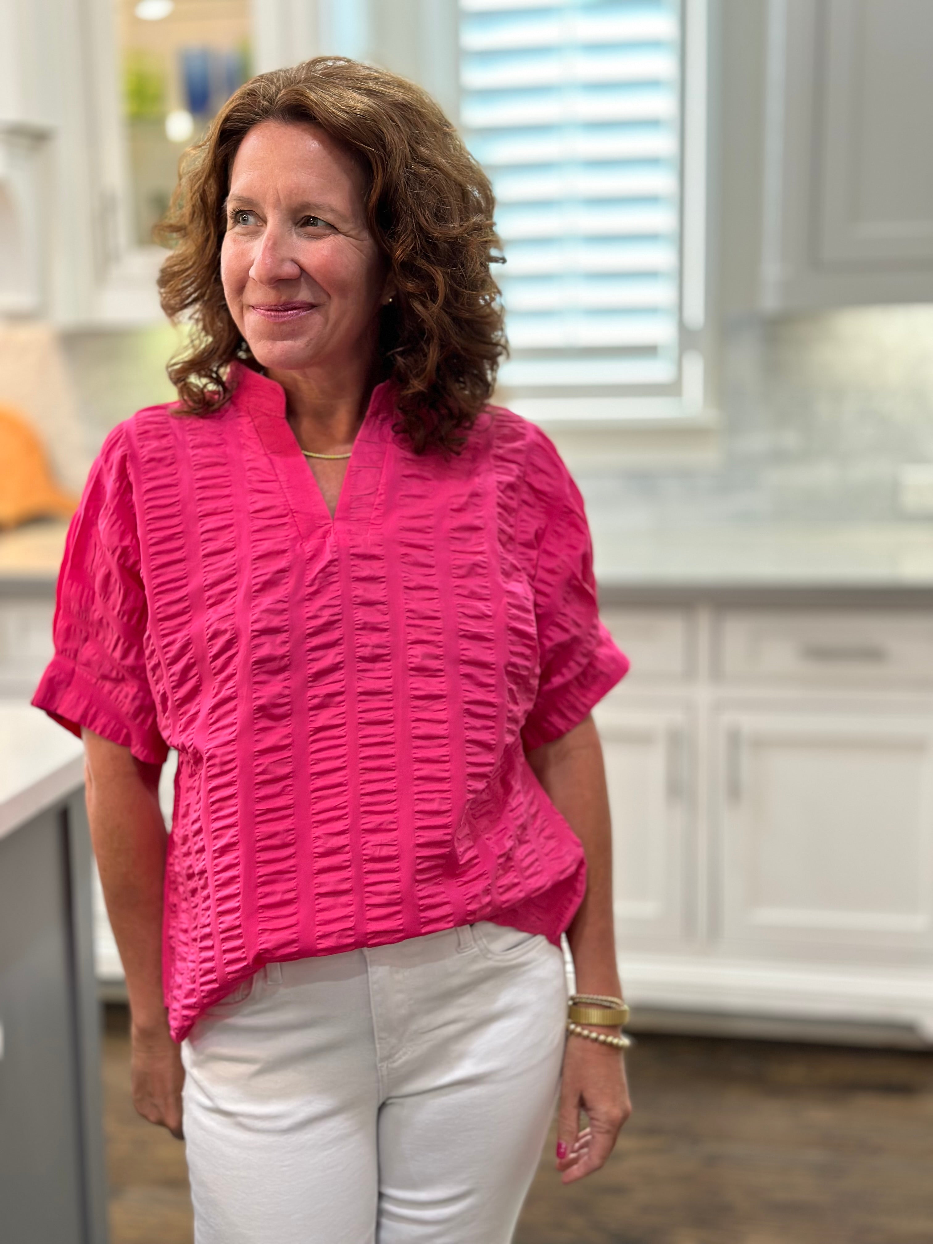 It's the perfect "front tuck" top to pair with jeans!