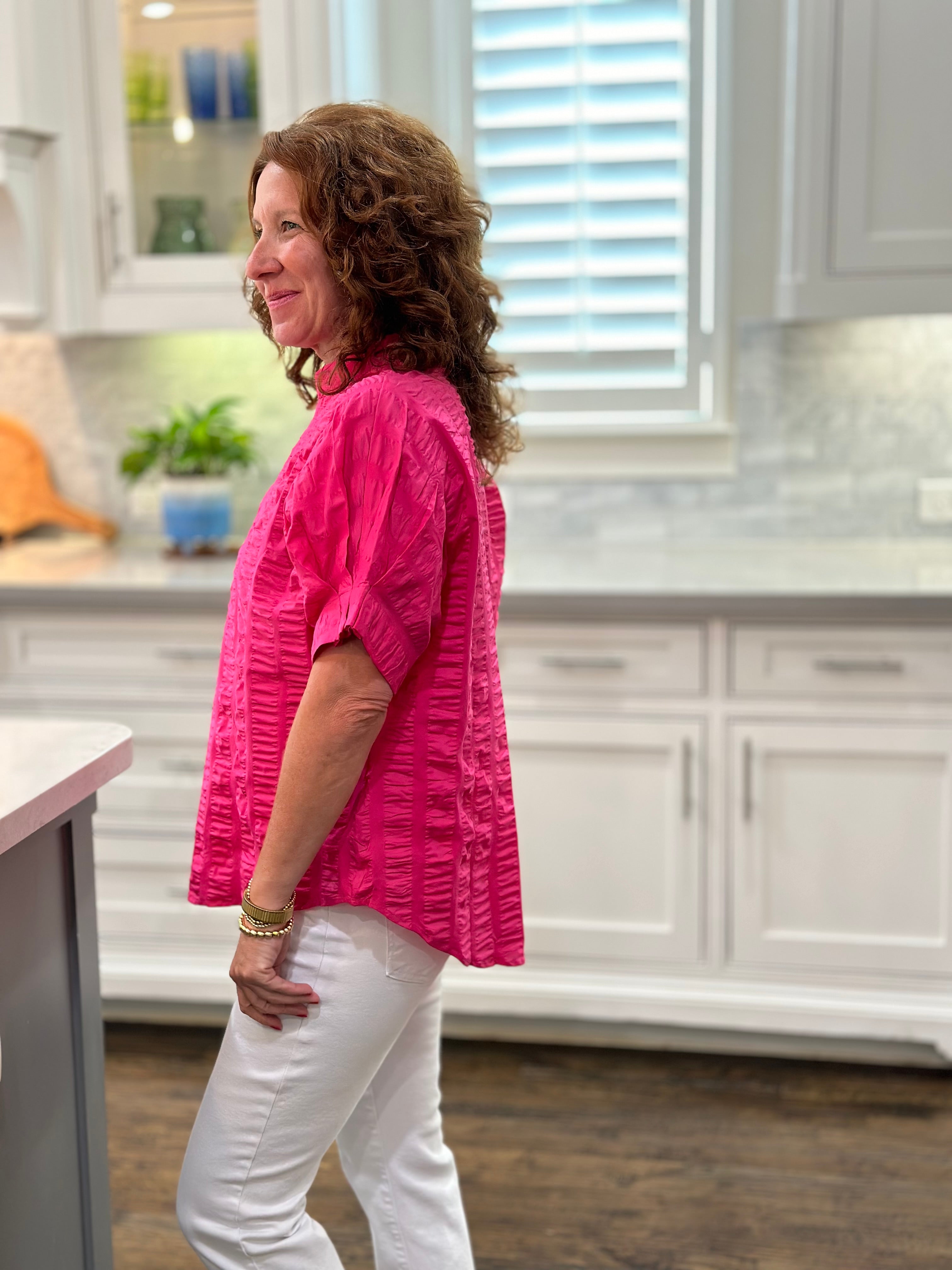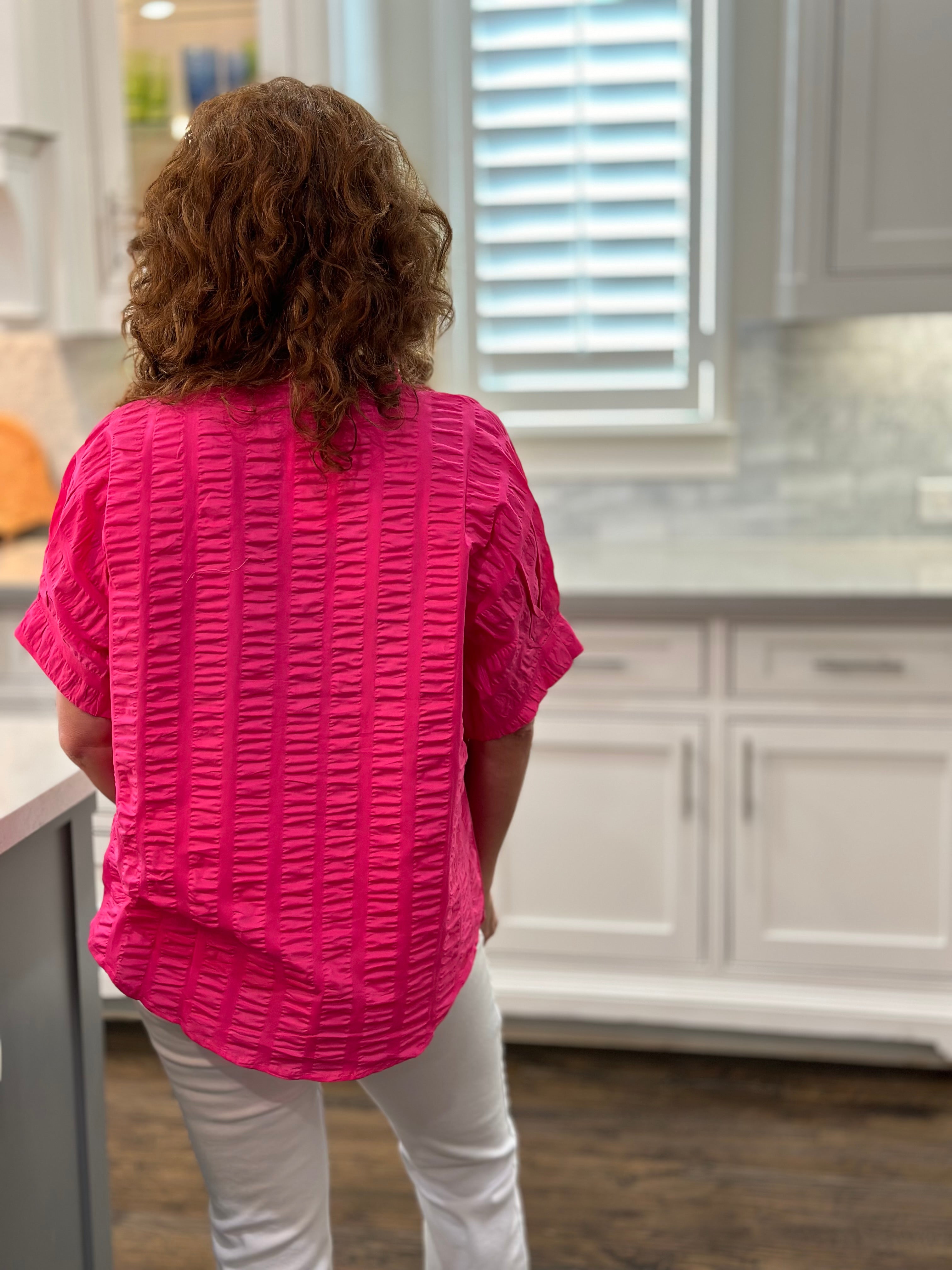 Go from the office to errands to date night in this fun casual chic top. One size fits most. Fits sizes 4 to 12.
