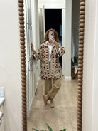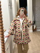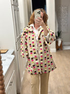 Throw on the Ivy Jane Domino Pop Jacket and instantly elevate your cool-weather wardrobe. This versatile layer has a relaxed open front, military collar, and easy 3/4 sleeves that work with everything. Slip your hands into the side pockets, and you're ready to go. The straight hemline keeps things polished whether you're styling it as a blazer or a cozy coat. Soft, lightweight, and unlined for effortless layering.