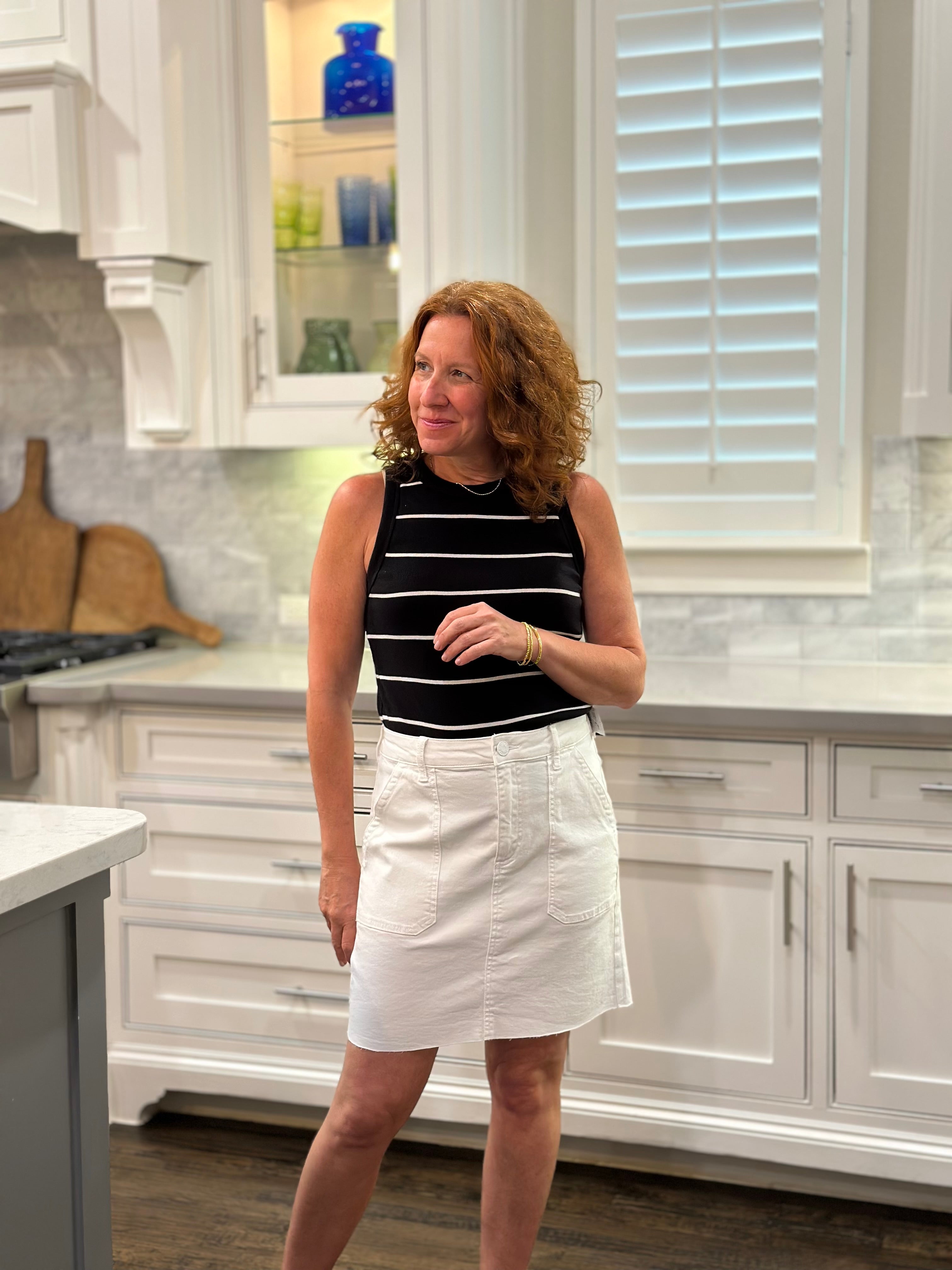 - This skirt features a stylish raw hem and a unique porkchop pocket for a touch of functional flair. Its timeless design makes it the perfect addition to any casual wardrobe.