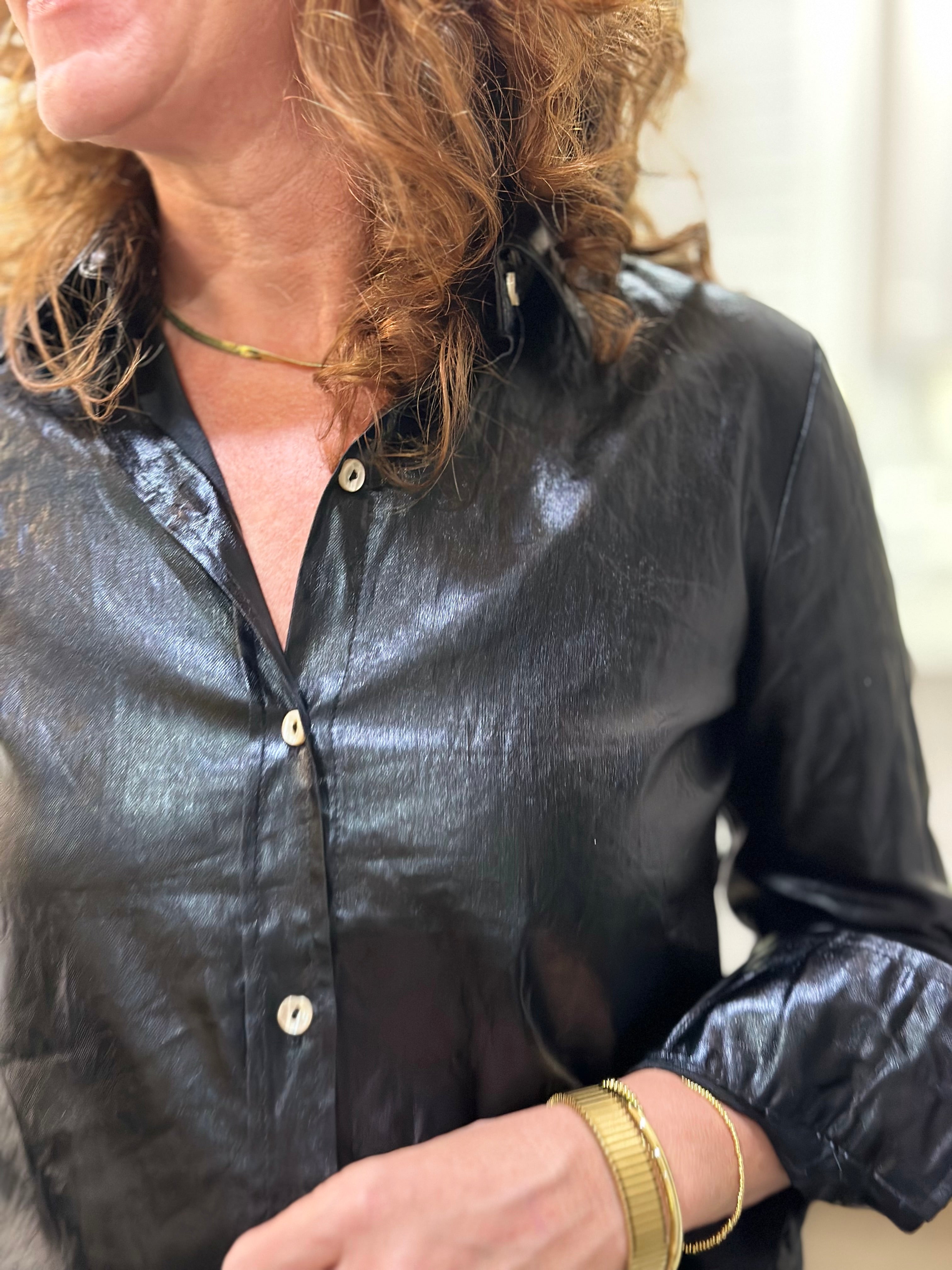Lanhtropy San Marino Metallic Black Linen Shirt