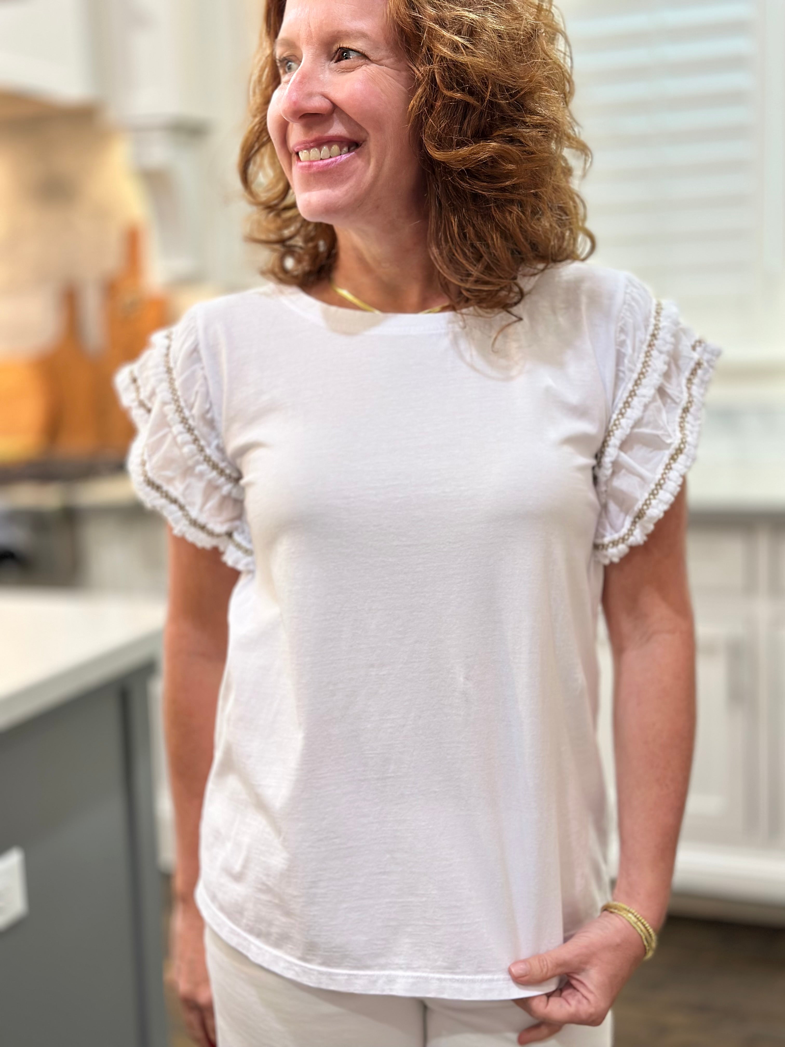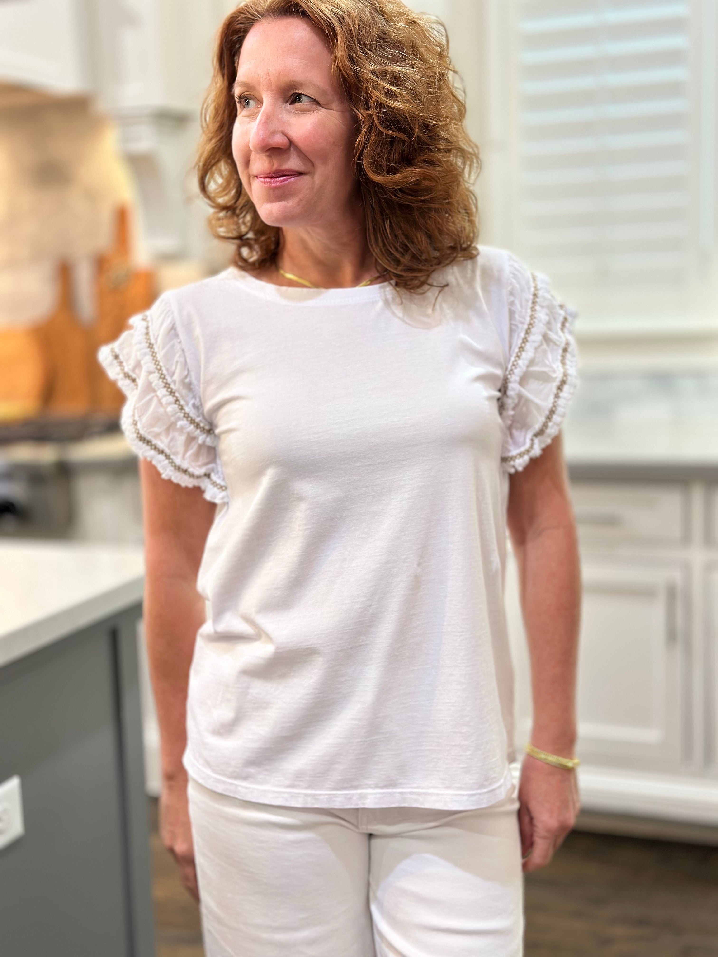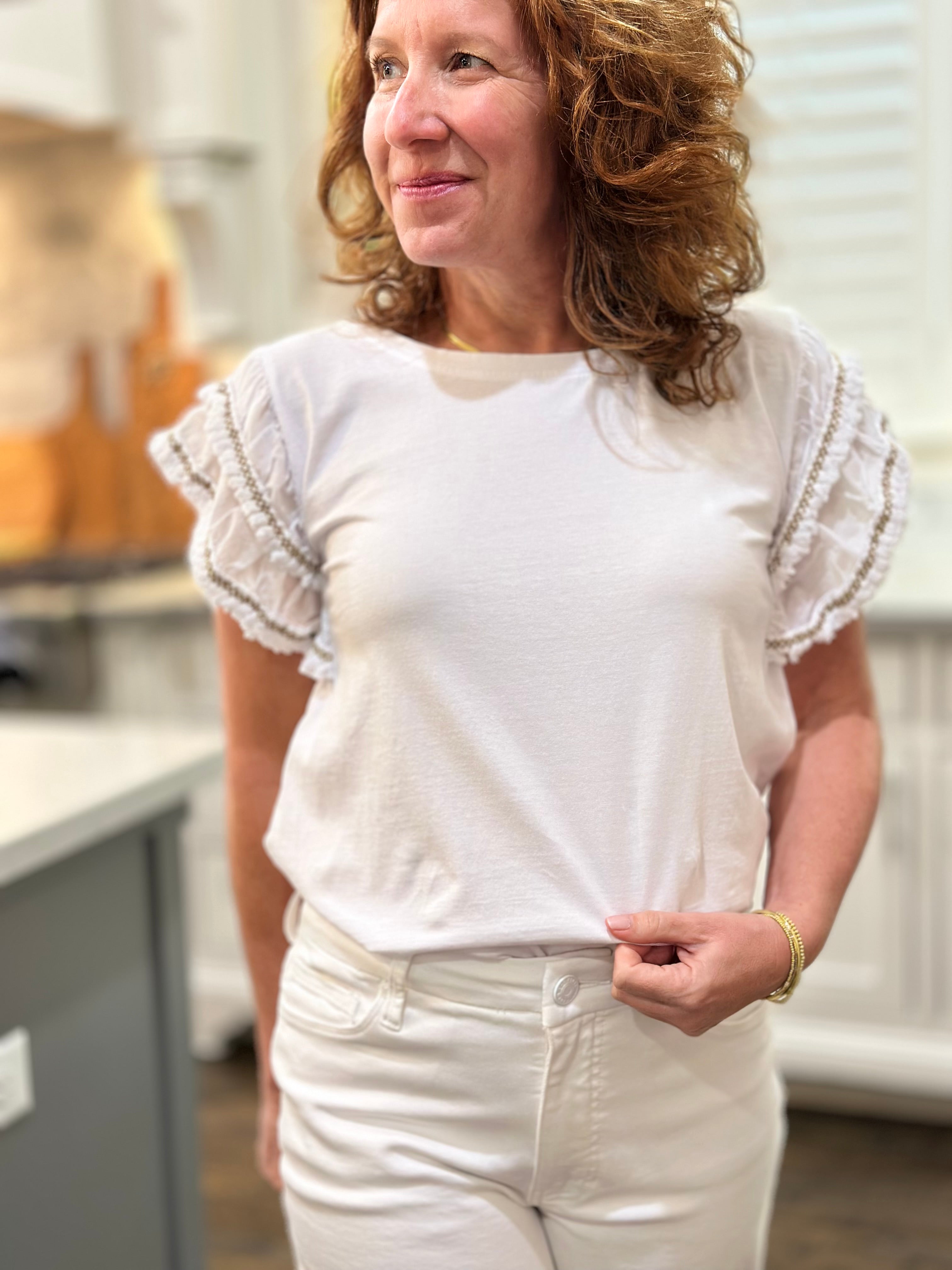 Ruffle Sleeve Top in White