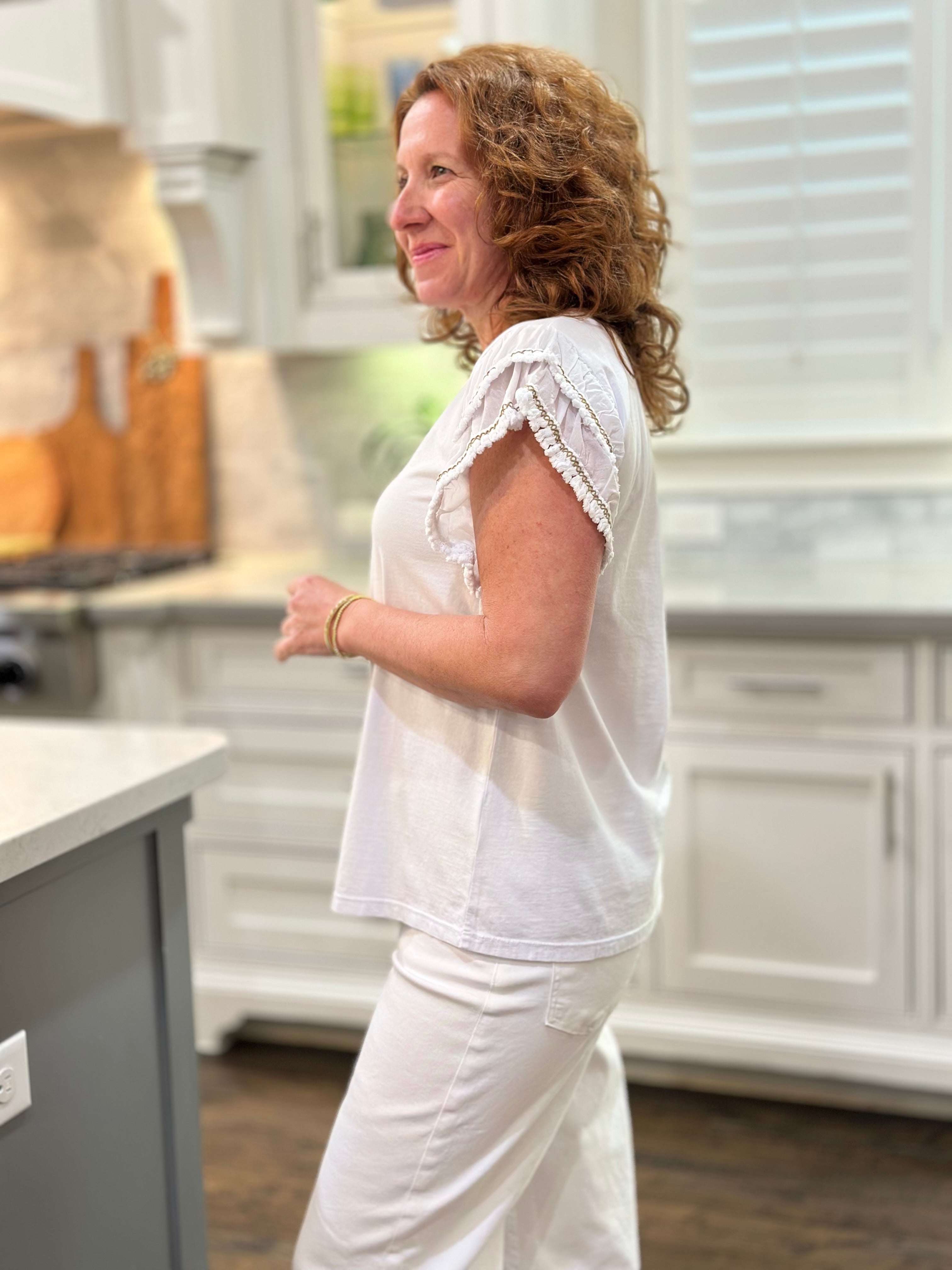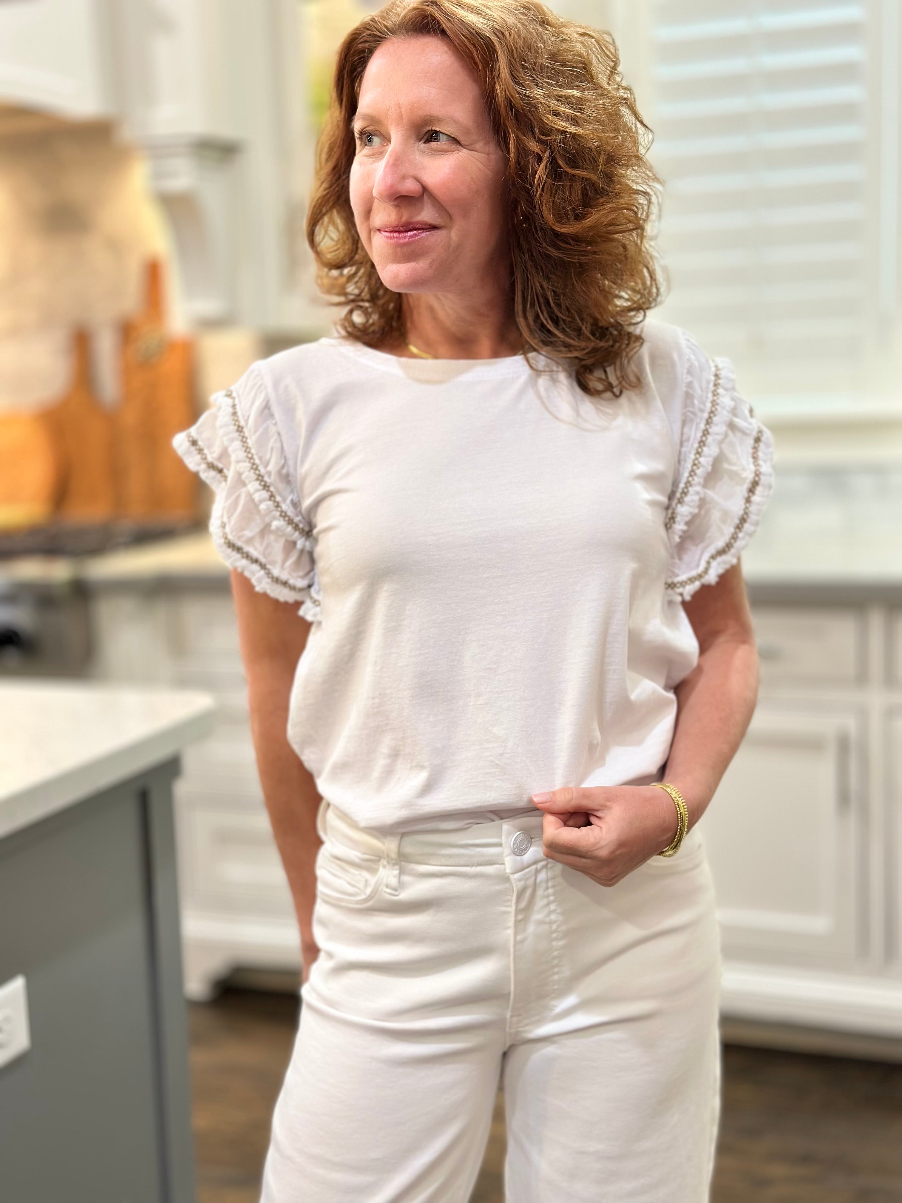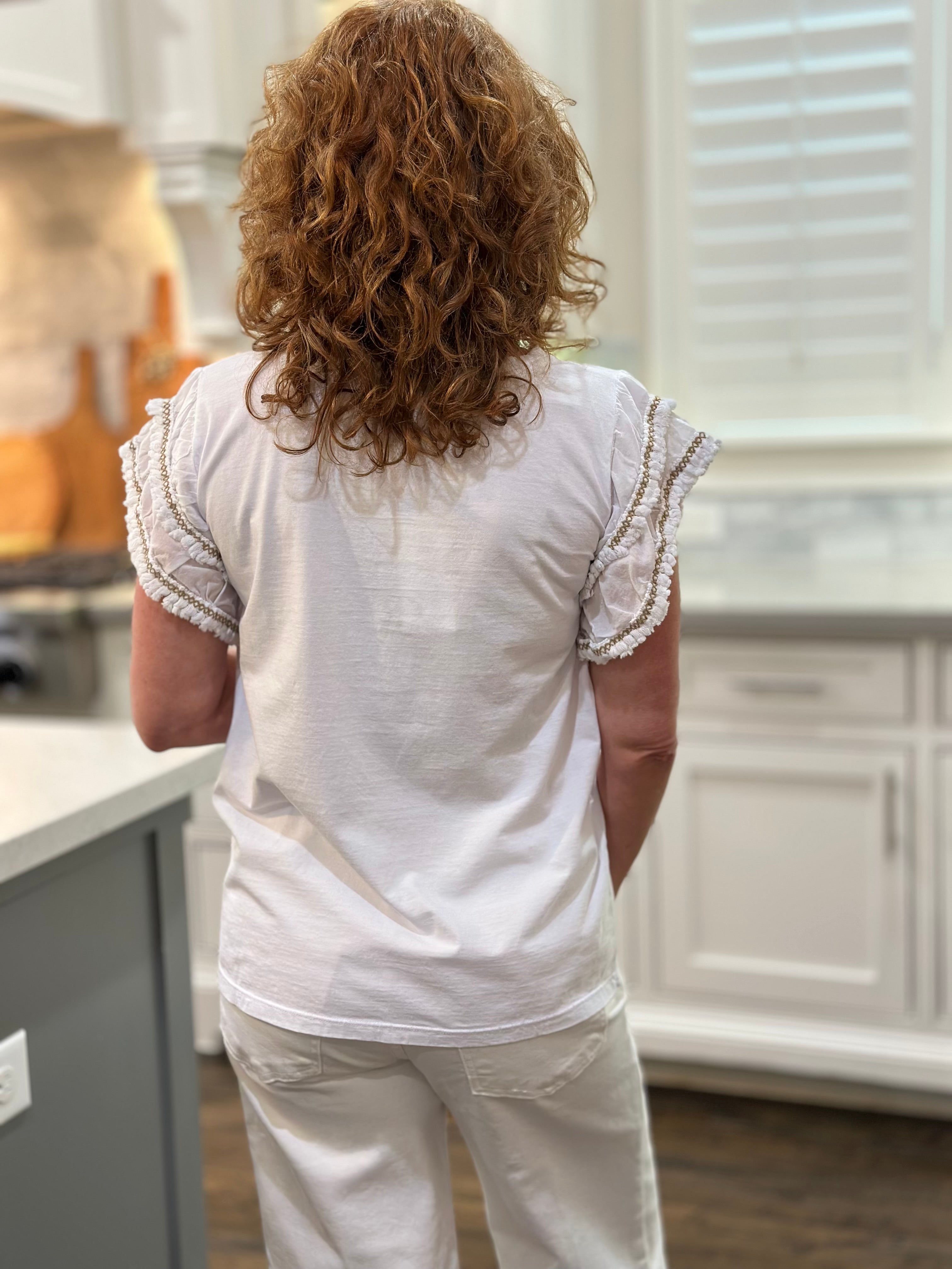 Ruffle Sleeve Top in White