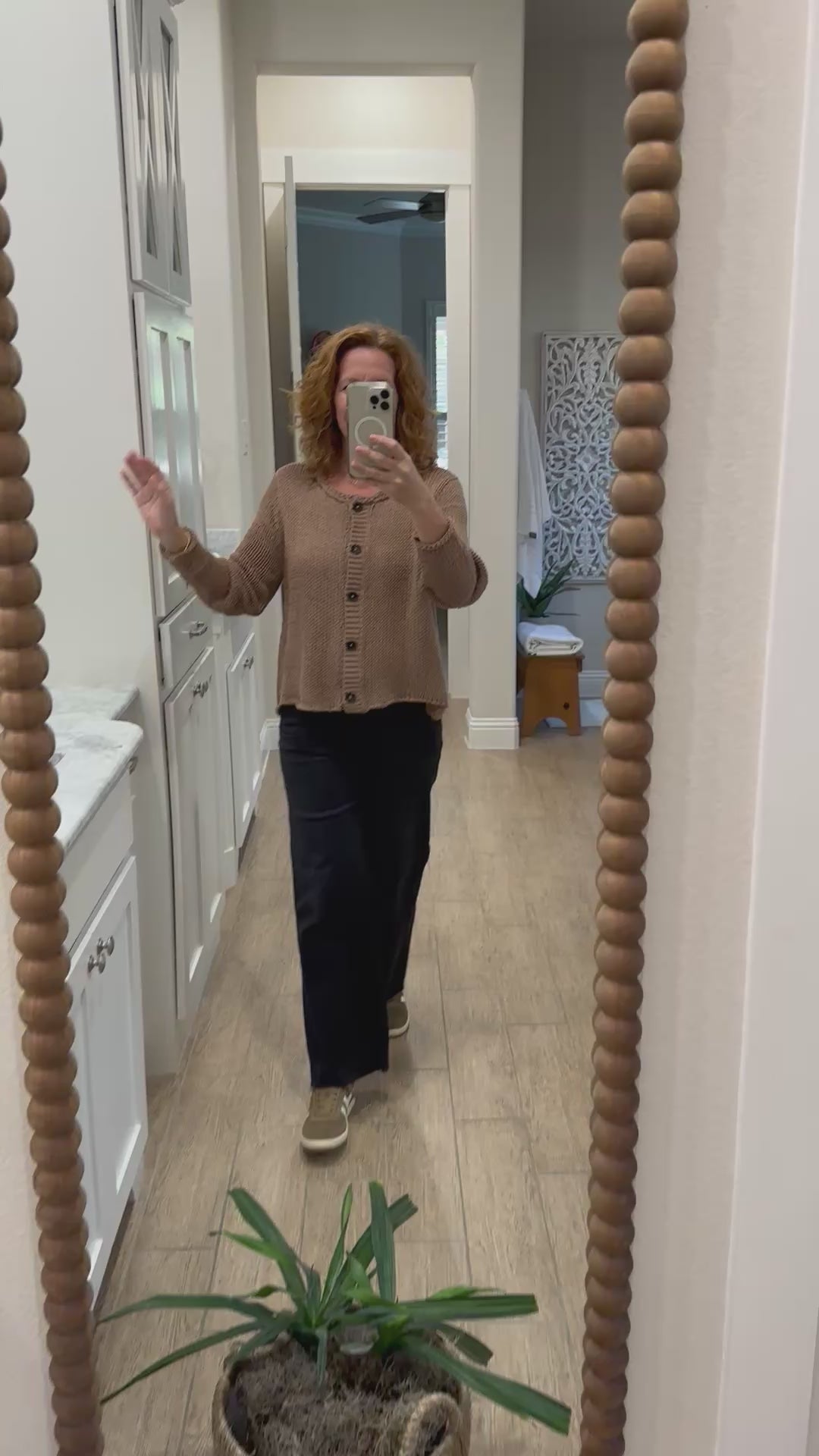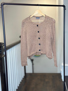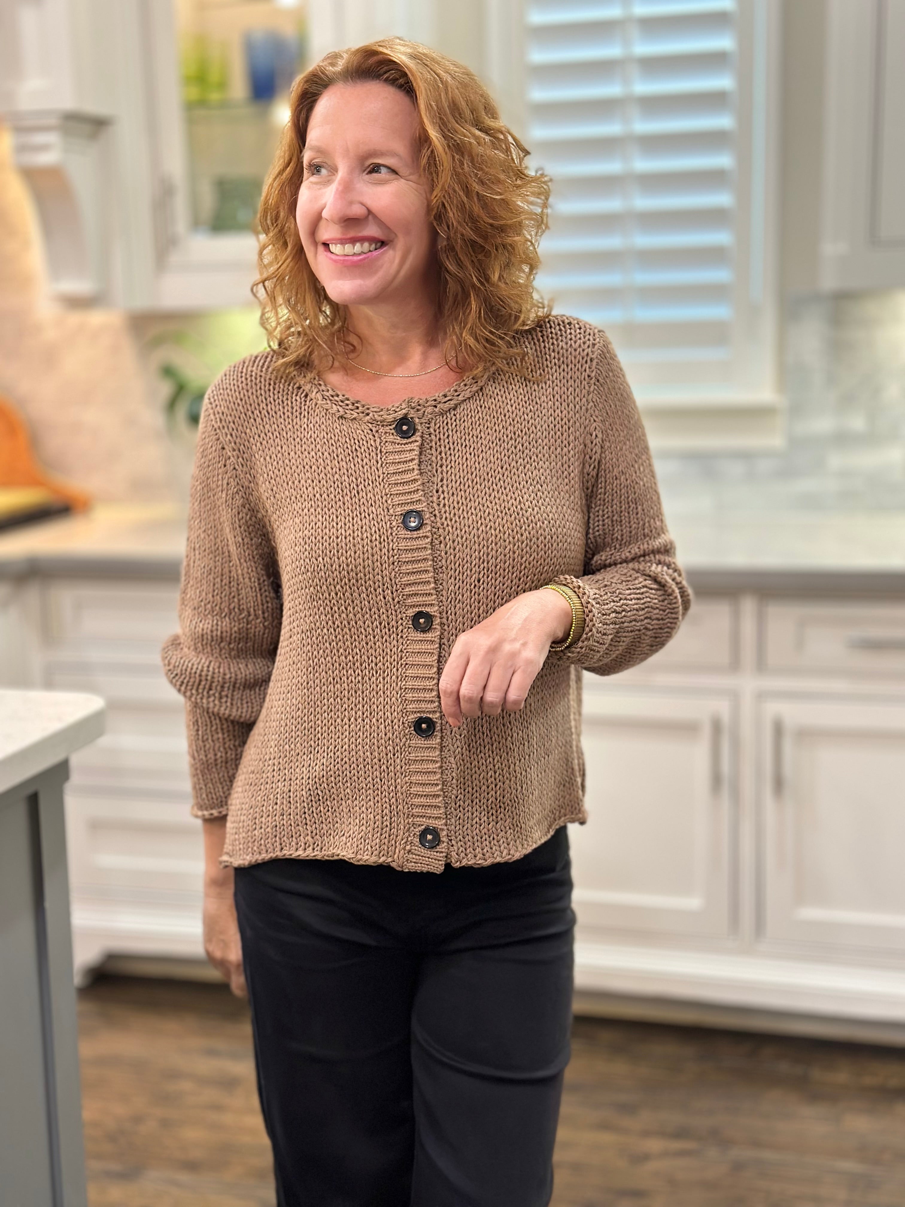 Knit from a luxuriously soft cotton blend yard, this versatile cardigan is a wardrobe staple. Its elegance is highlighted by delicate button details, while the dropped shoulders add a laid back yet chic touch, making it perfect for casual outings. Super versatile, this sweater pairs beautifully over all bottoms.